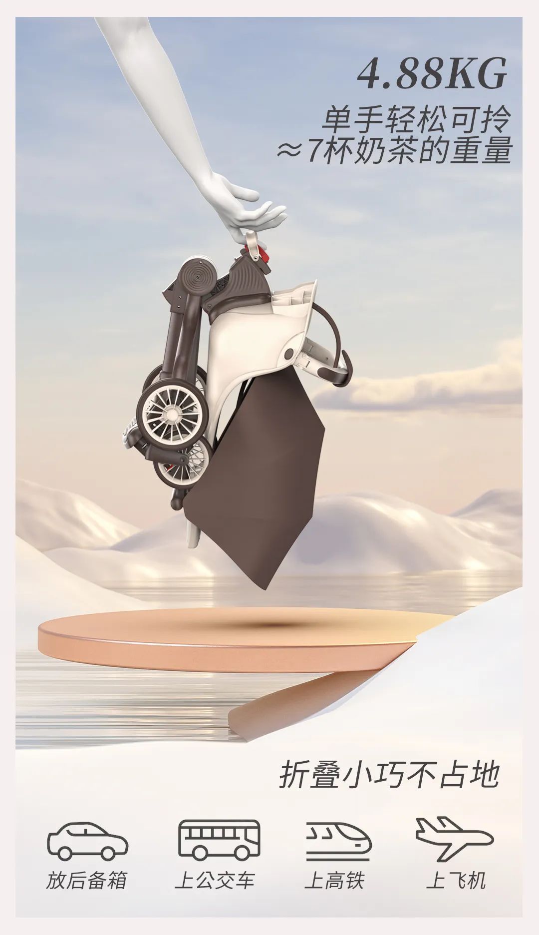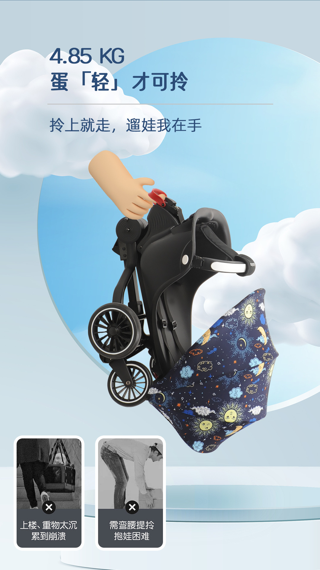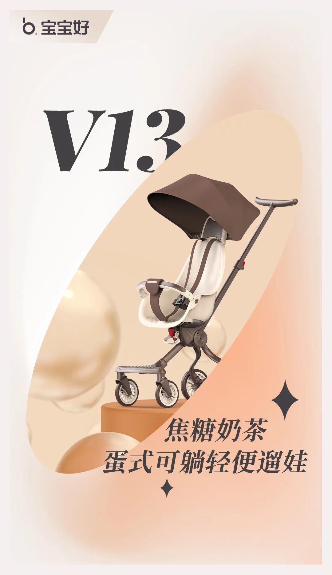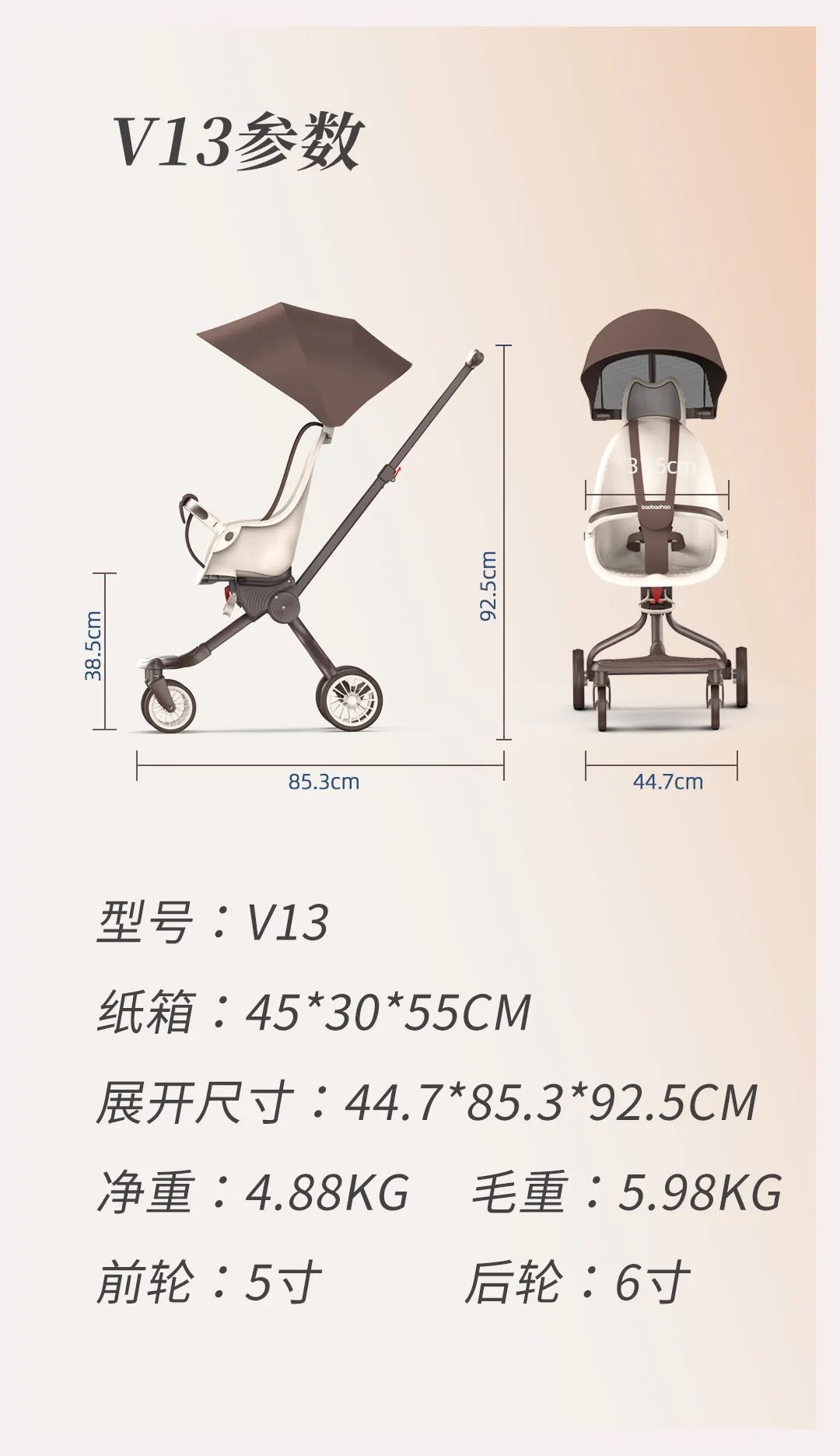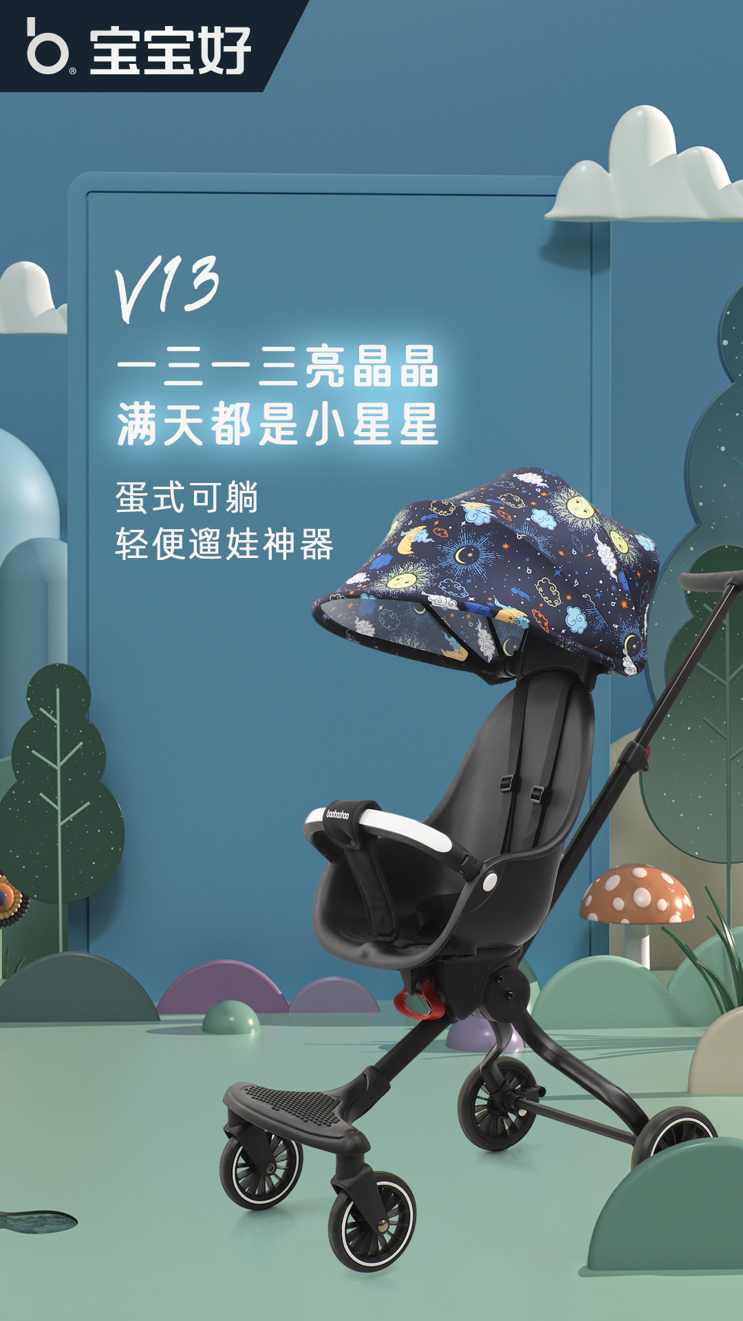 宝宝好V13坐躺溜娃神器一键收车轻便单手可拎可上机遛娃儿童推车