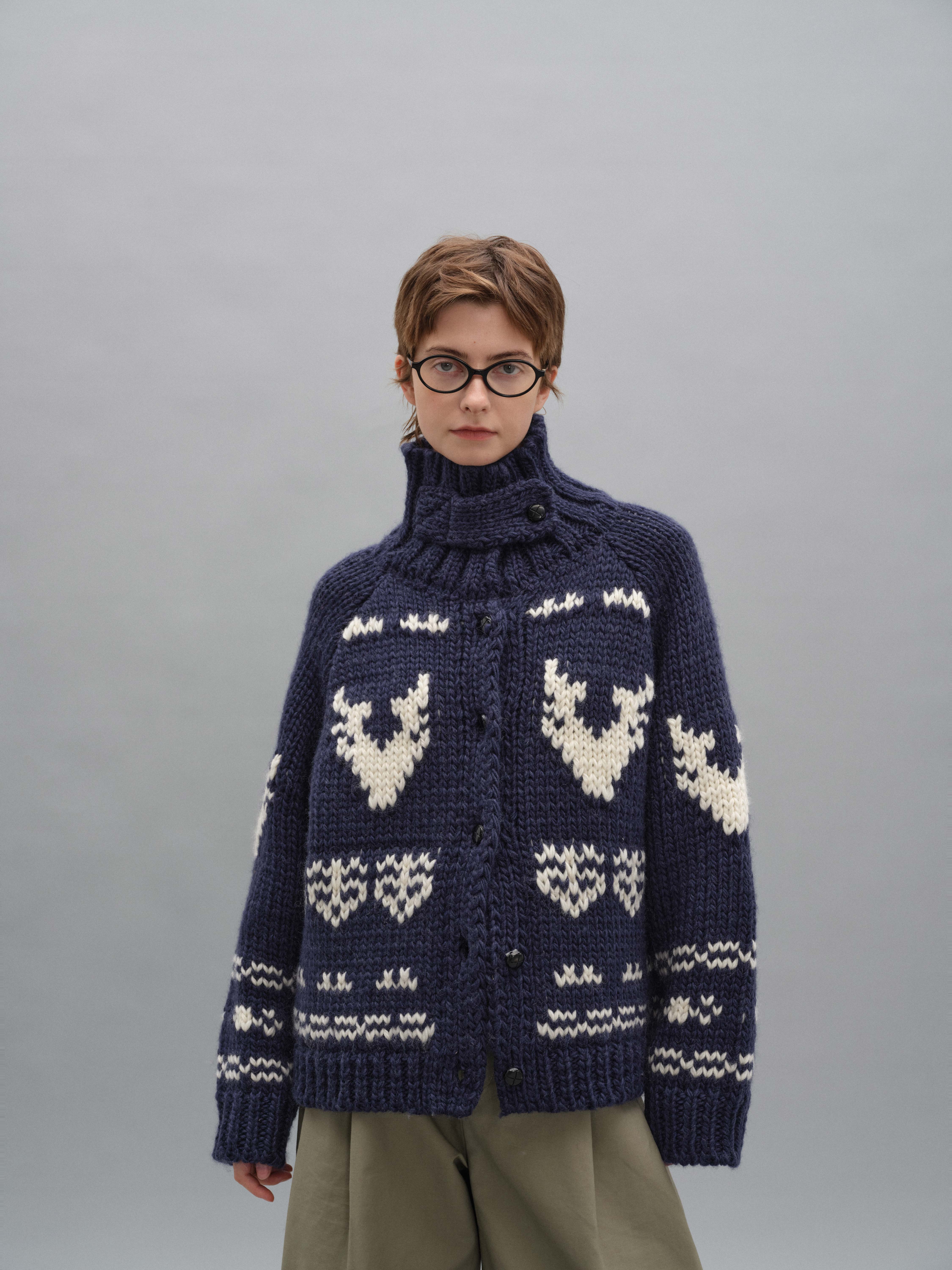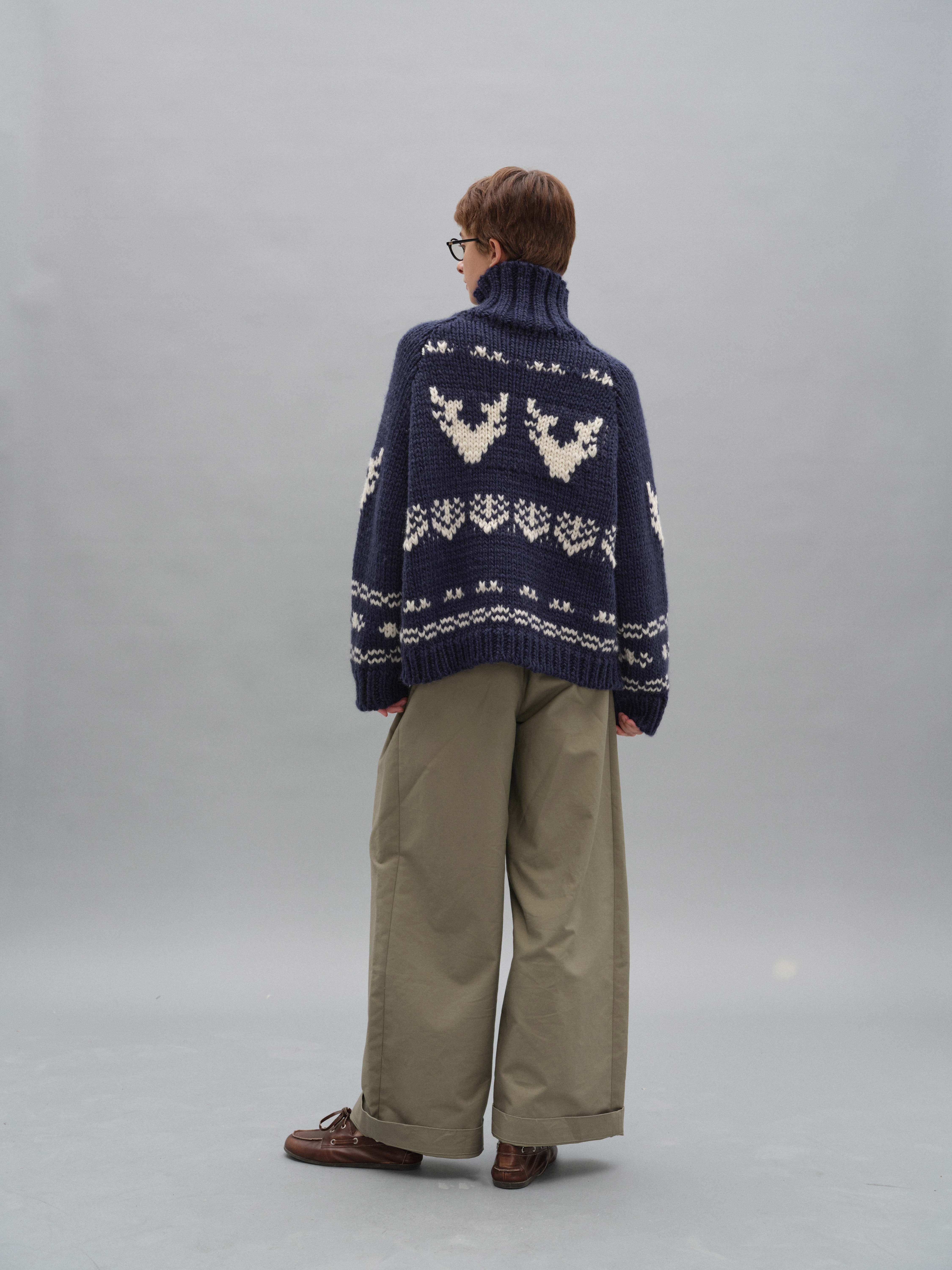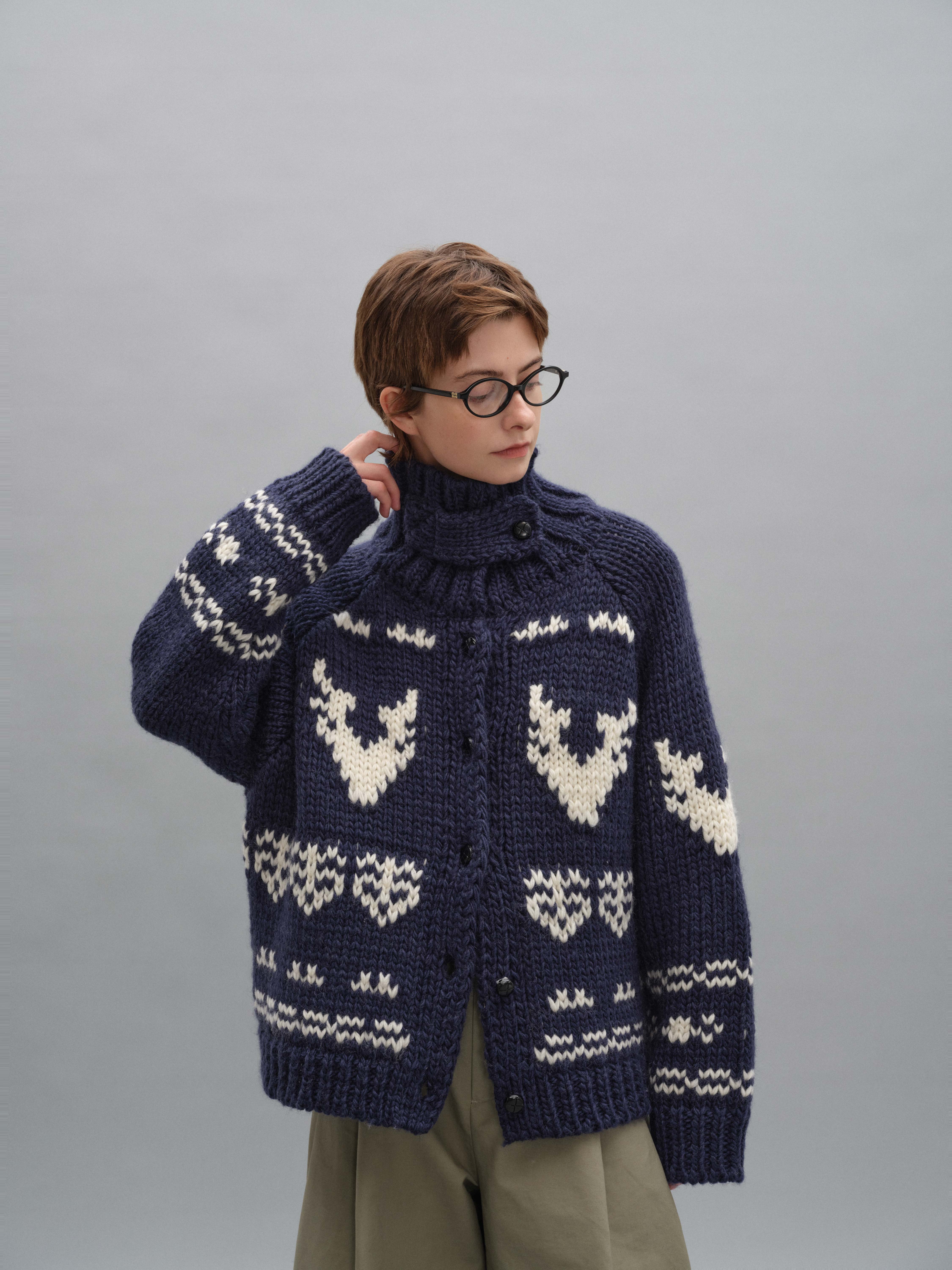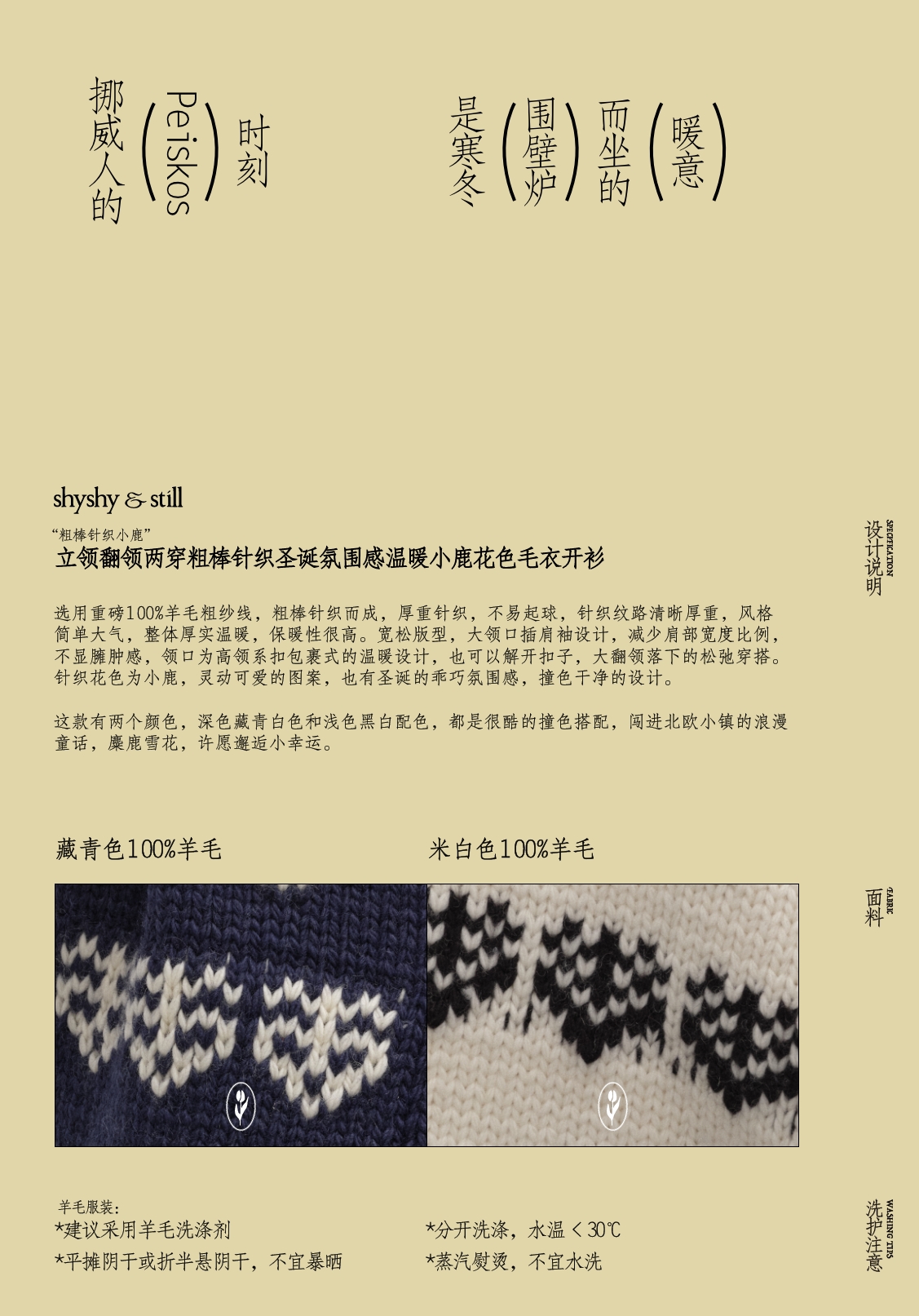 shyshystill/shy202408045/立领翻领两穿粗棒针织小鹿花色毛衣