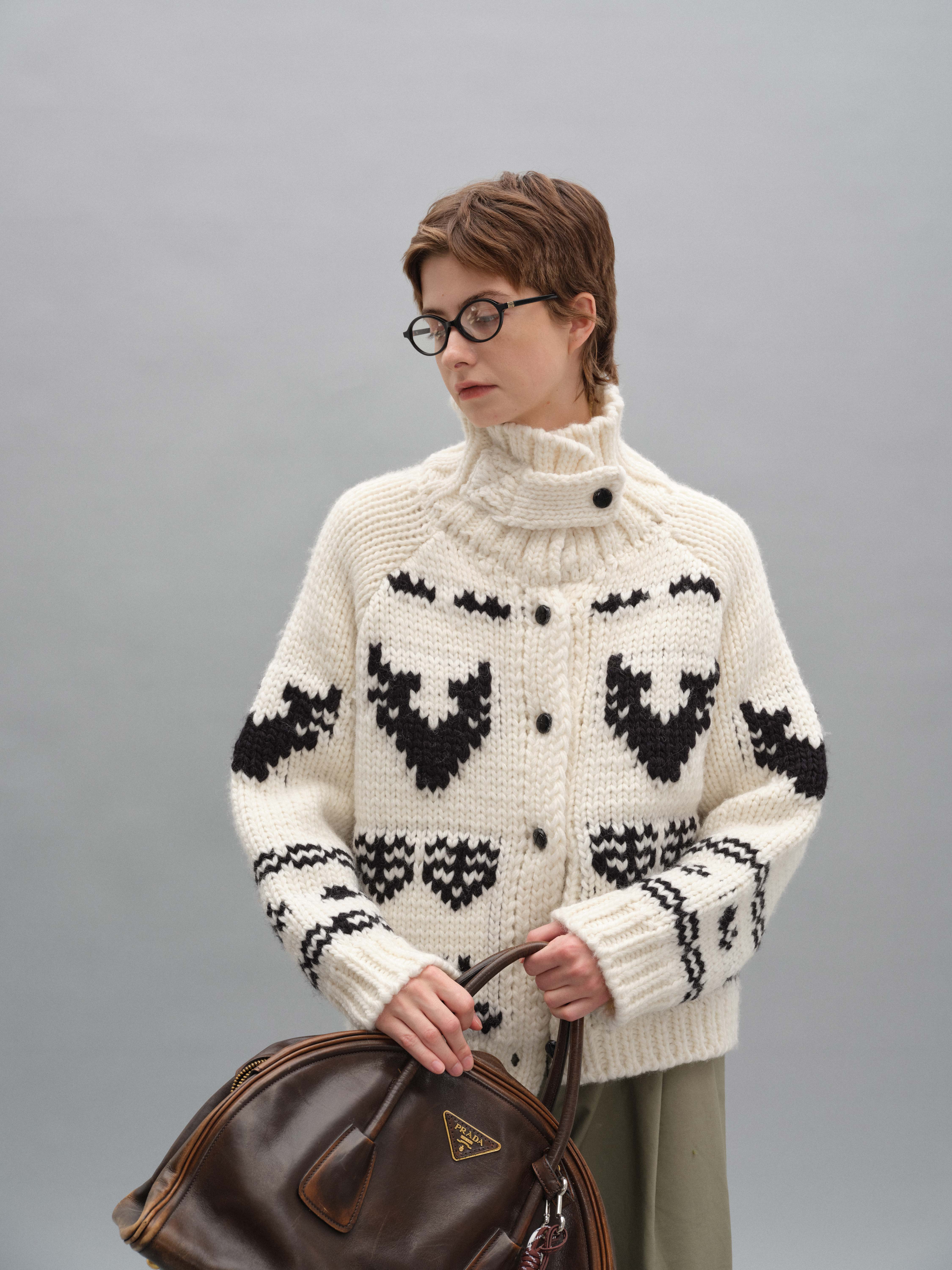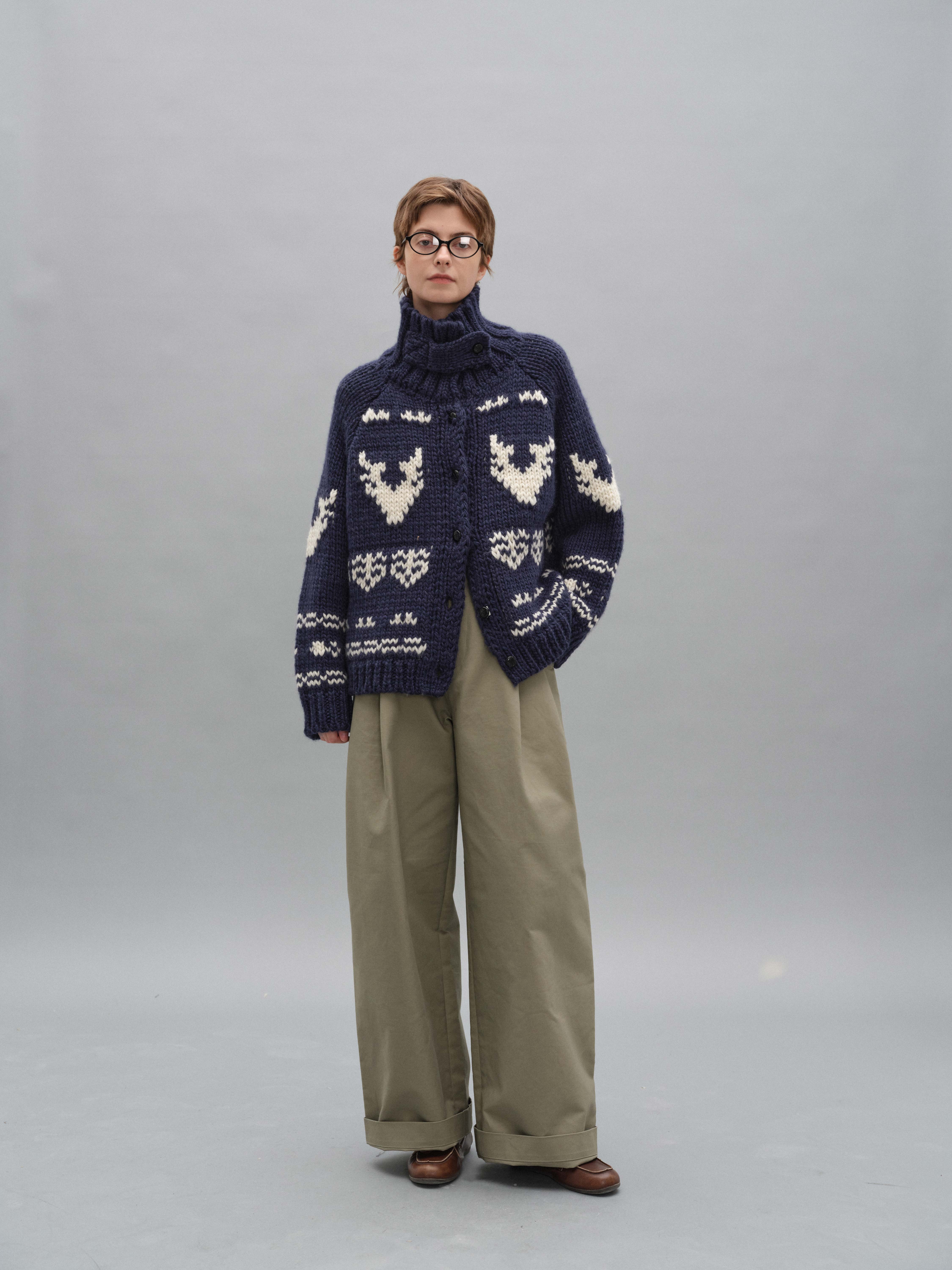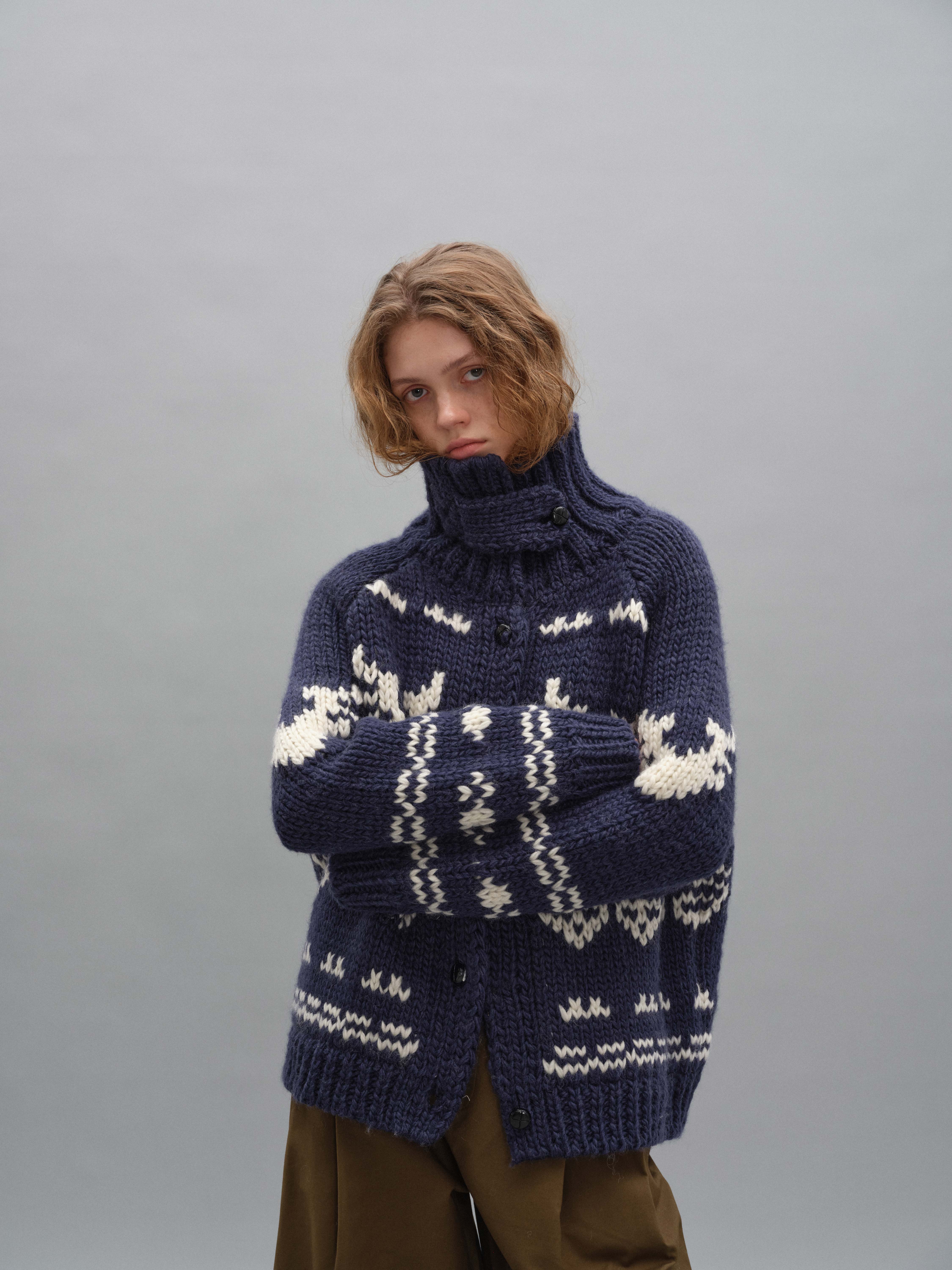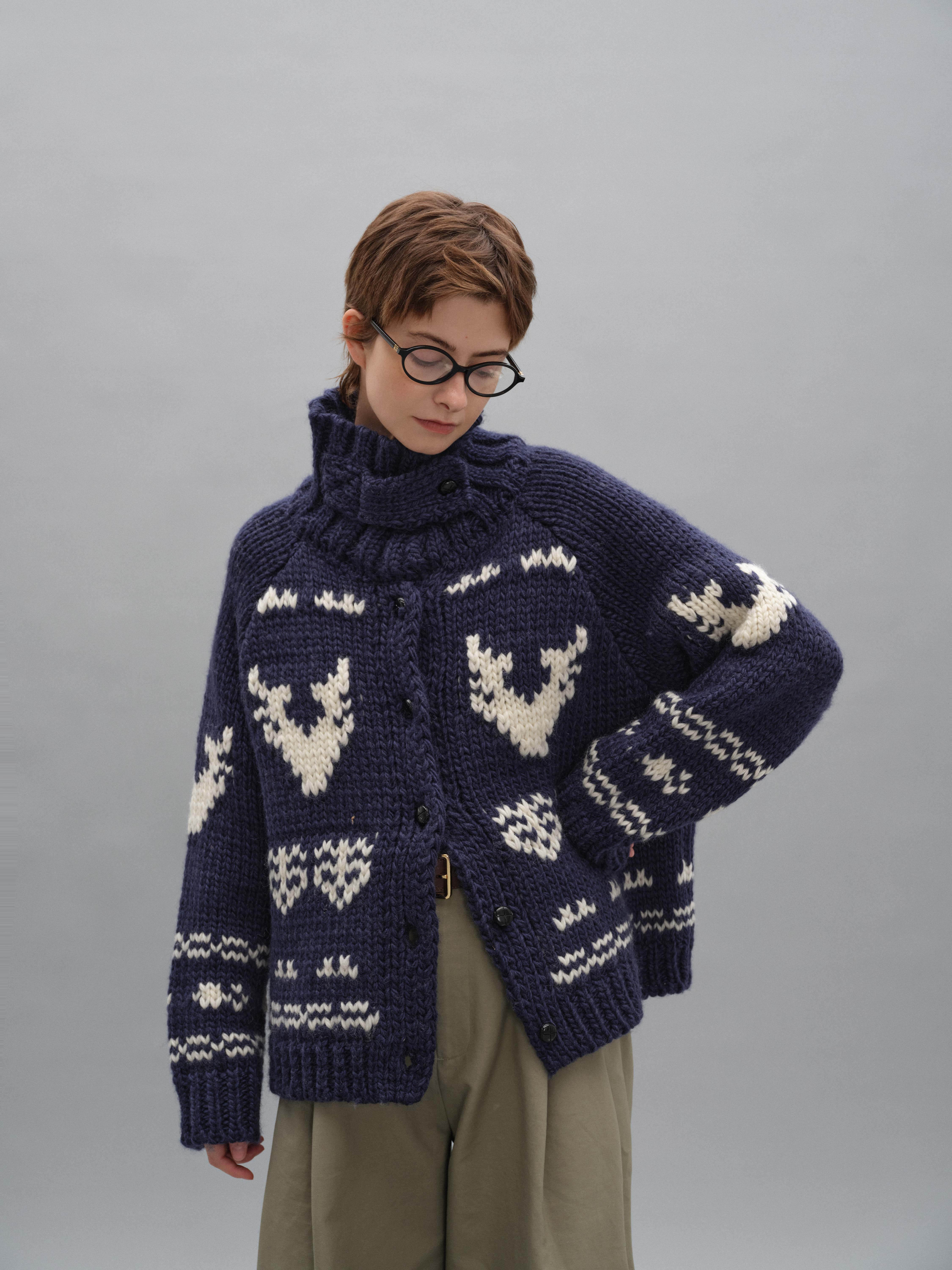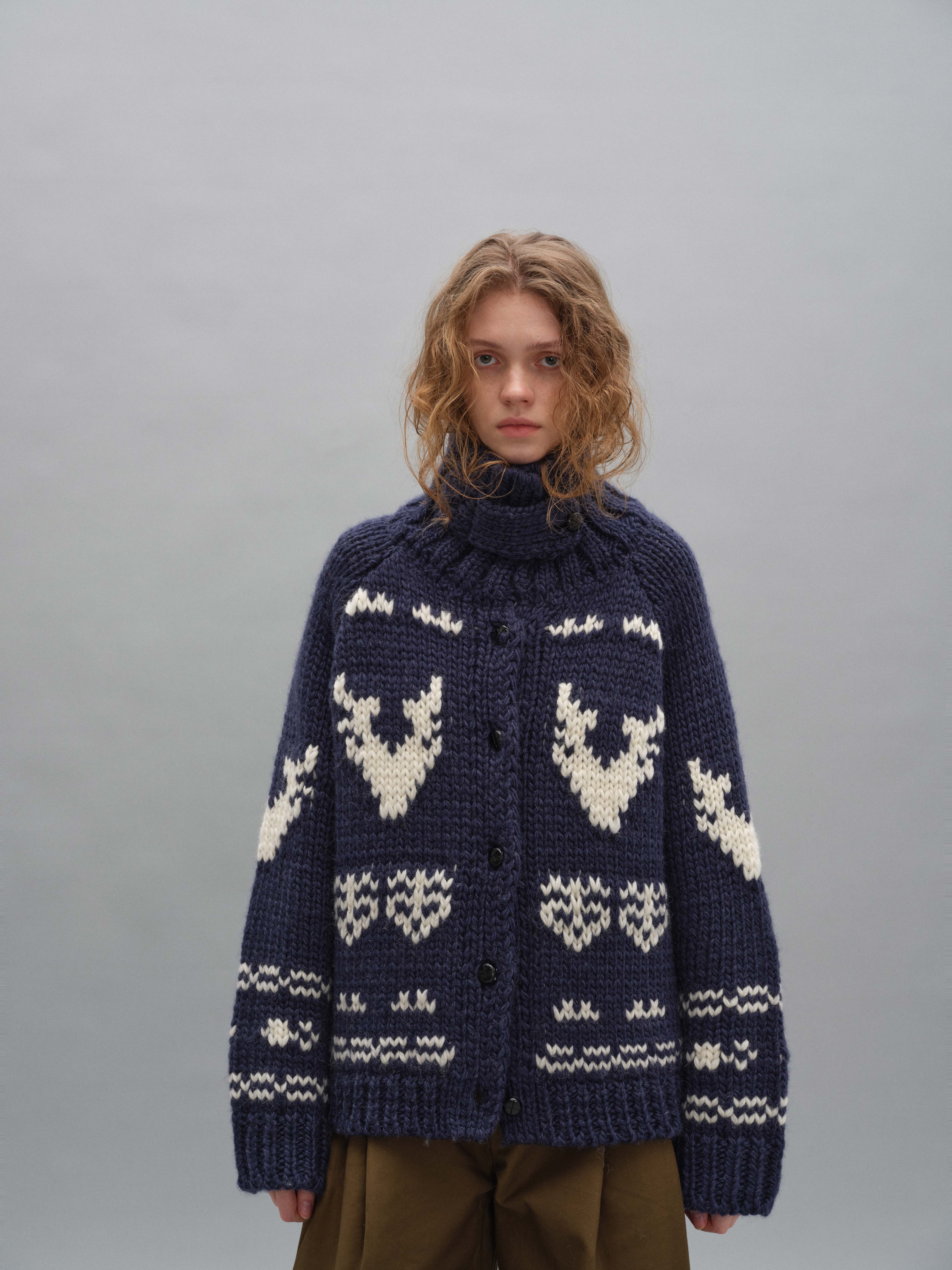 shyshystill/shy202408045/立领翻领两穿粗棒针织小鹿花色毛衣