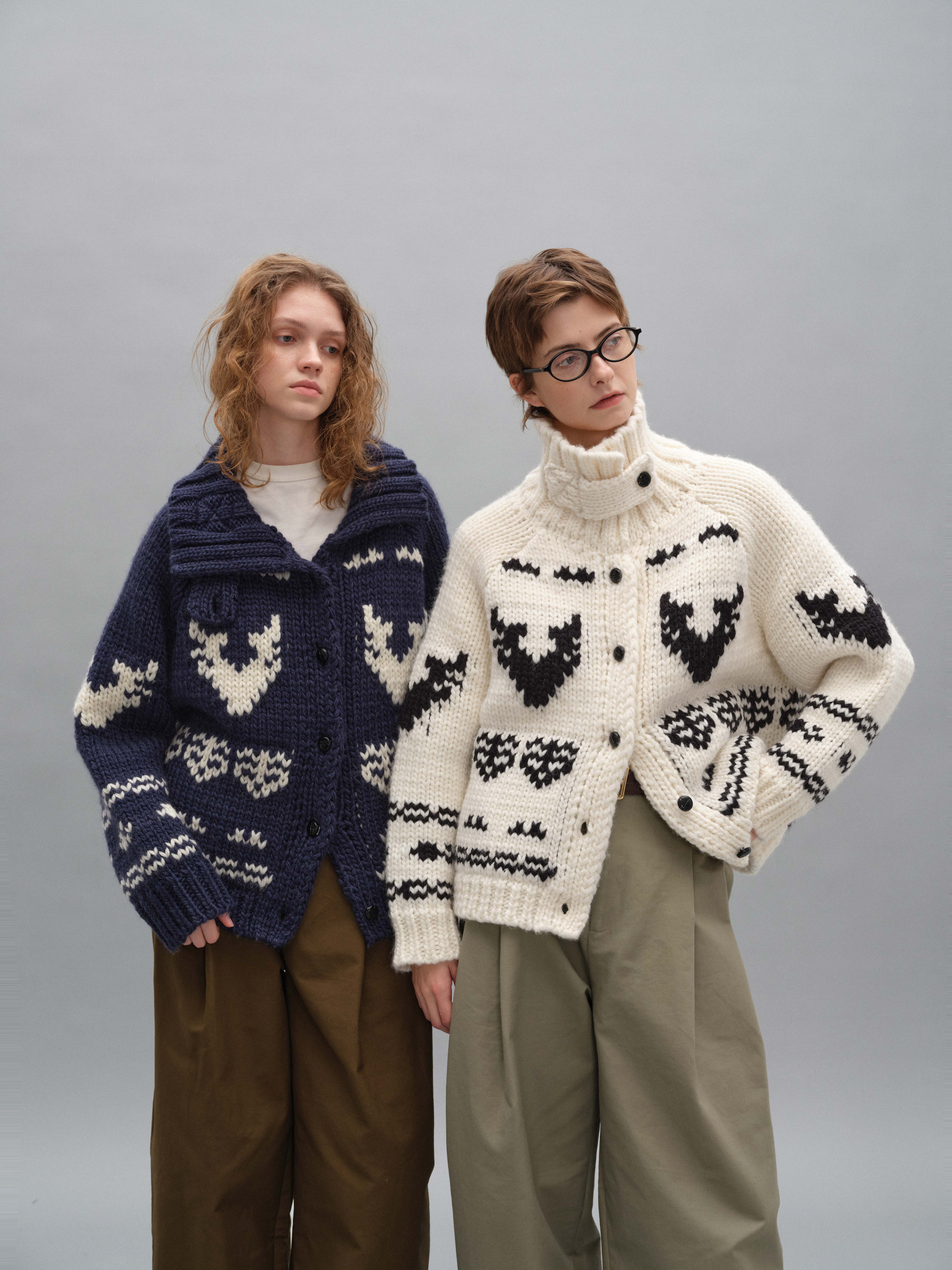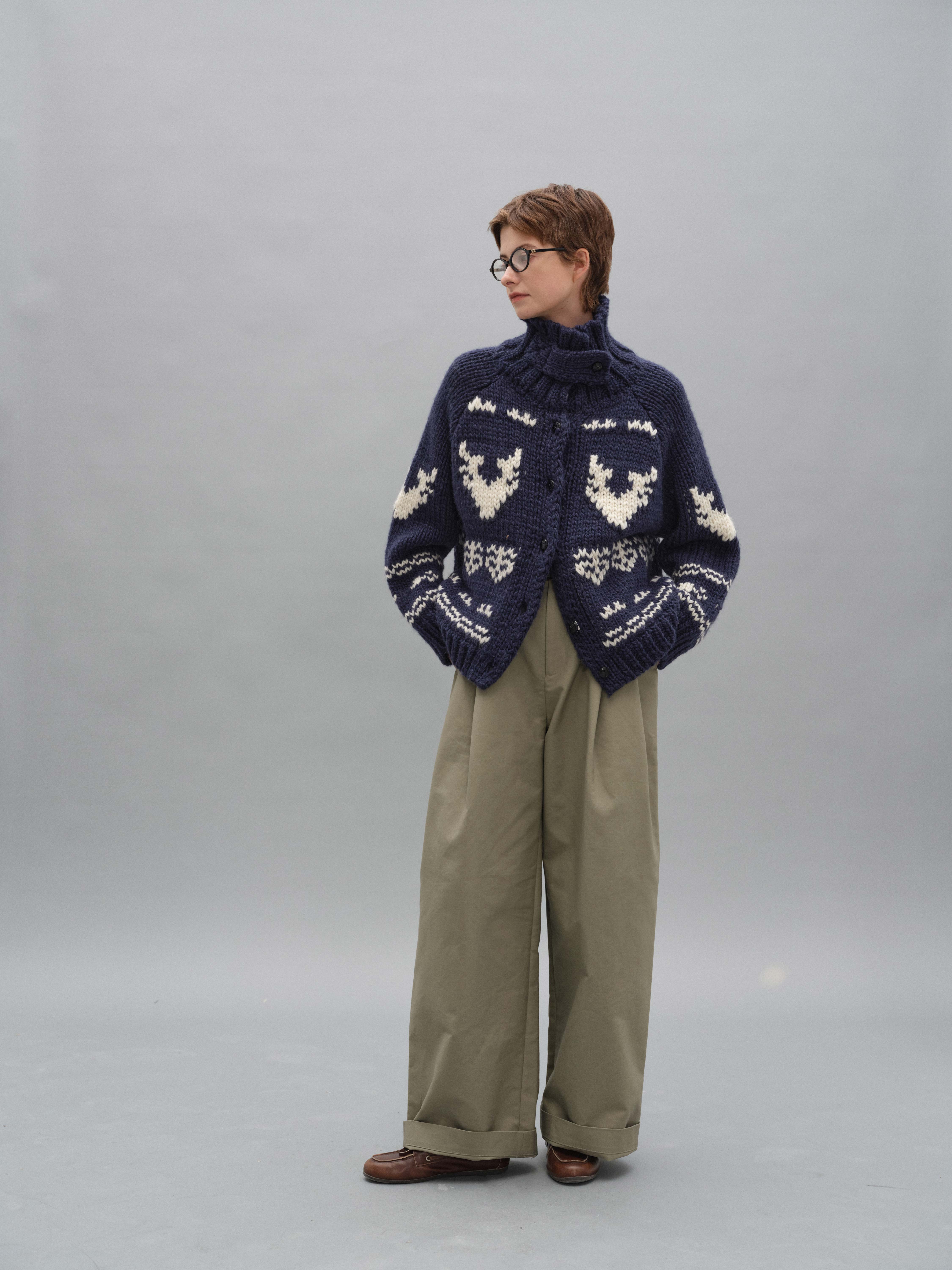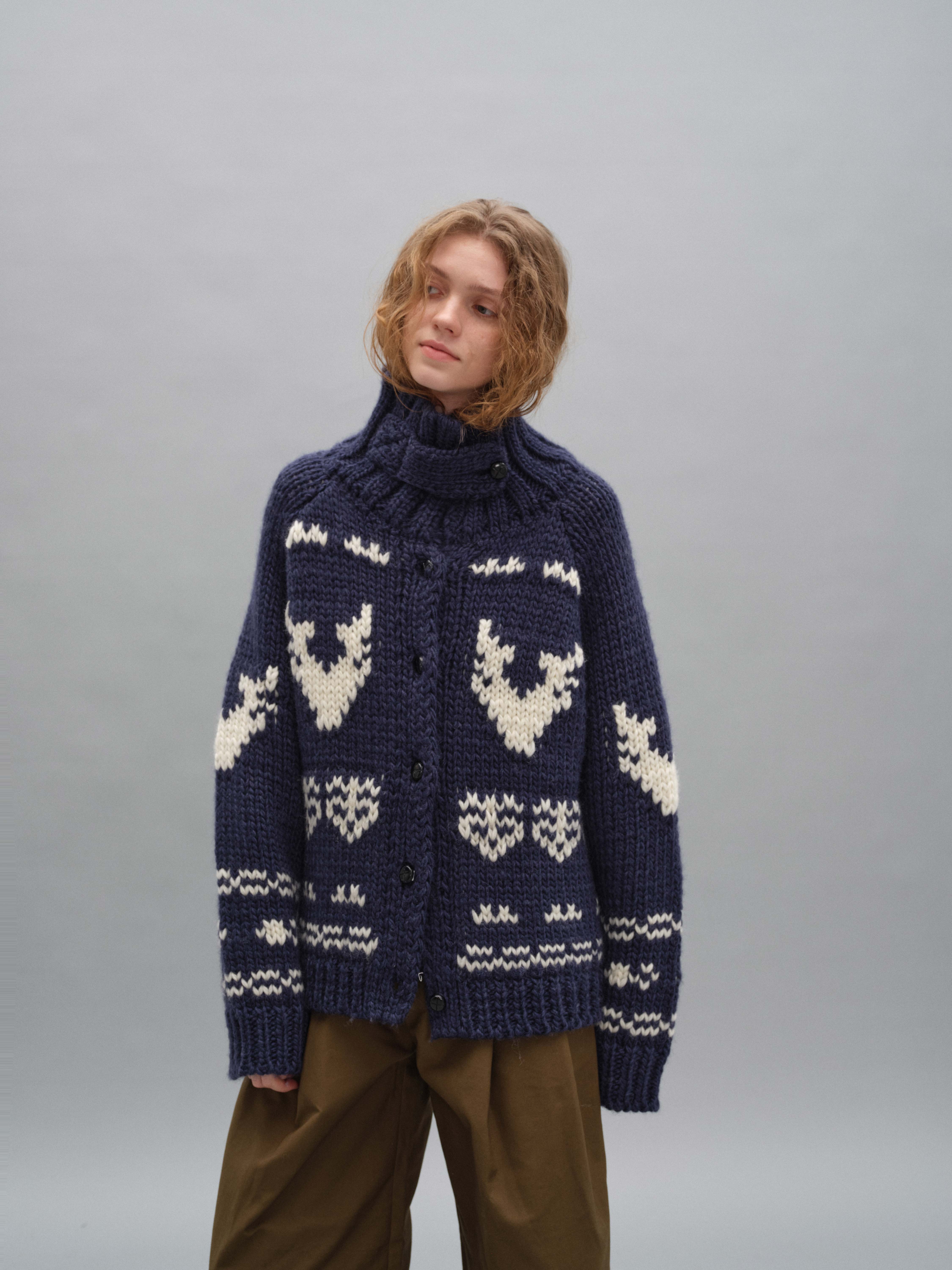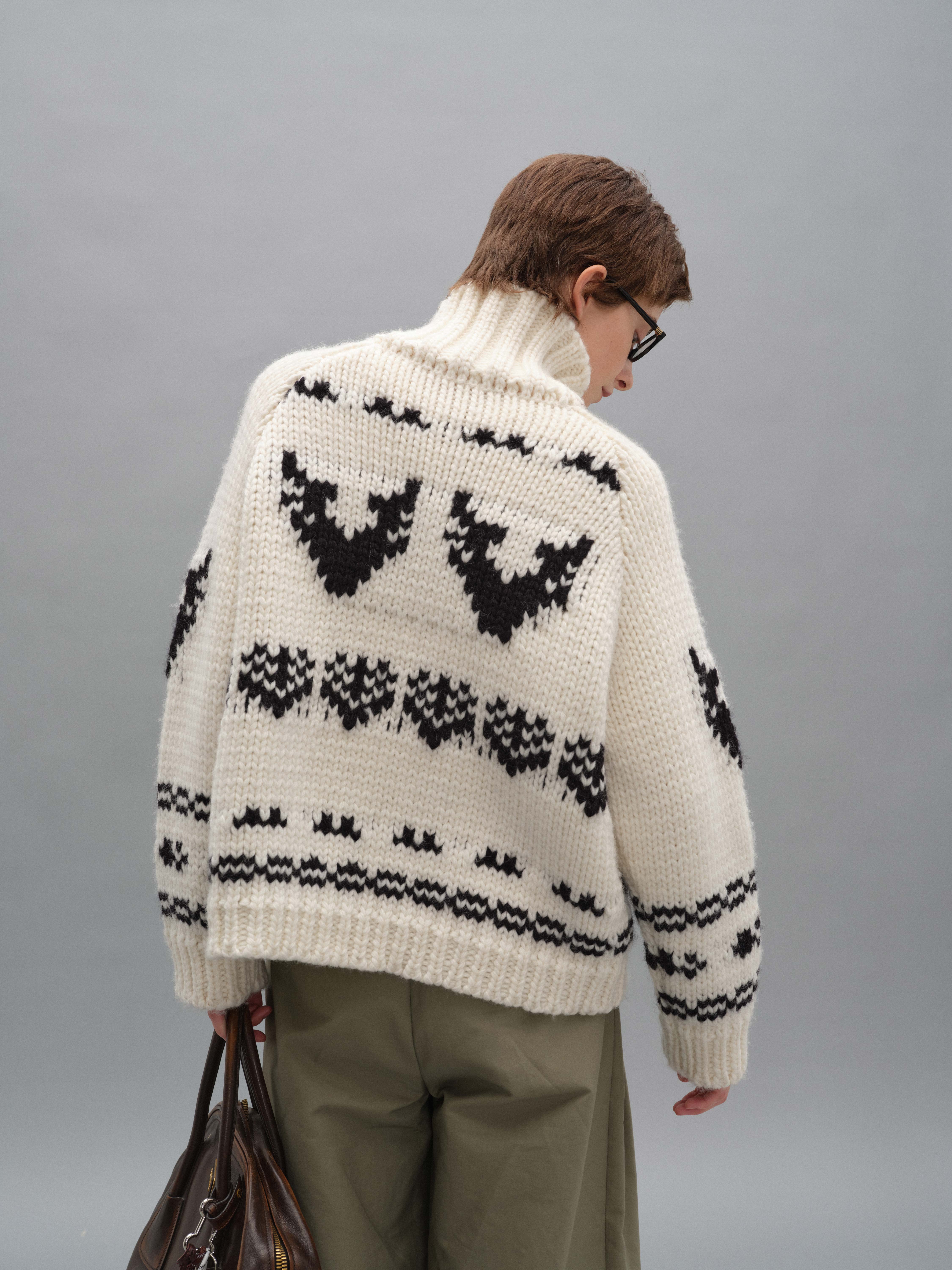 shyshystill/shy202408045/立领翻领两穿粗棒针织小鹿花色毛衣