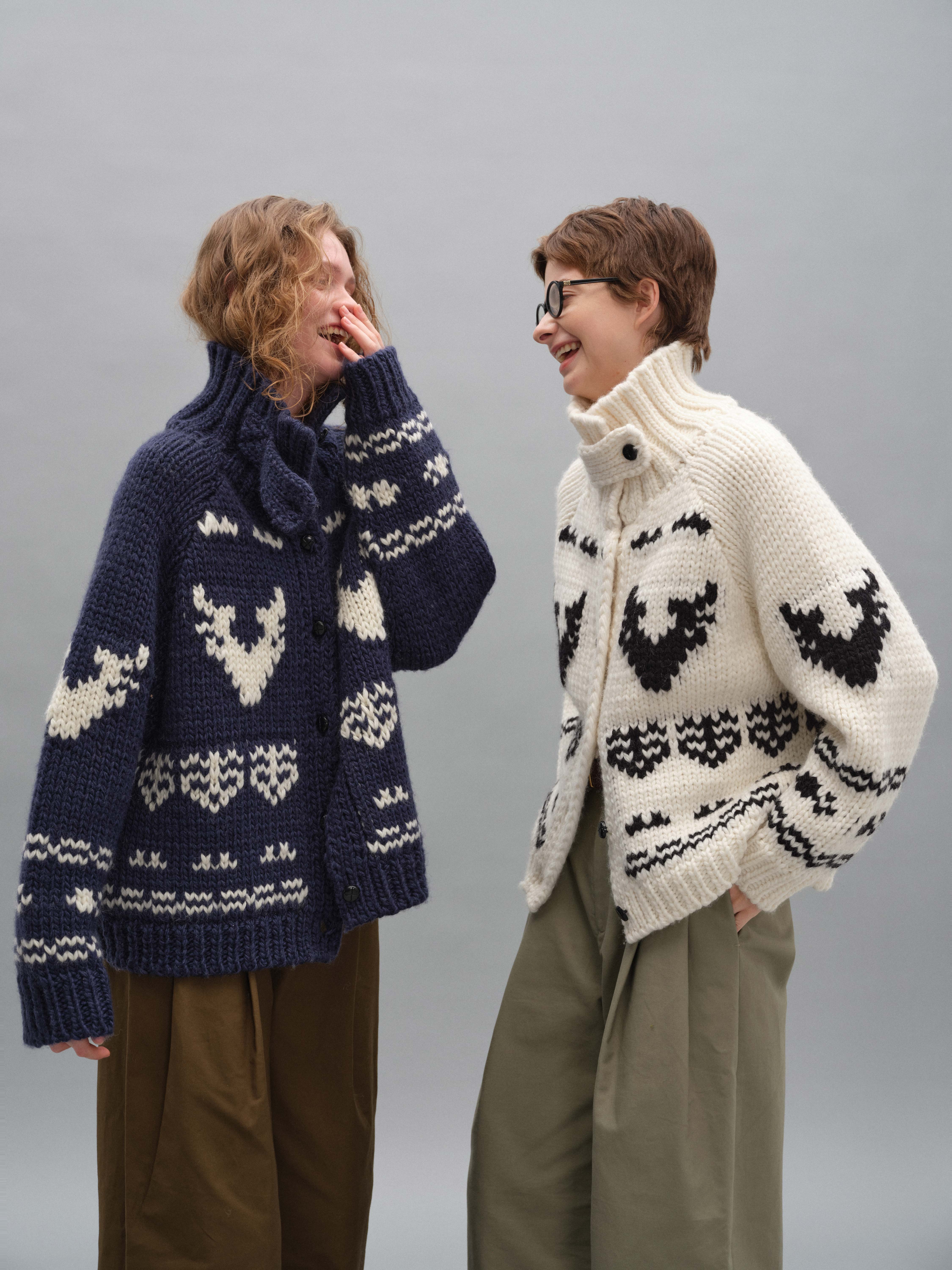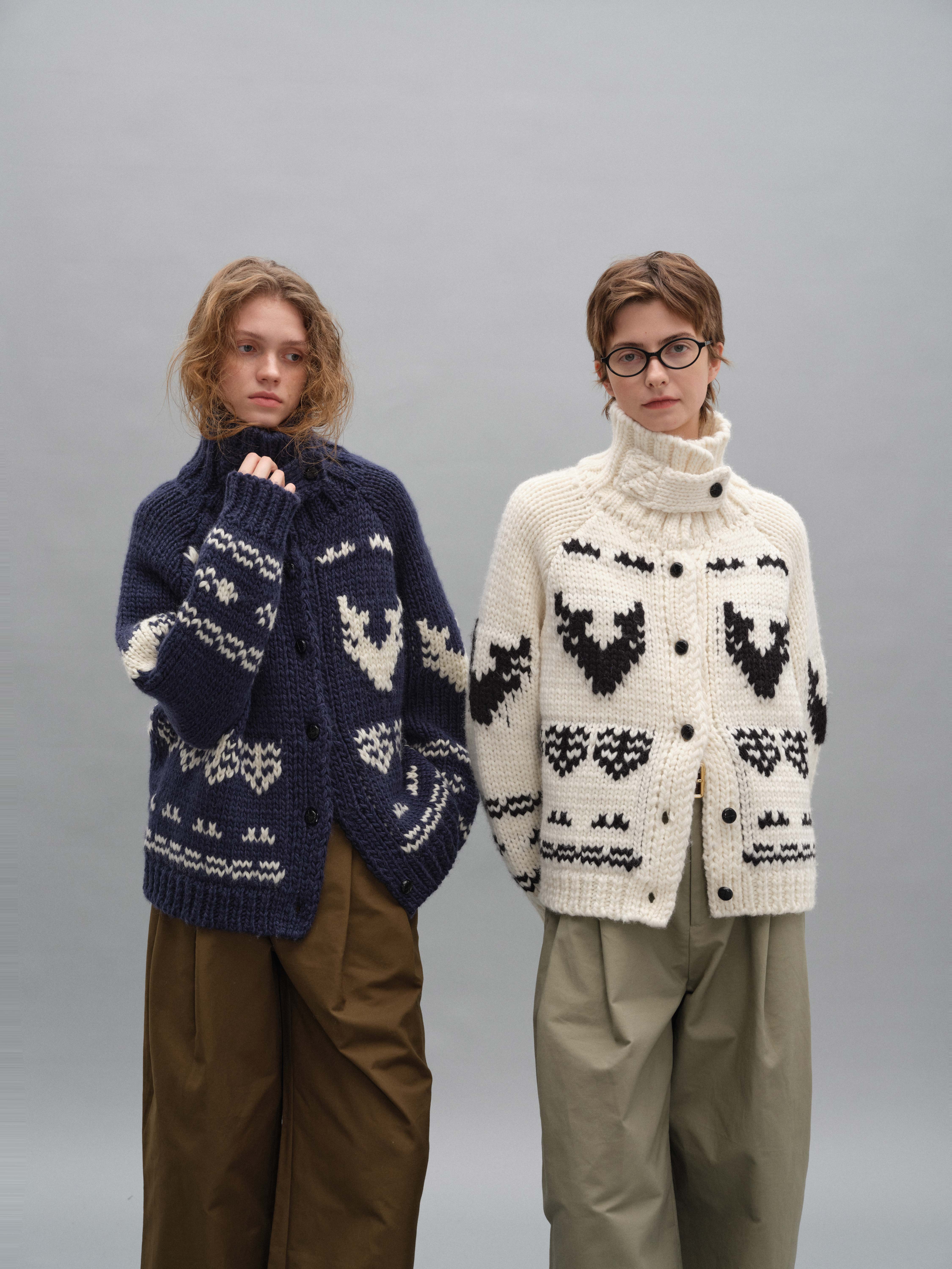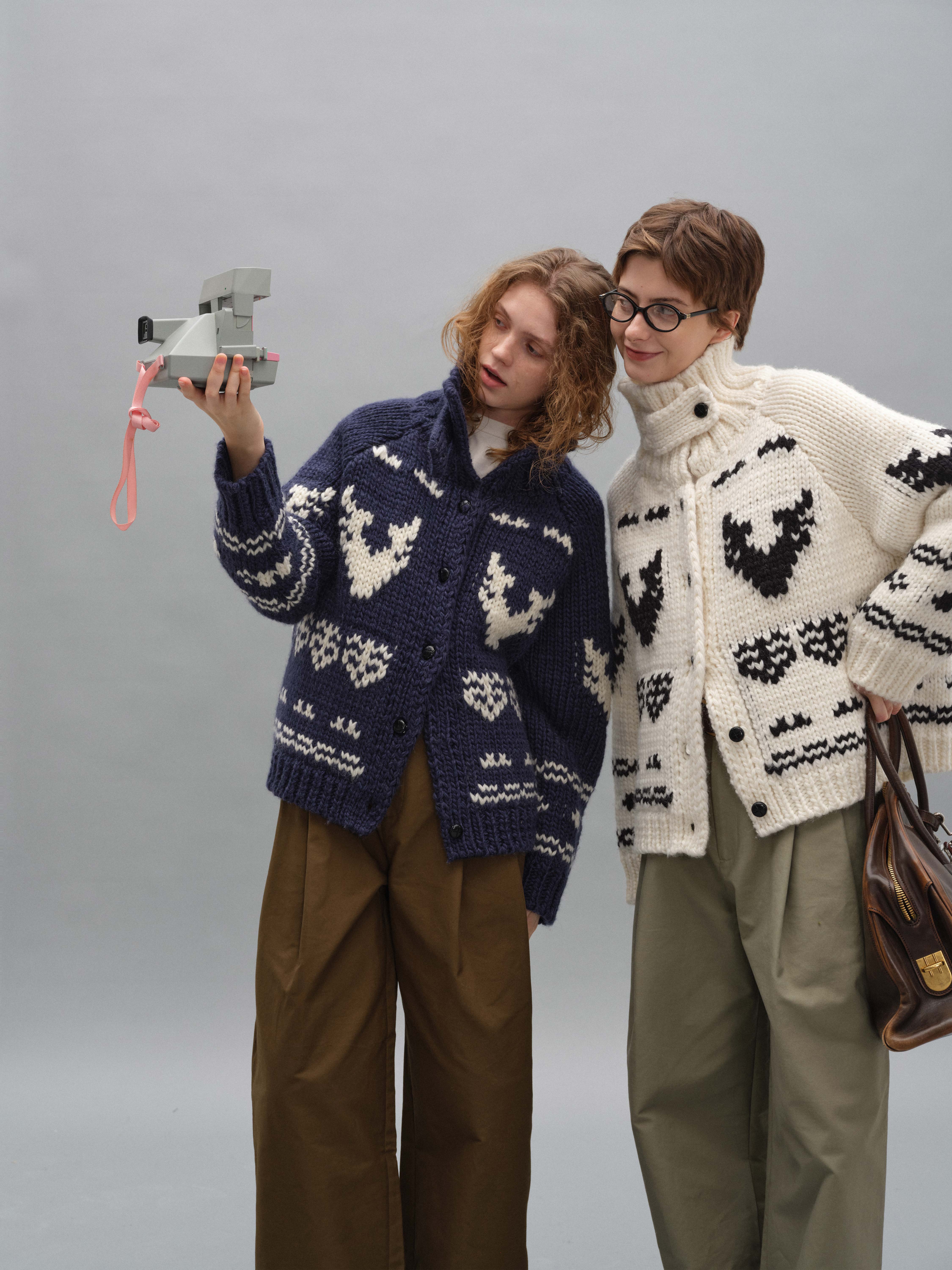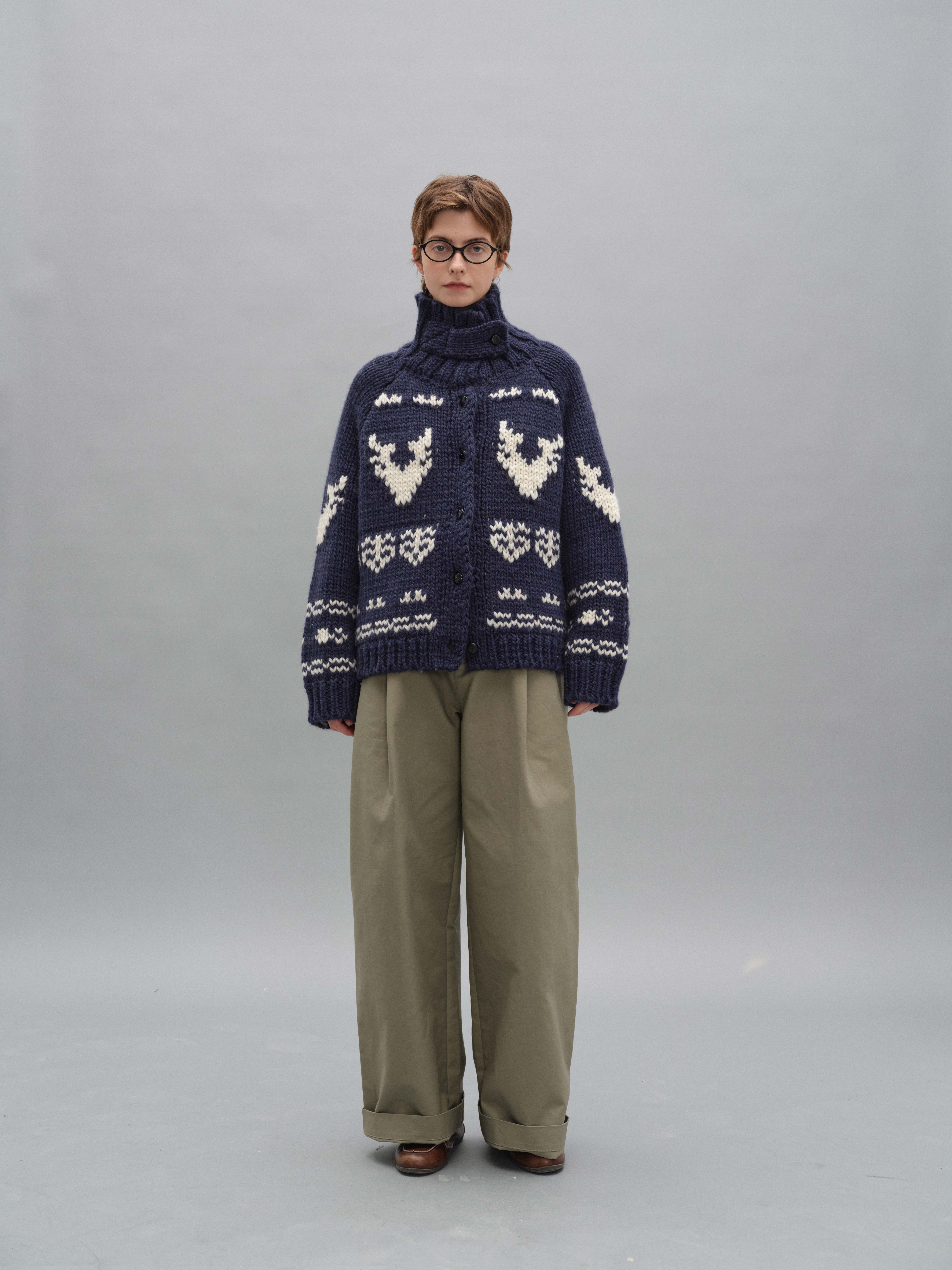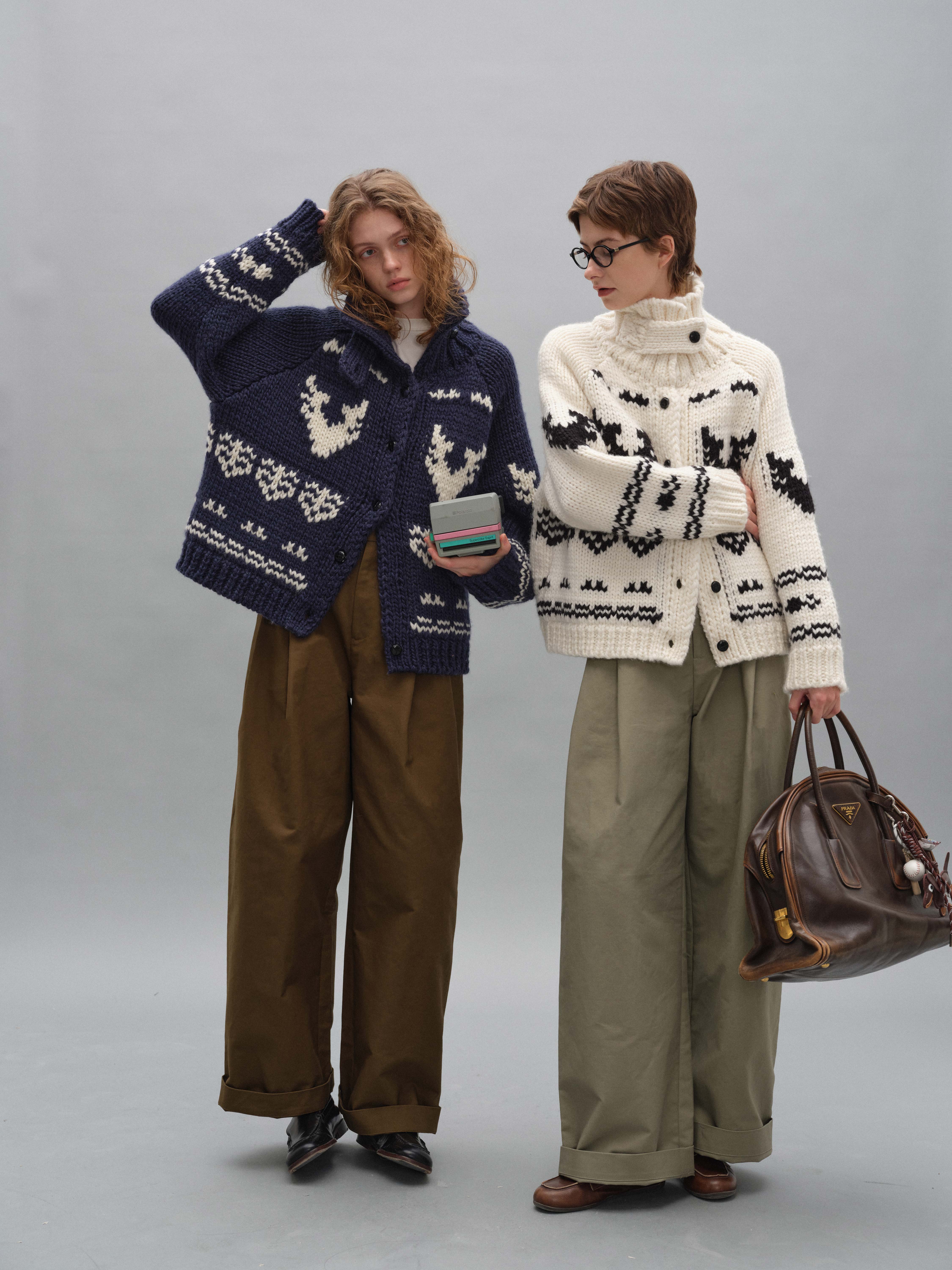 shyshystill/shy202408045/立领翻领两穿粗棒针织小鹿花色毛衣