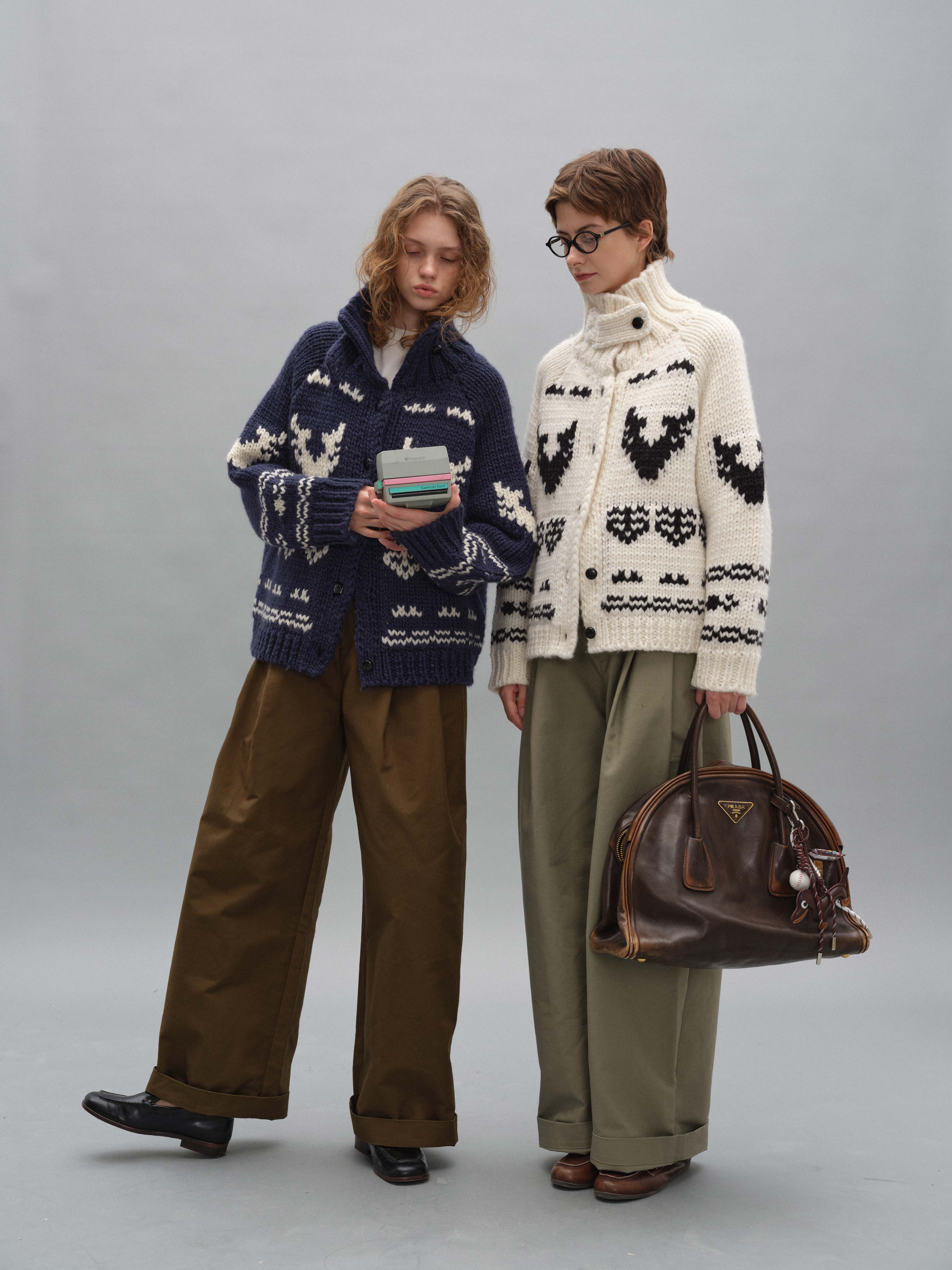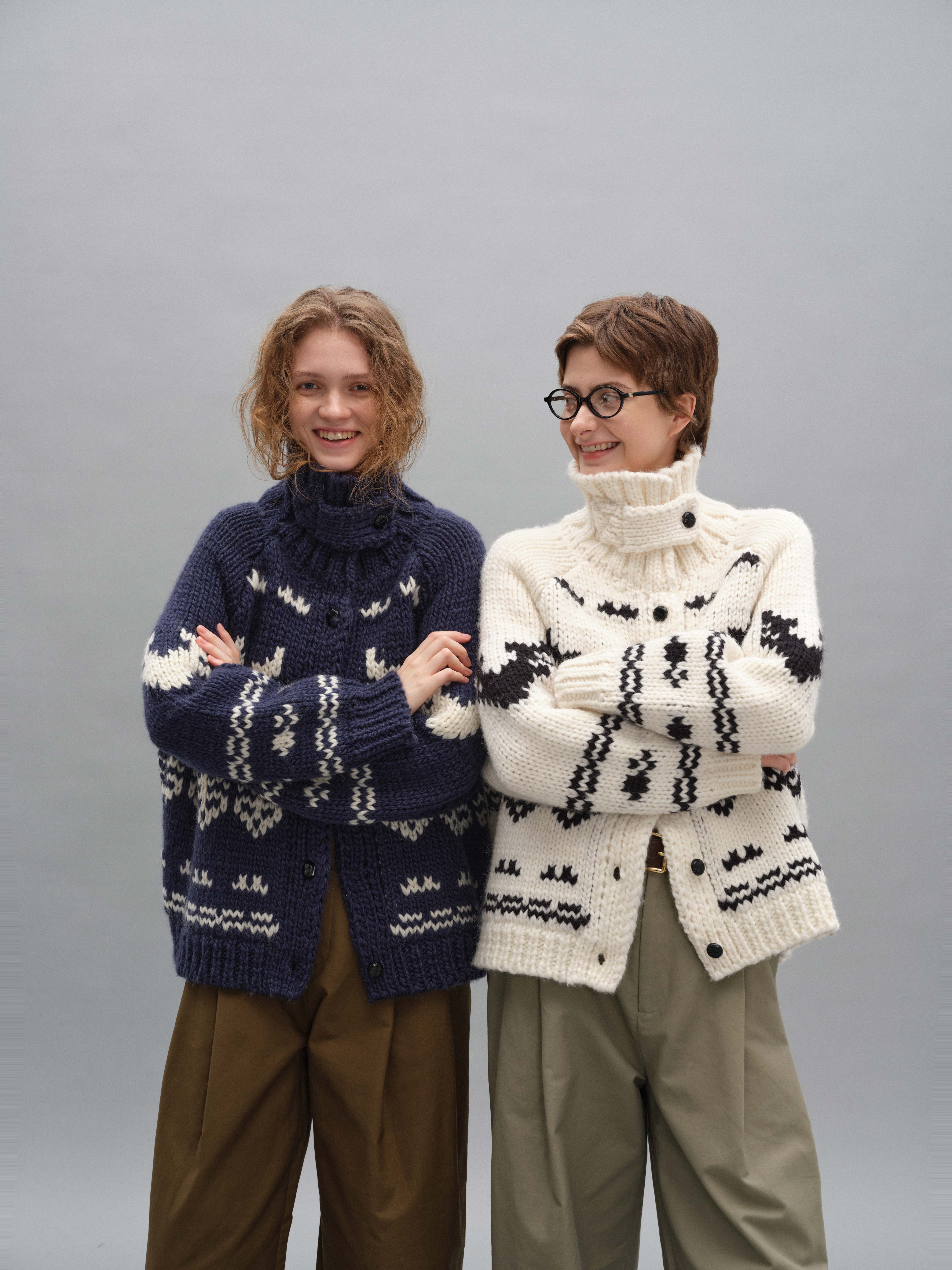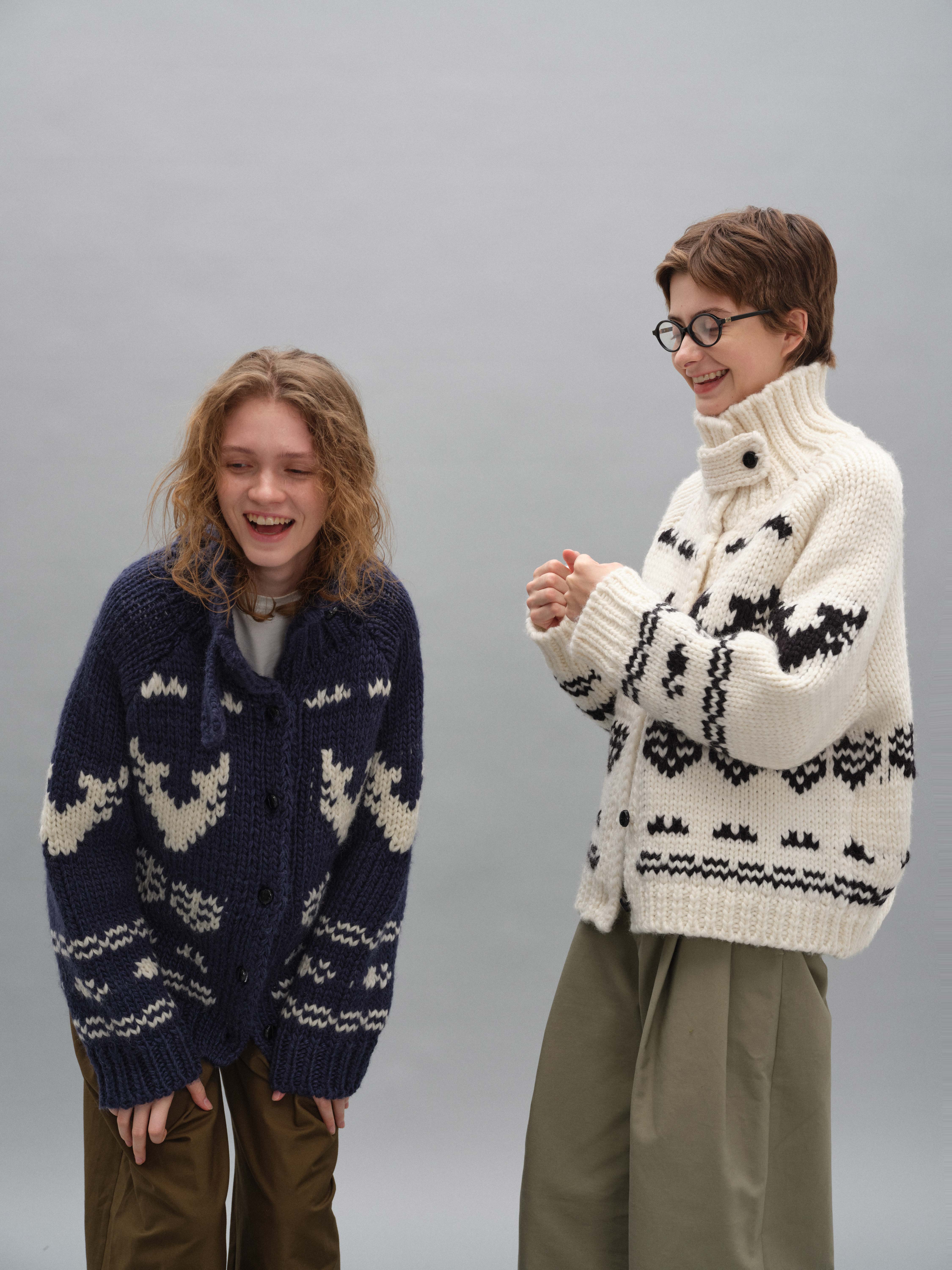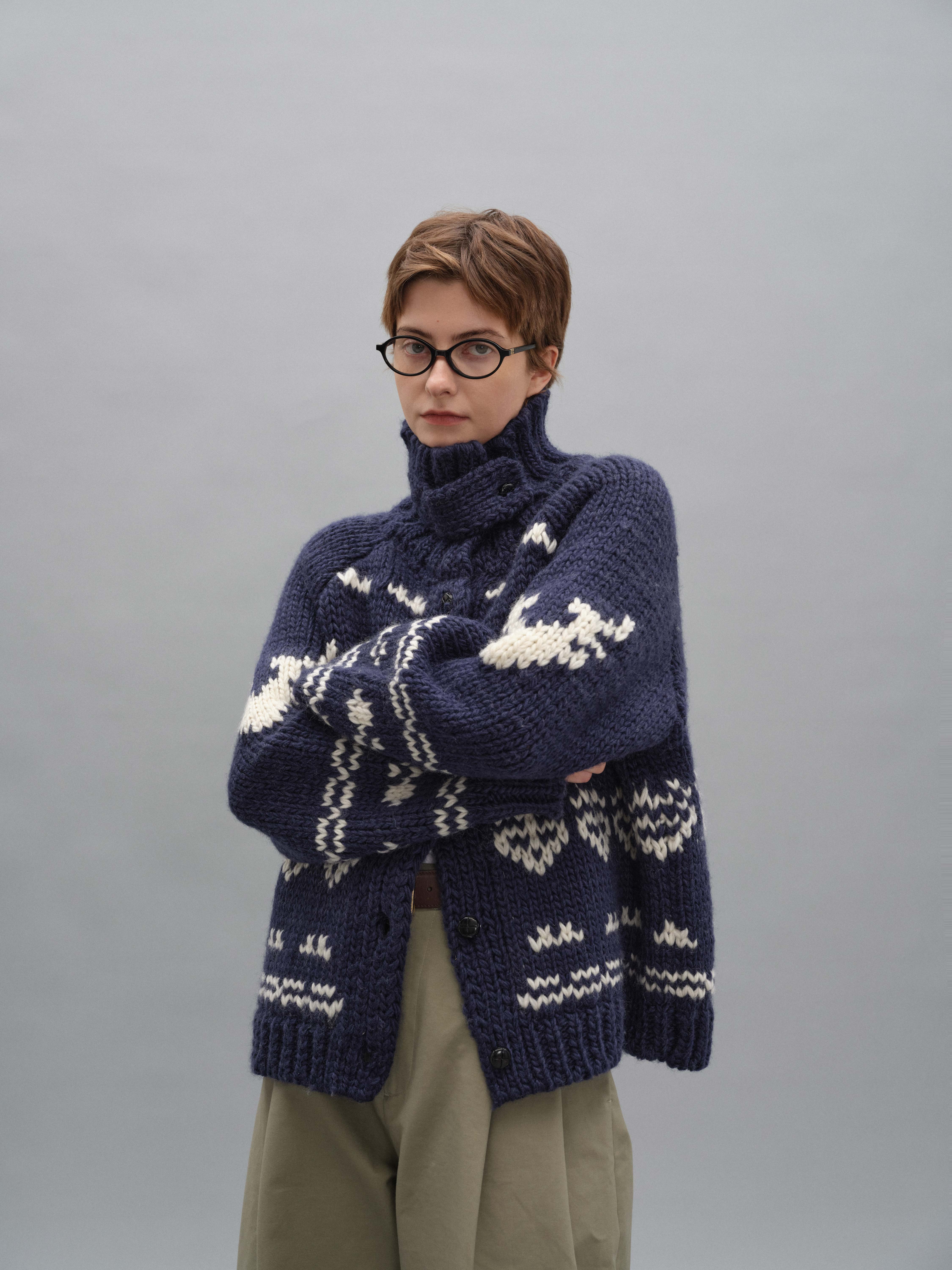 shyshystill/shy202408045/立领翻领两穿粗棒针织小鹿花色毛衣