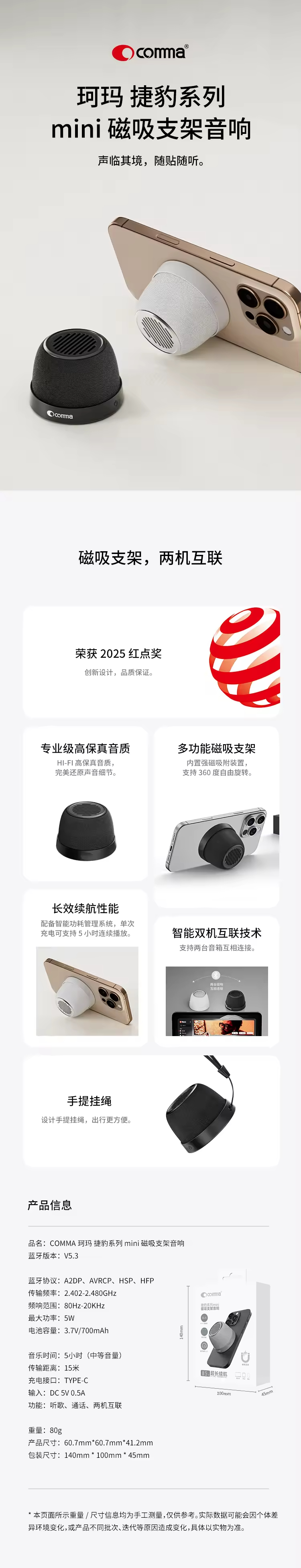 COMMA珂玛 捷豹系列 mini 磁吸支架音响