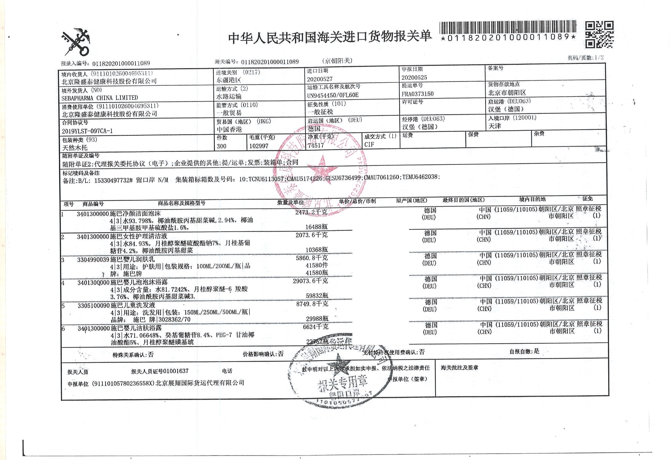施巴婴儿润肤乳200ml