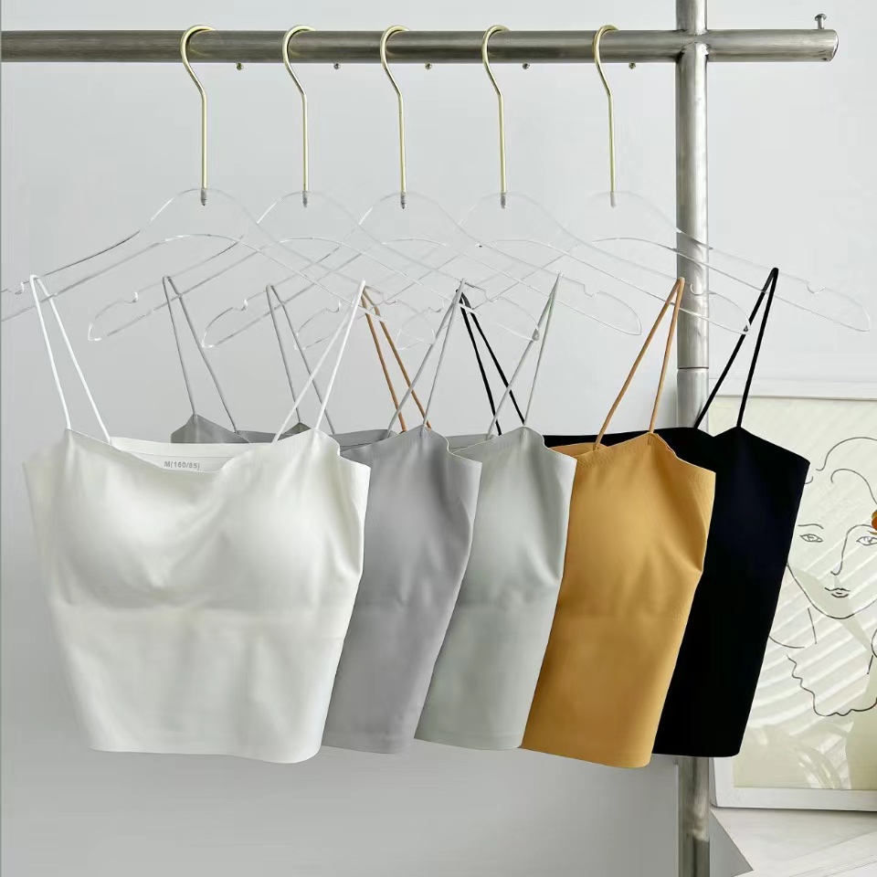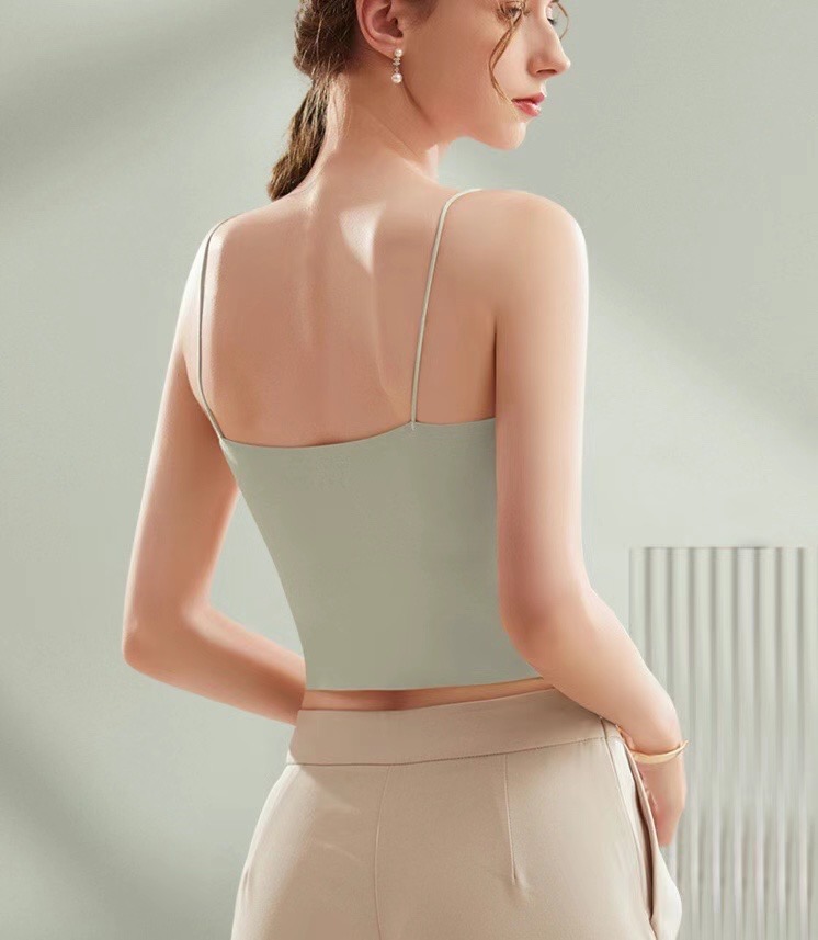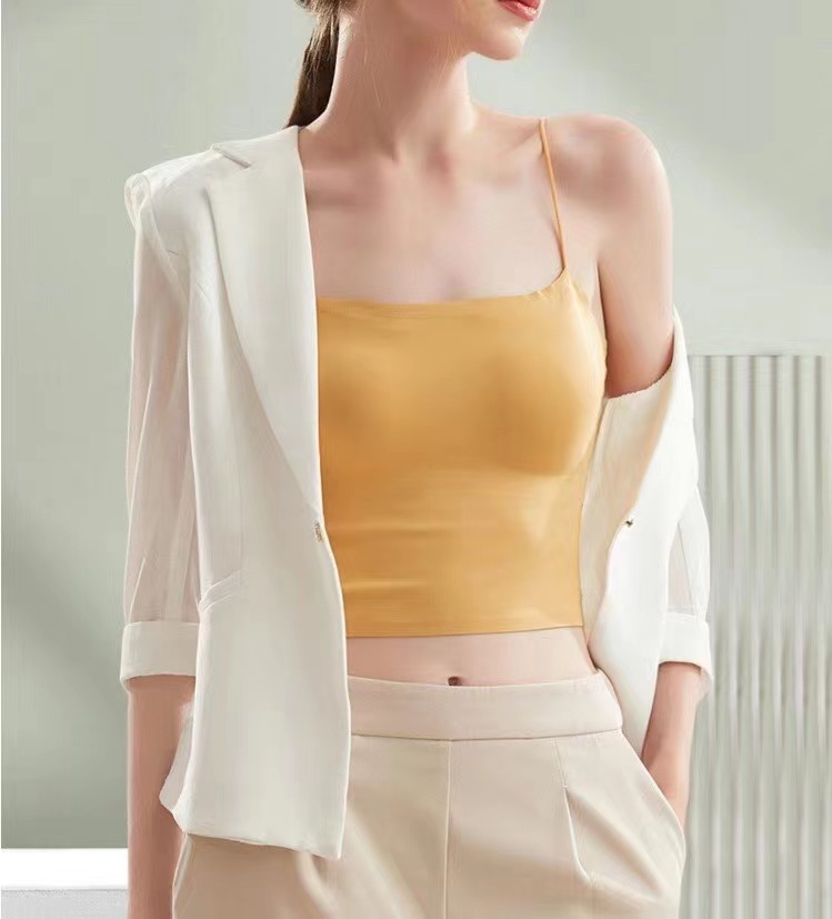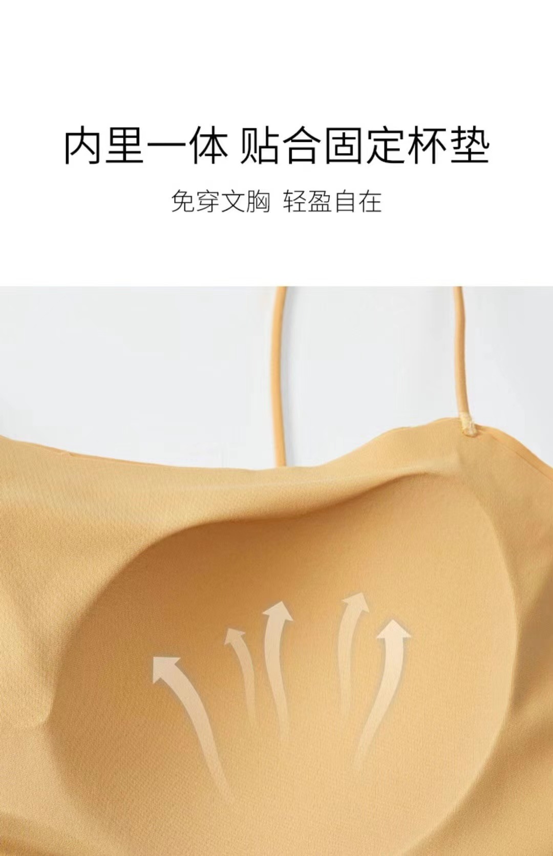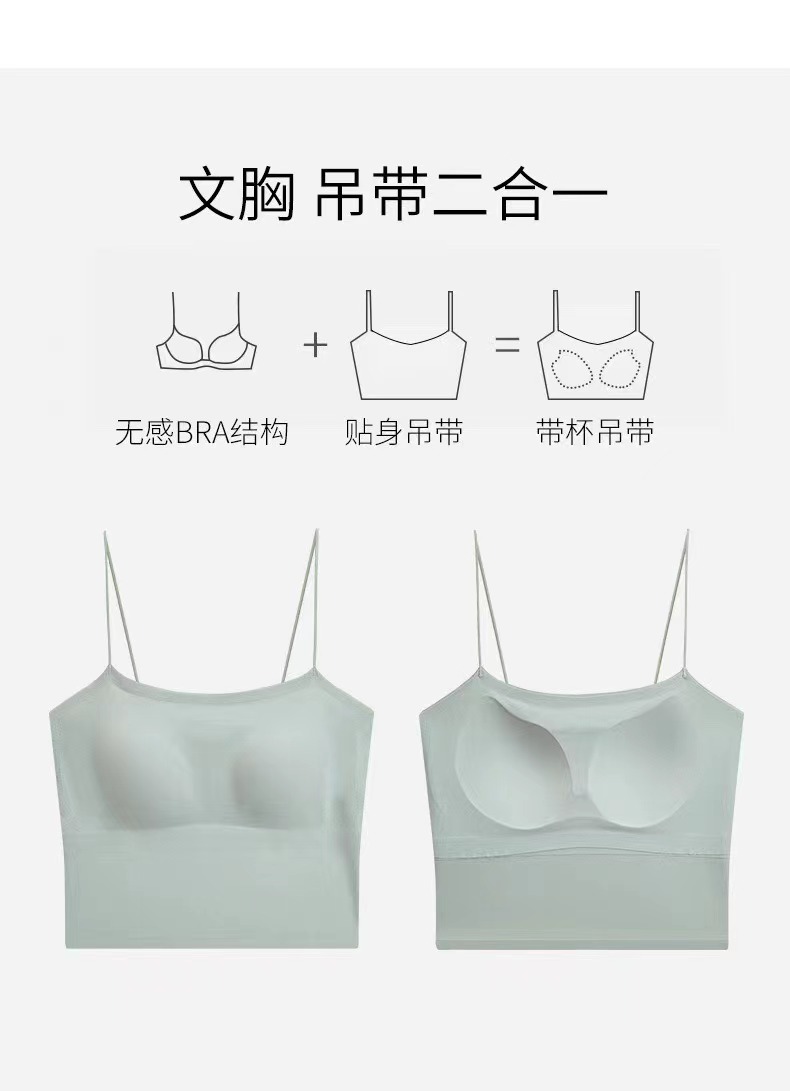 夏天真的太需要一体式吊带啦, 摆脱传统内衣的束缚 ,采用新型生产工艺 ,内里一体贴合固定杯垫舒适服帖, 不会移位哦,特别舒服。下围折边贴胶 ,有效防止胸部下垂,包裹性好,久穿不变形。