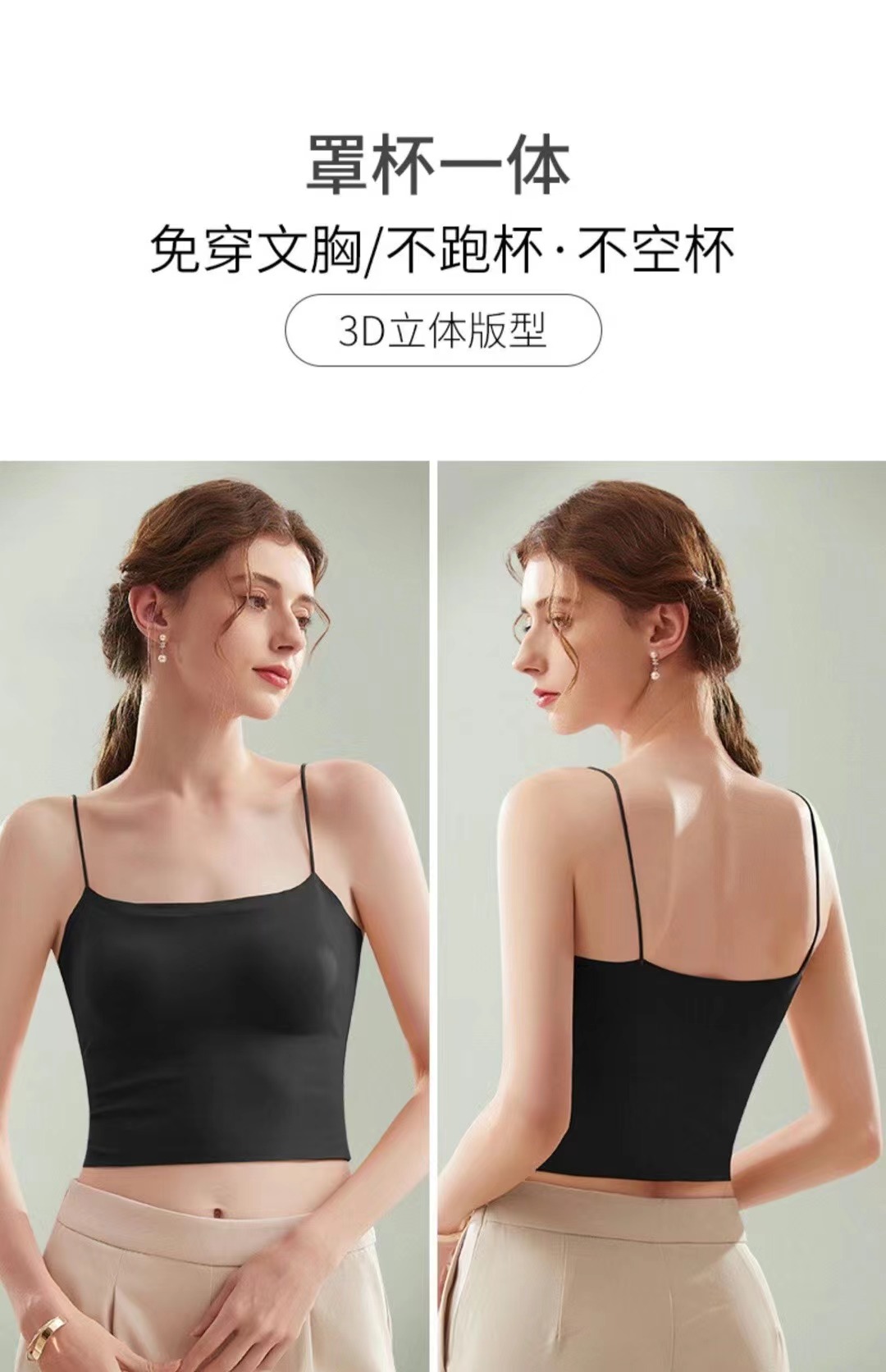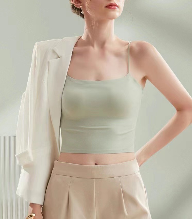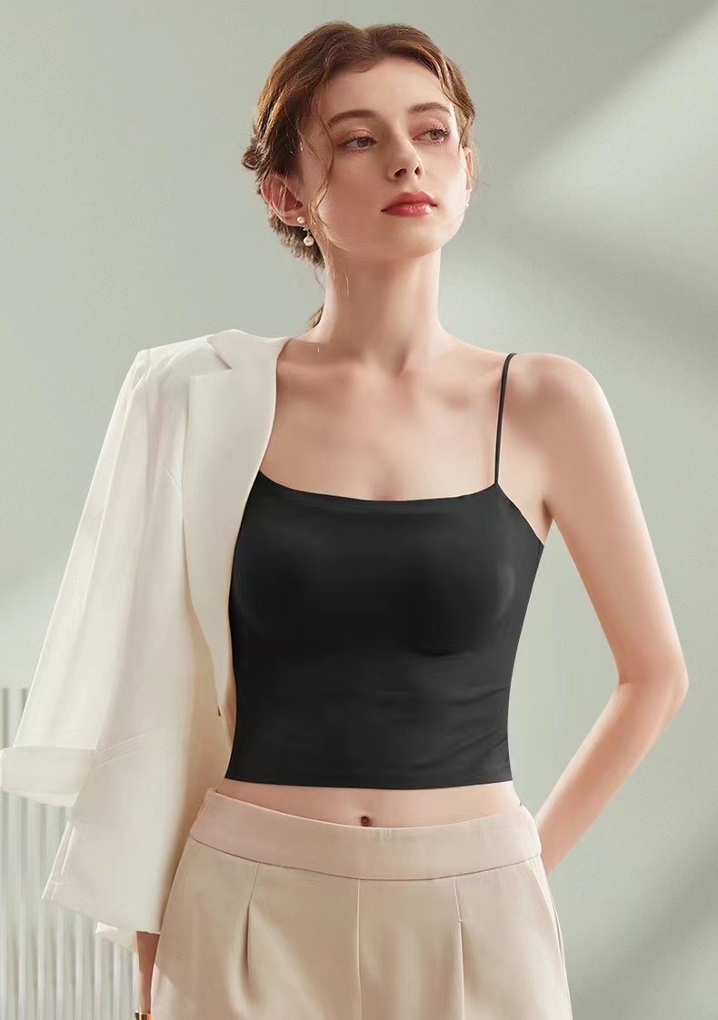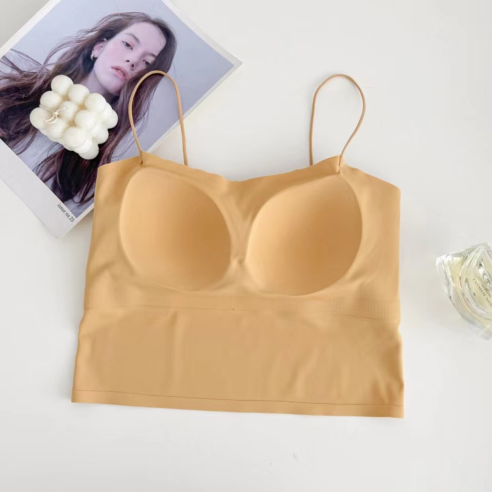 夏天真的太需要一体式吊带啦, 摆脱传统内衣的束缚 ,采用新型生产工艺 ,内里一体贴合固定杯垫舒适服帖, 不会移位哦,特别舒服。下围折边贴胶 ,有效防止胸部下垂,包裹性好,久穿不变形。