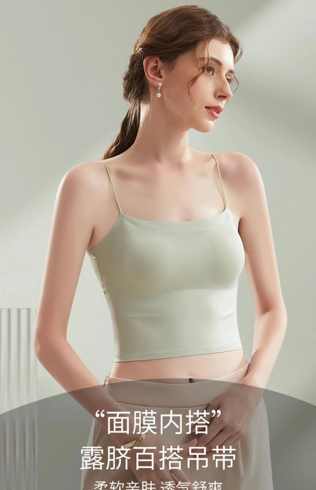 冰丝面膜感面料,炒鸡轻薄,透气, 裸感,无痕 ,上身冰冰凉,告别闷热~不可调节超细肩带 ,弹力好,上身零压,很喜欢细肩带穿上的气质感,无论单穿还是内搭都很赞 ~~