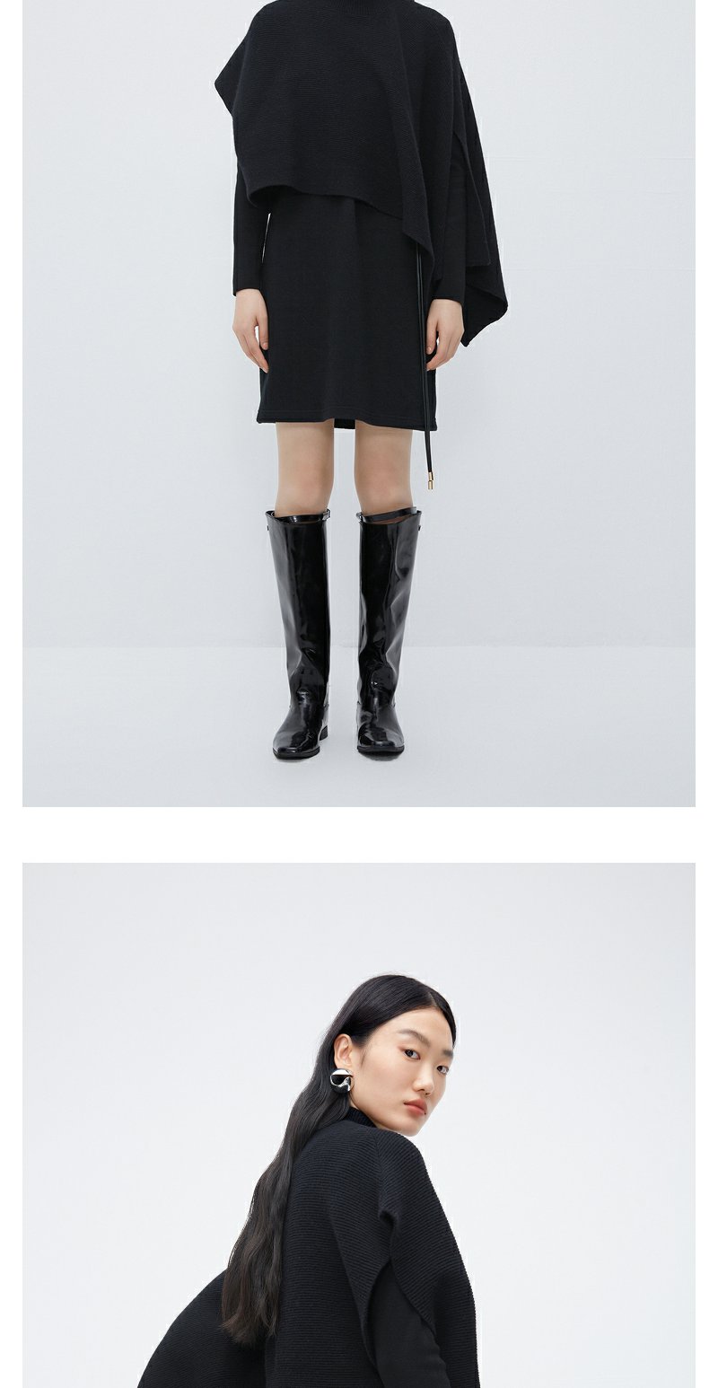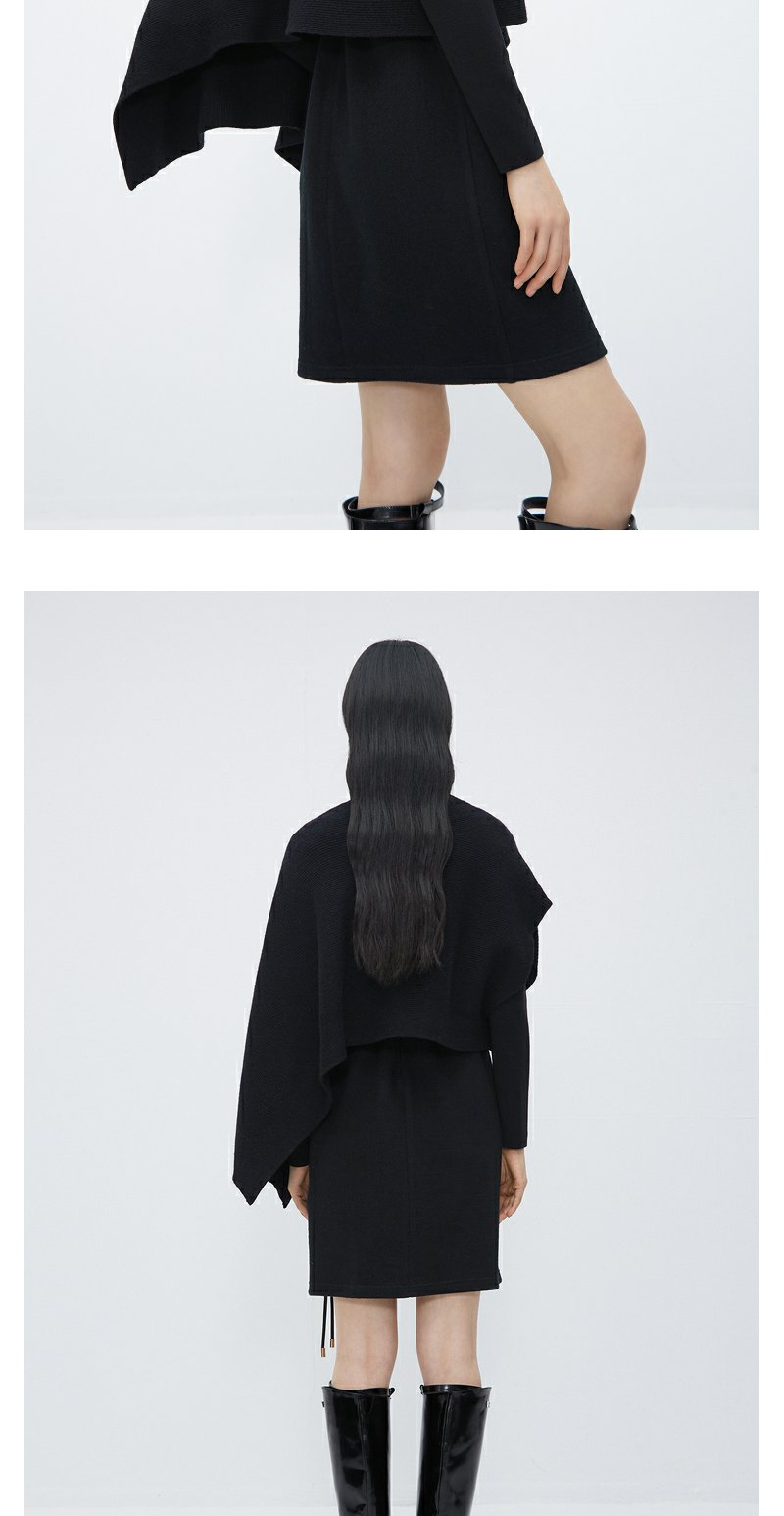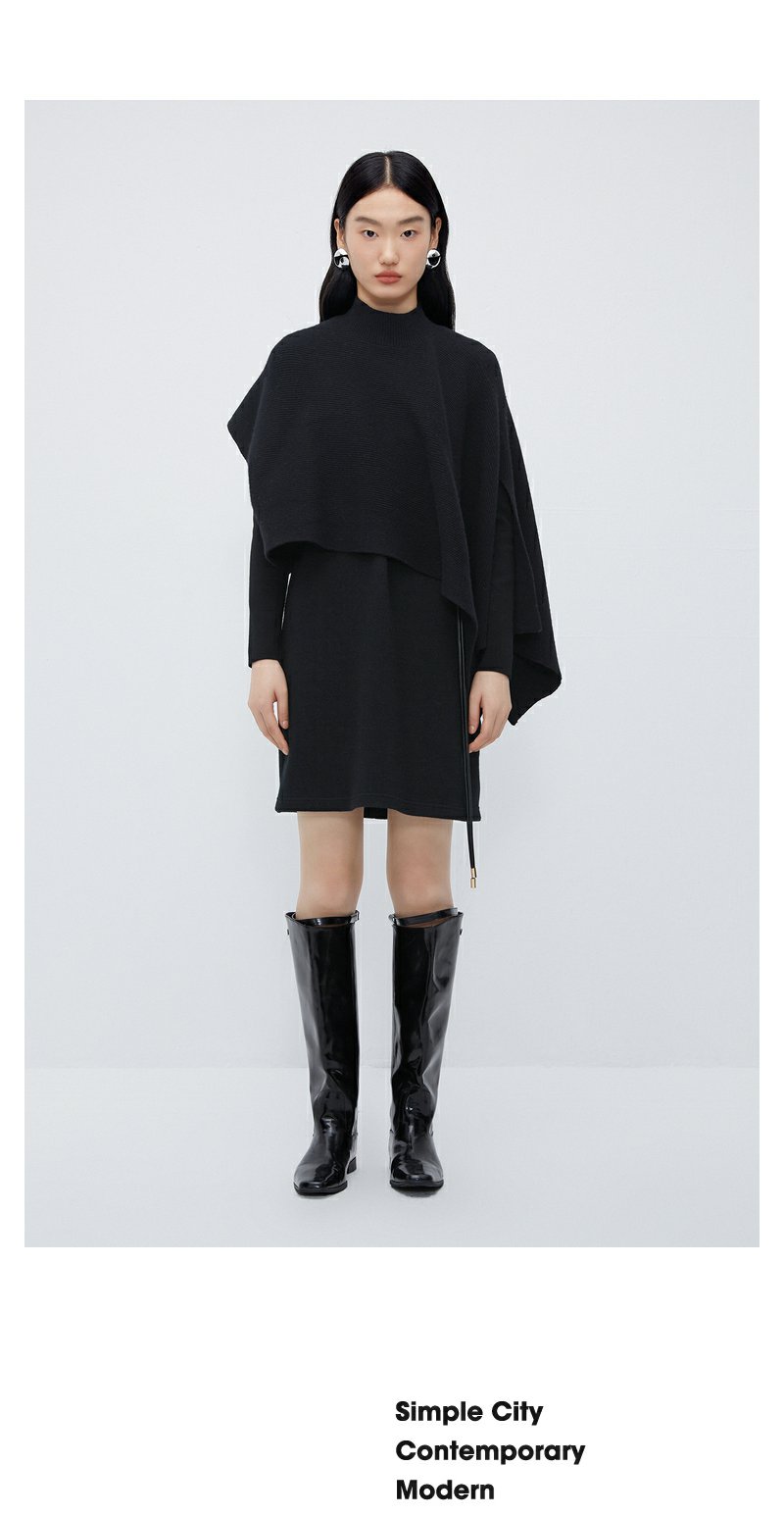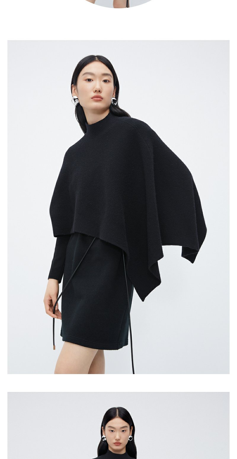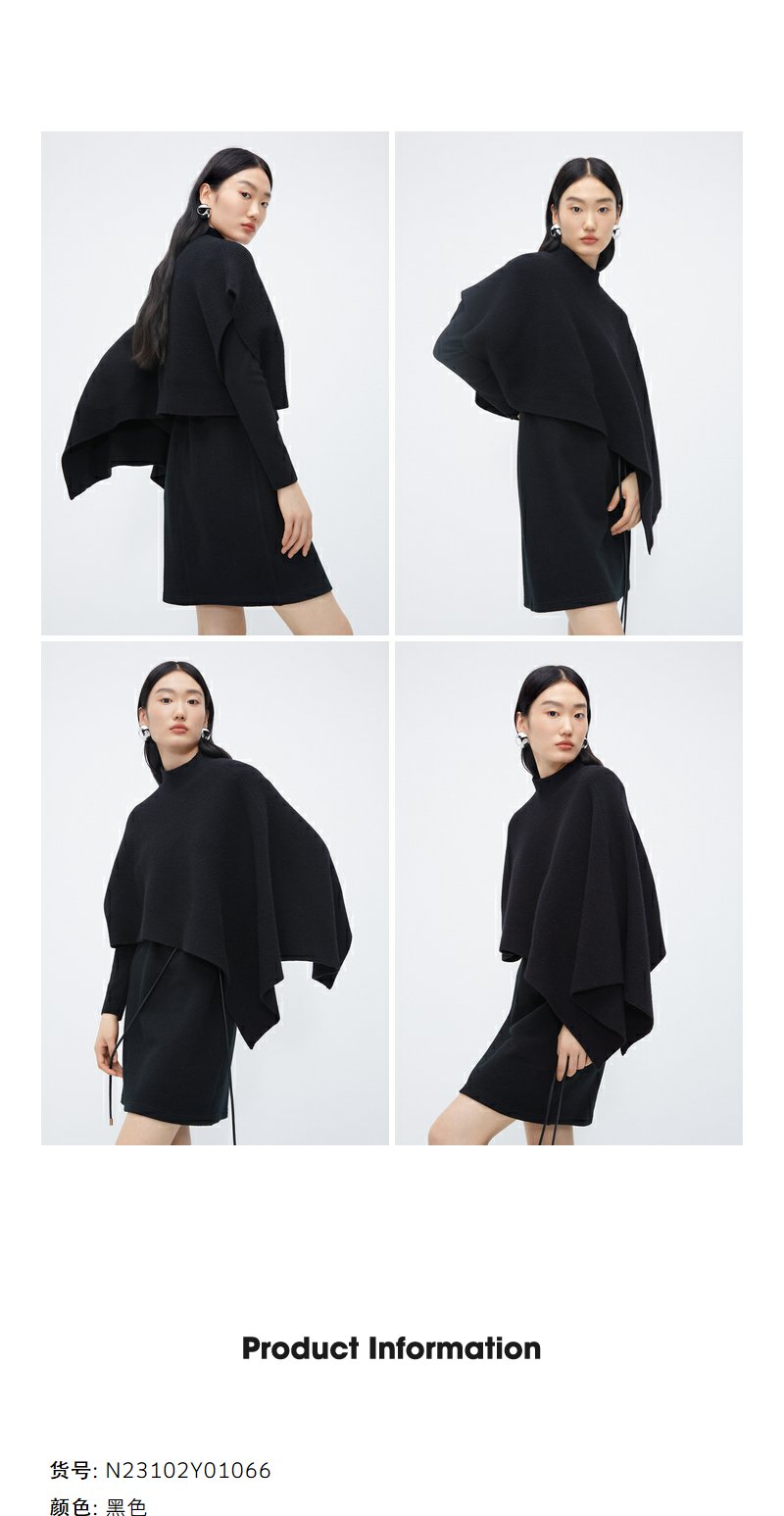 NEELLY纳俪商场同款斗篷针织套装裙黑色半高领端庄大气披肩连衣裙N24104Y04571