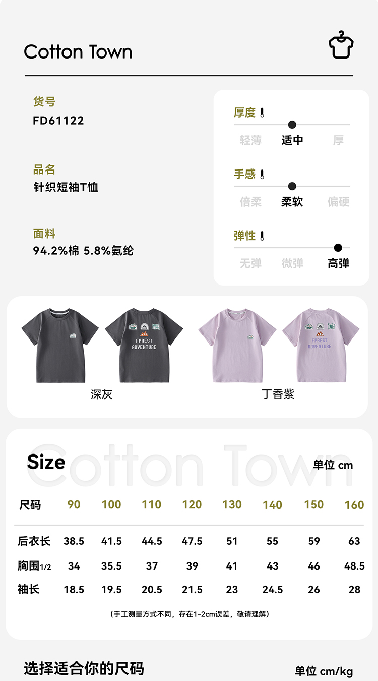 【10A抗菌】棉花堂夏款随性透气山系小凉皮童装短袖T恤-- FD61122