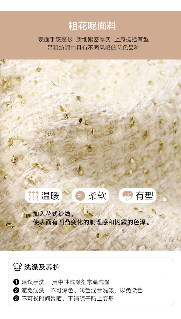 韩都衣舍冬季新款大翻领中长款羊毛粗花呢毛呢外套女JM10431