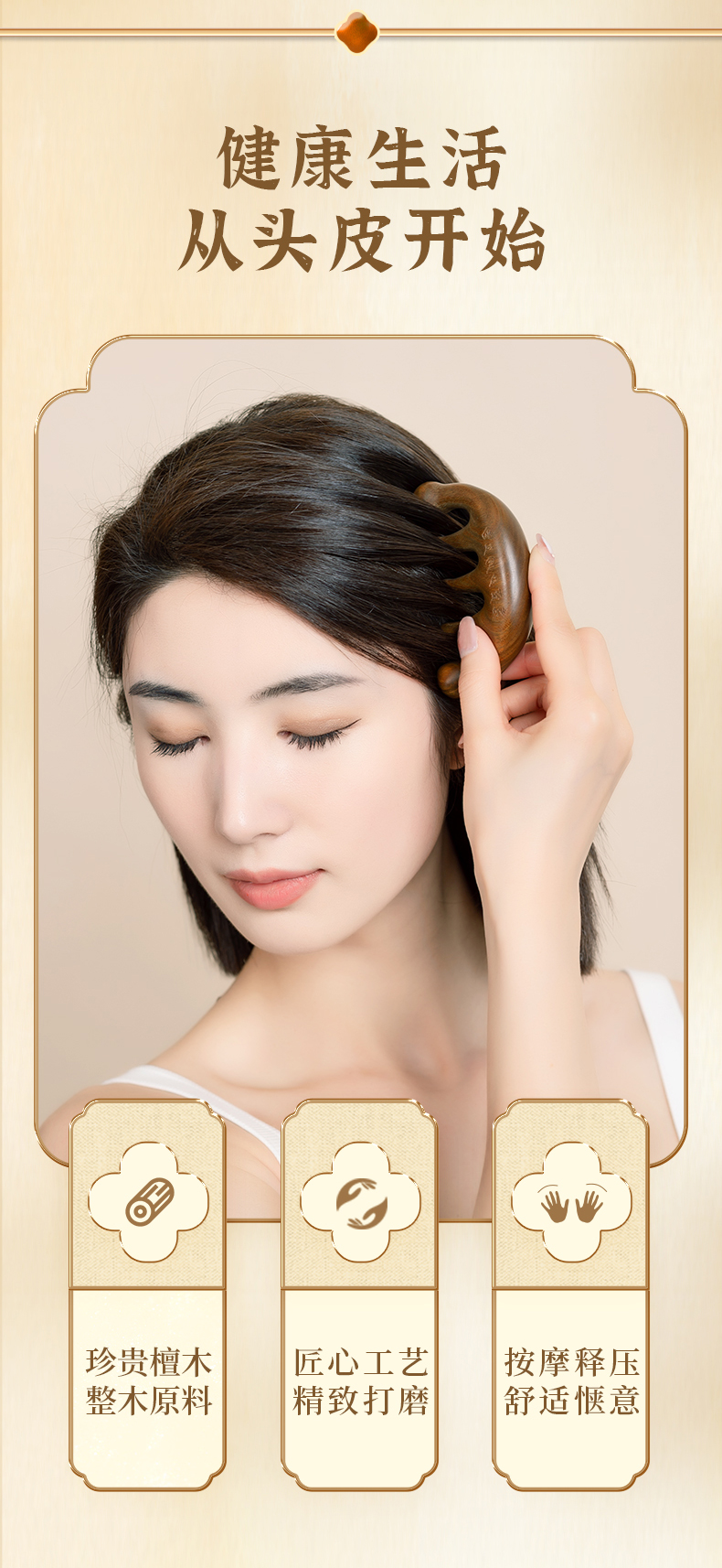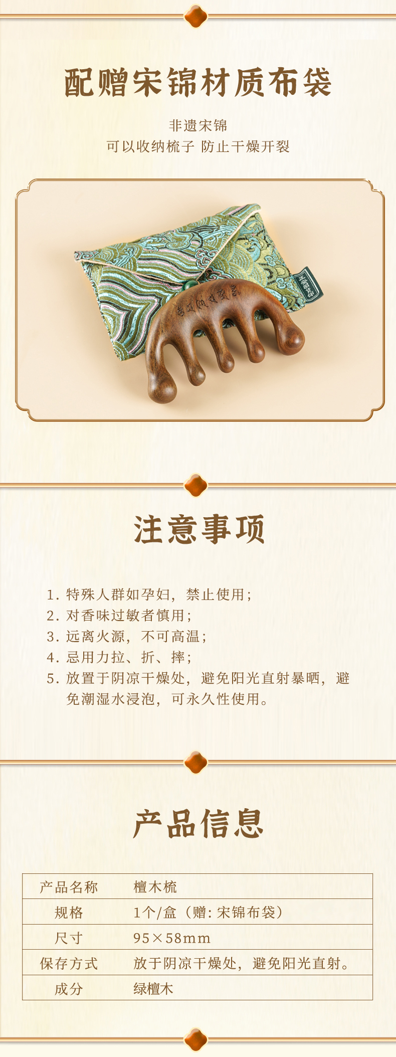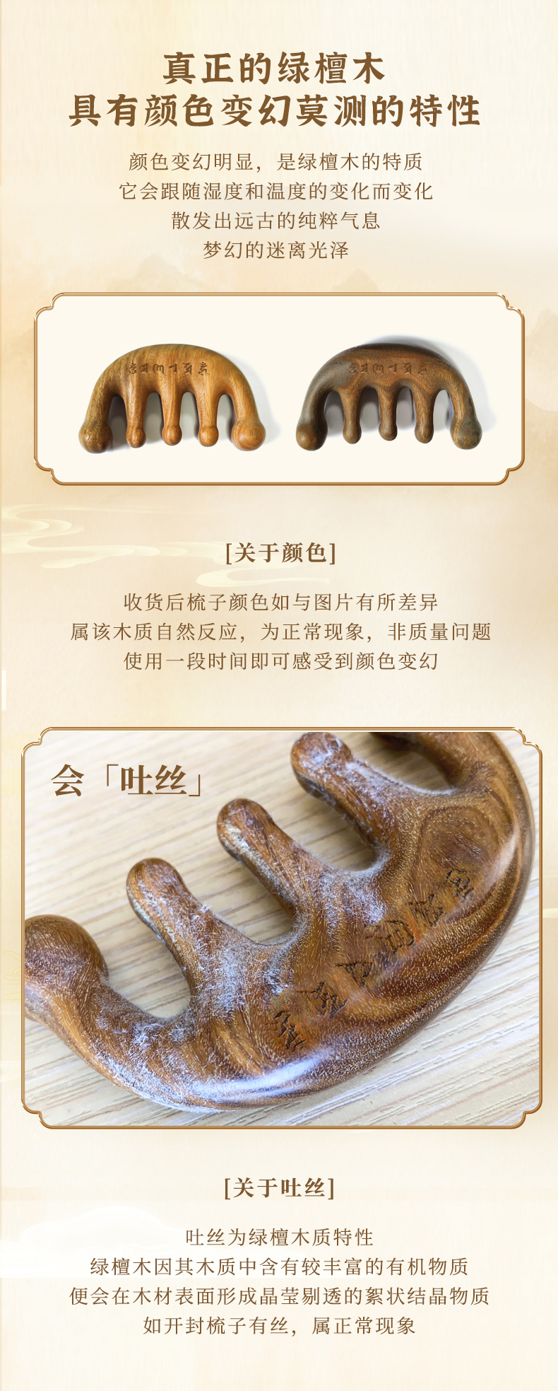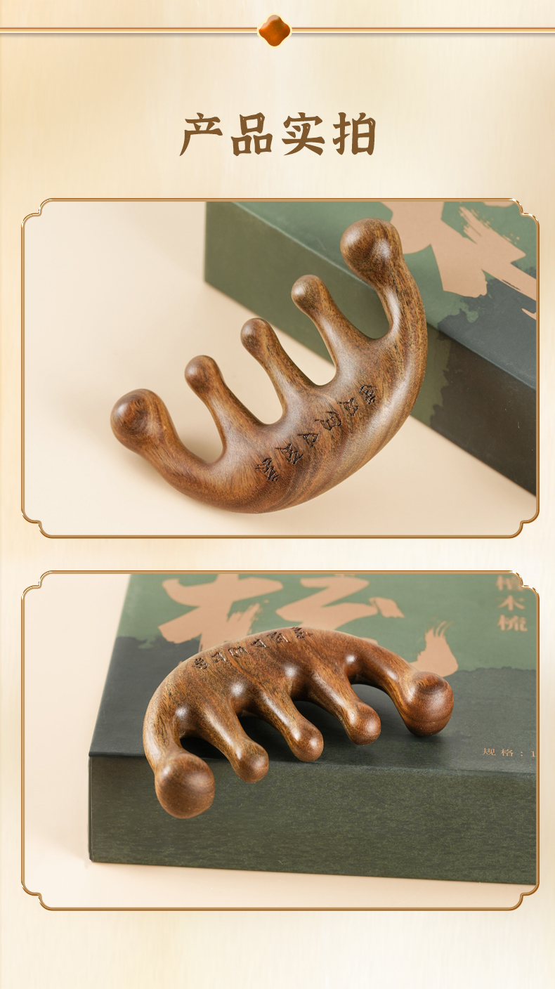 正安 檀木梳 按抚头皮梳理 随身携带梳头发 绿檀木整木制作点穴头颈木梳