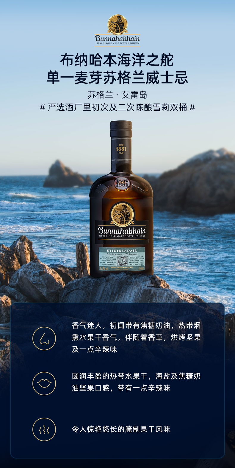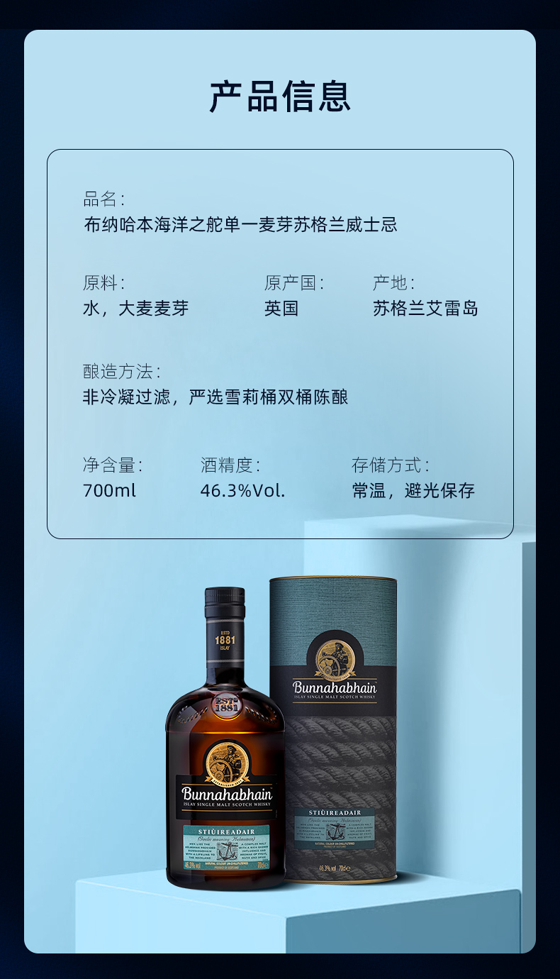 布纳哈本海洋之舵单一麦芽苏格兰威士忌 700ml 46.3%vol 正品行货