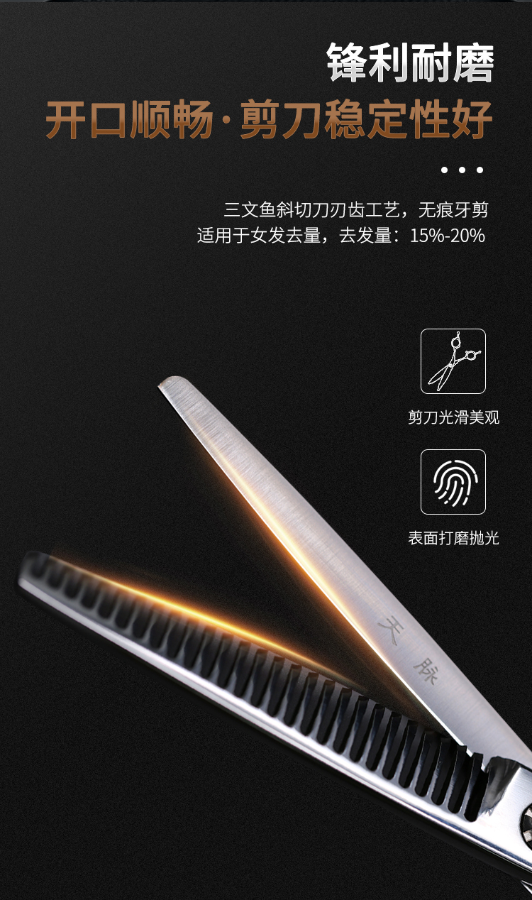 HIGHTOUCH 天脉 T602704 剪刀 牙剪/调量剪/女发牙剪/打薄剪/斜弧双面锋口/日式/去发量15-20%/ 27根齿/正刃/6寸