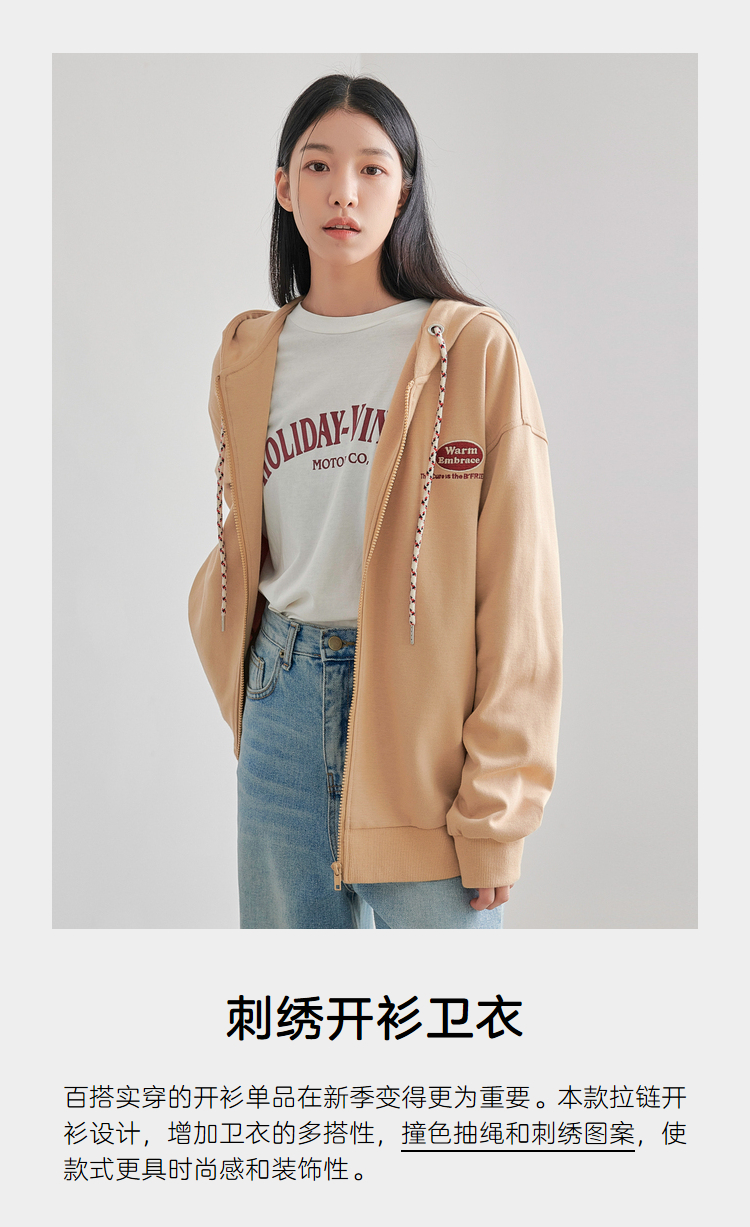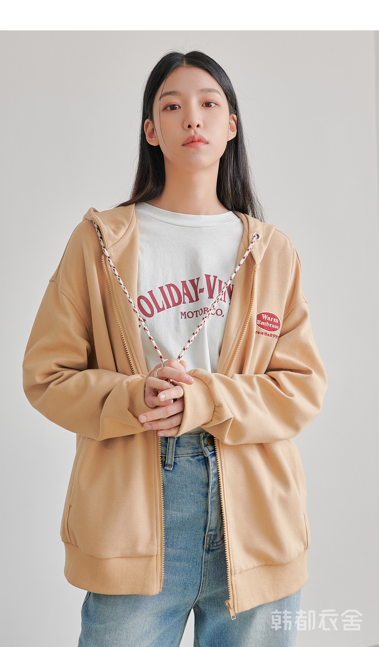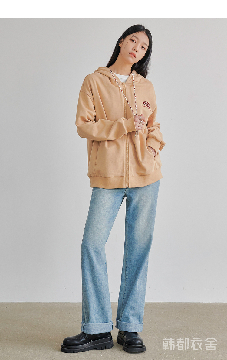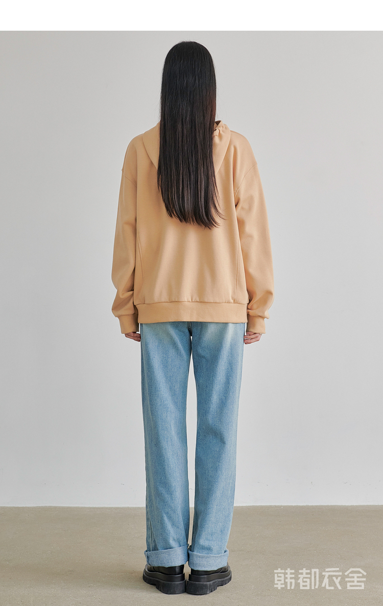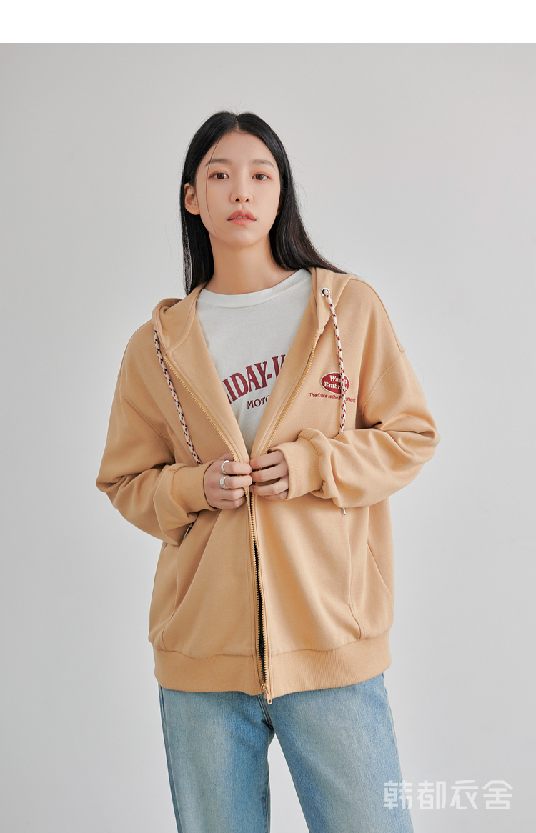 韩都衣舍2021春新款韩版女装百搭连帽上衣开衫卫衣OU13688