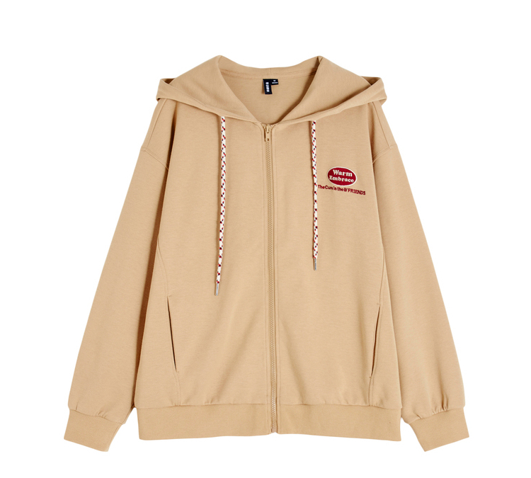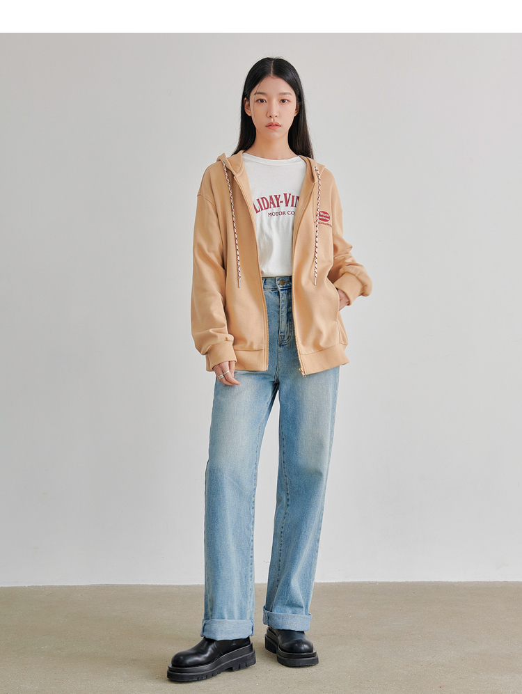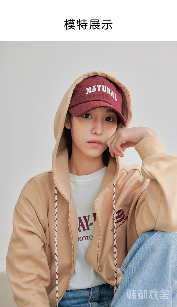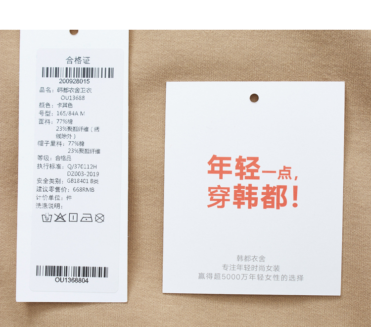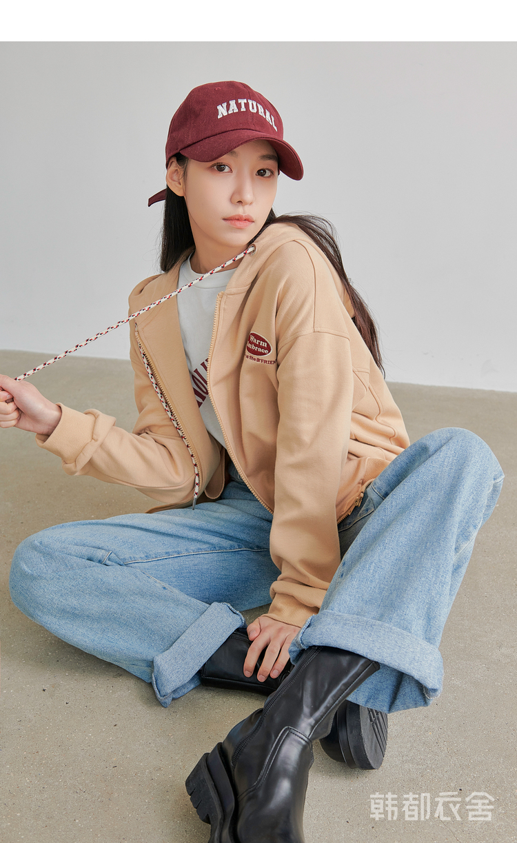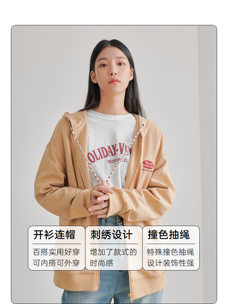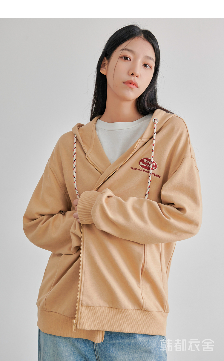 韩都衣舍2021春新款韩版女装百搭连帽上衣开衫卫衣OU13688