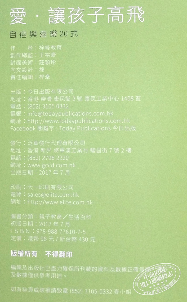 【中商原版】爱 让孩子高飞 自信与喜乐20式 港台原版 梓峰教育 今日出版 生活教养