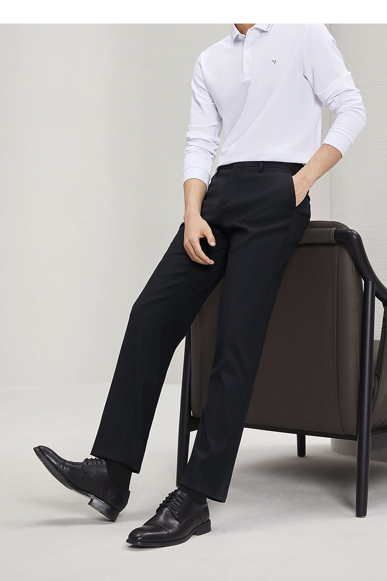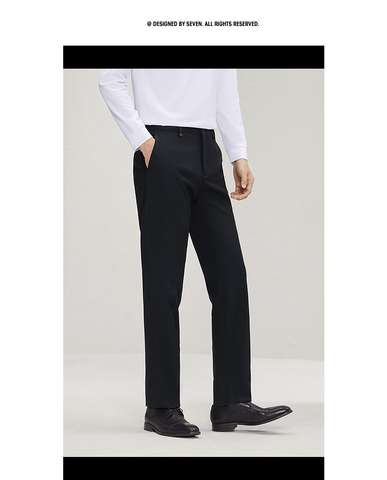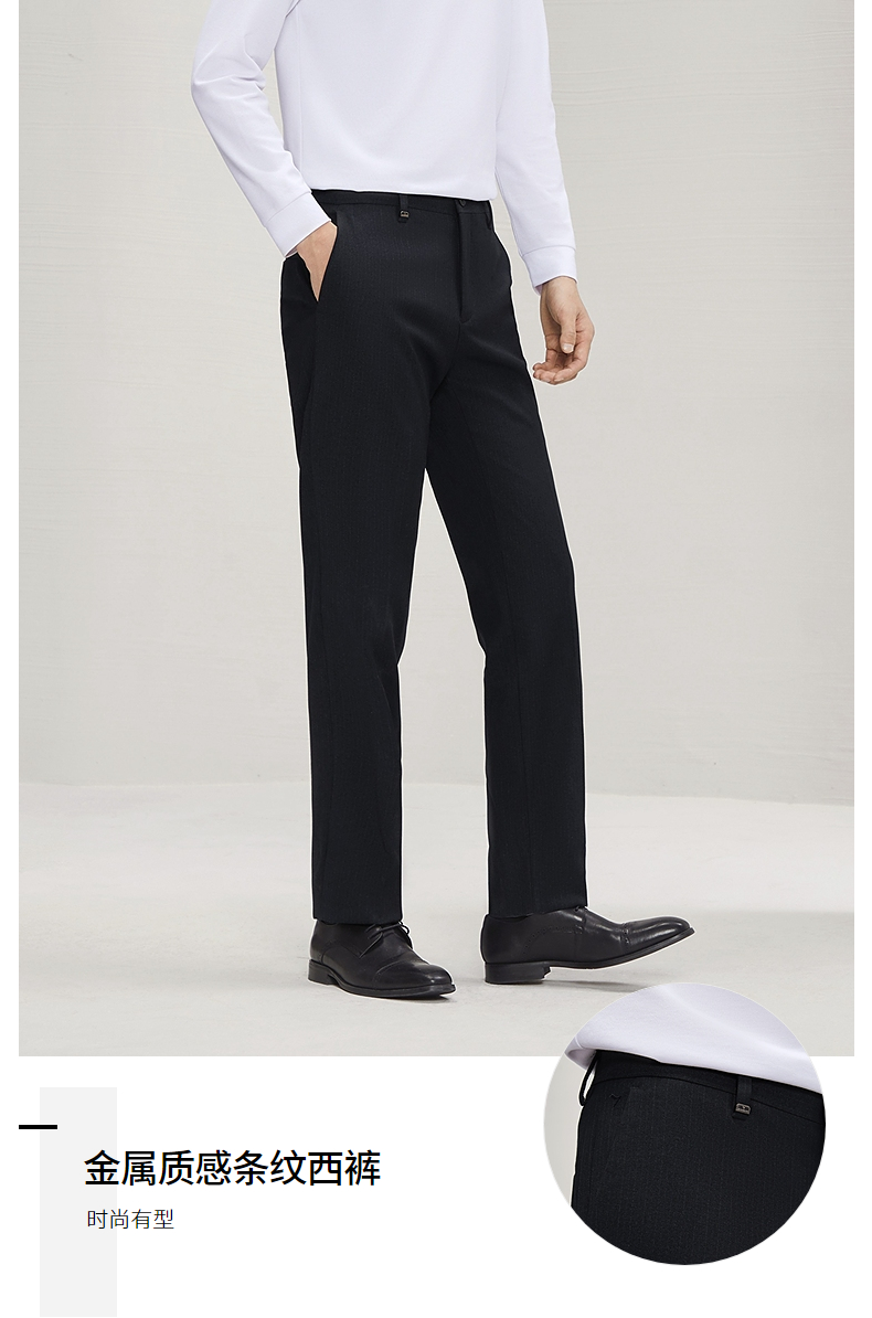 【金属质感条纹】柒牌男装西裤男2025秋季新款商务休闲中腰直筒裤 127H71740