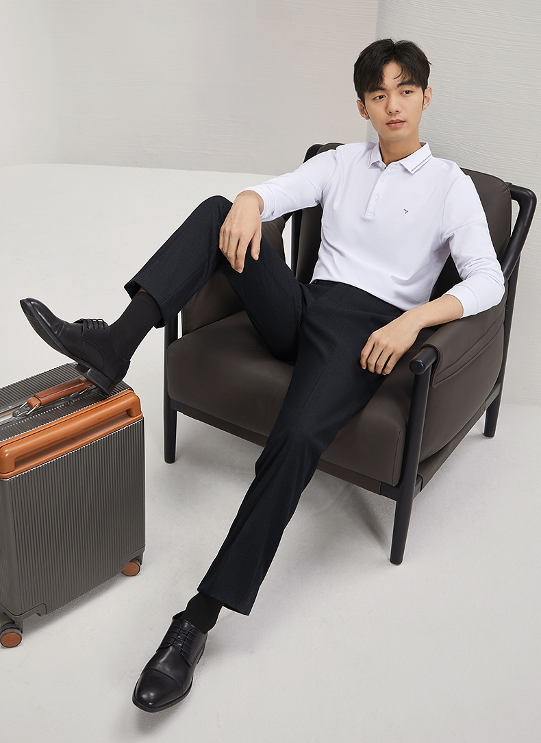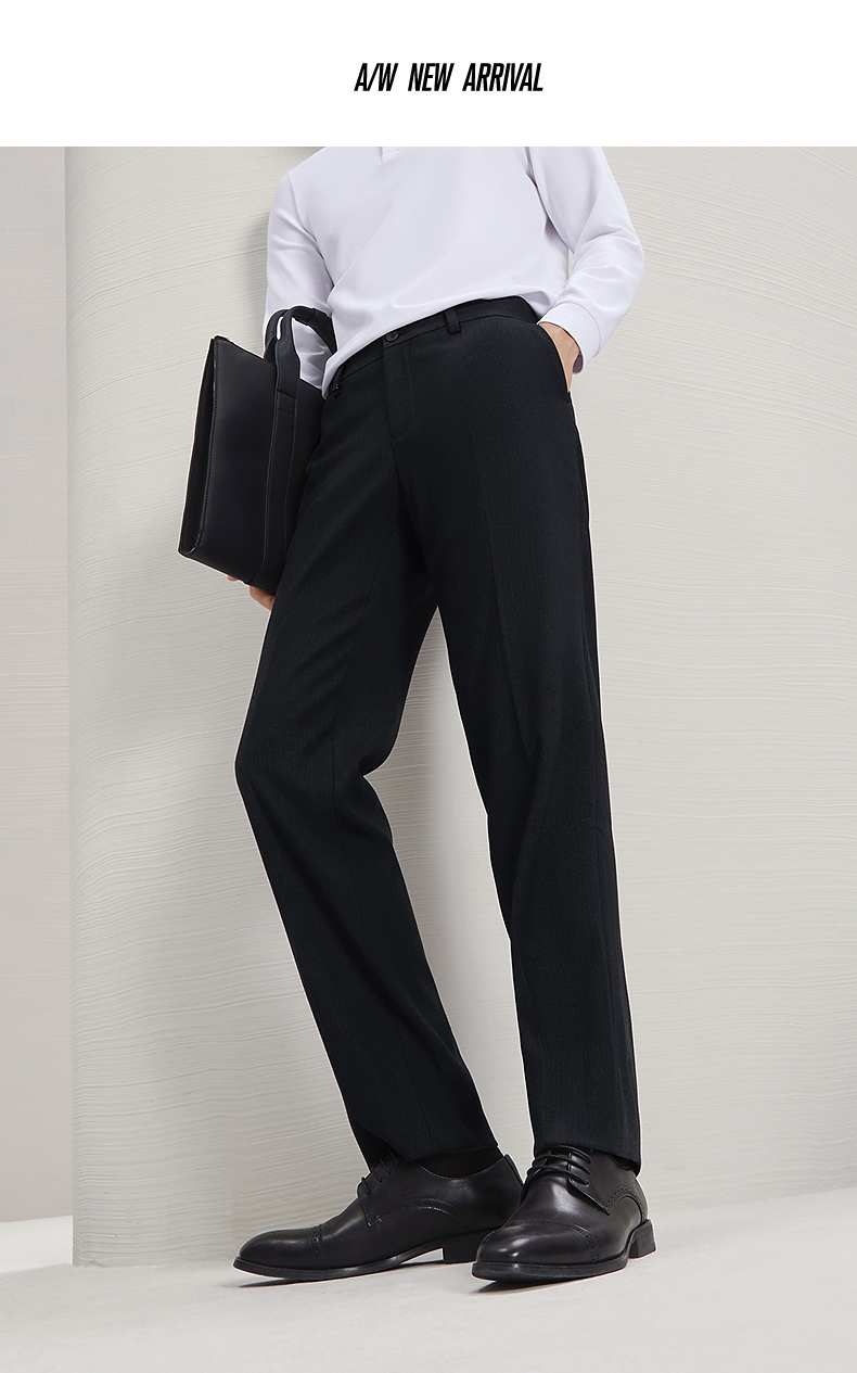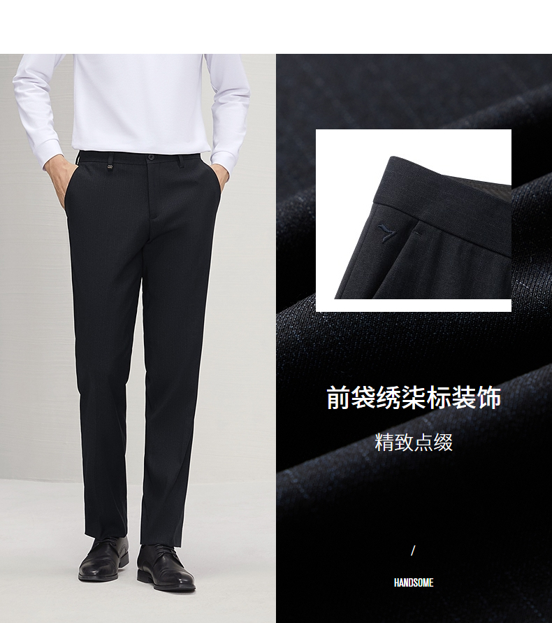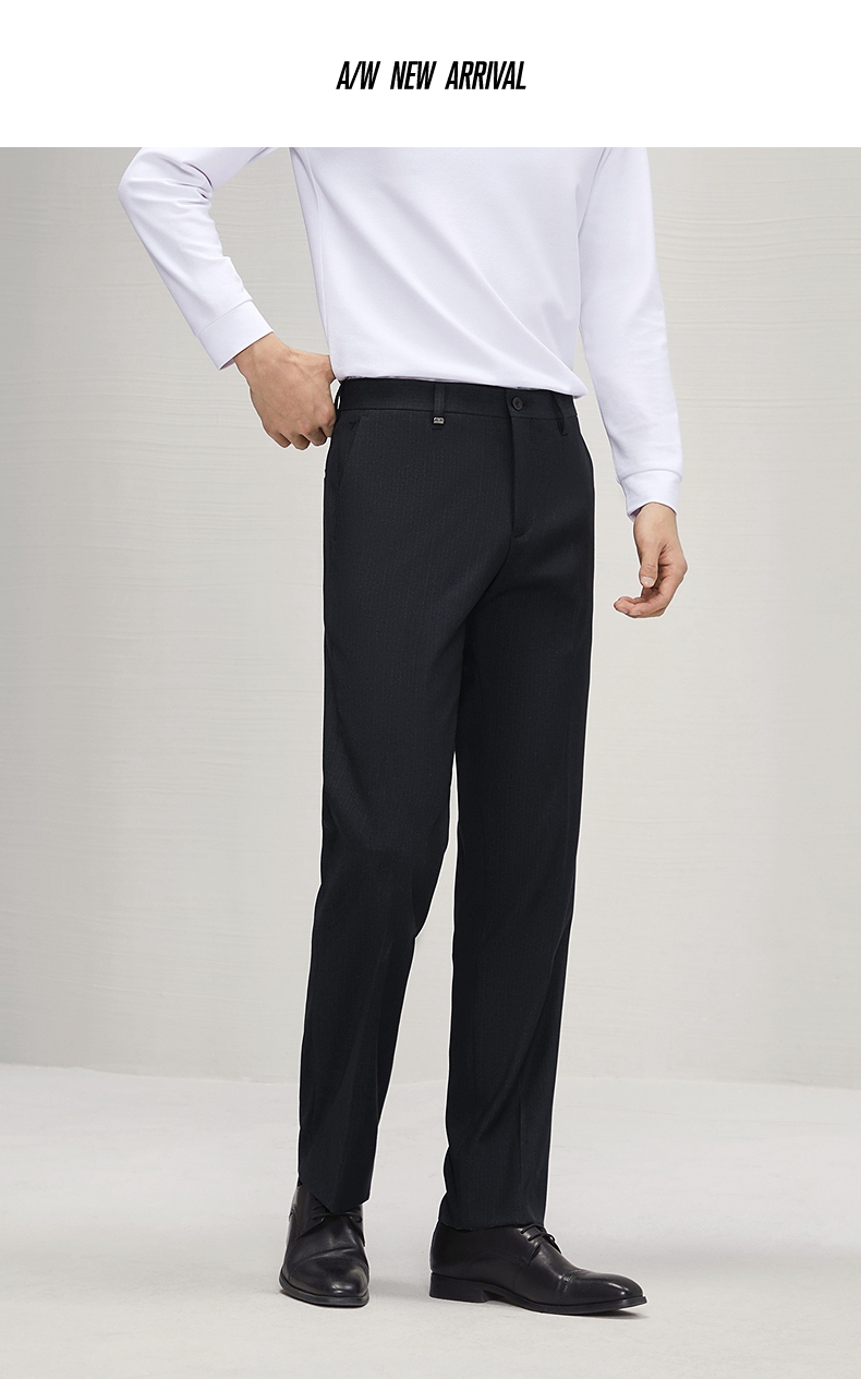 【金属质感条纹】柒牌男装西裤男2025秋季新款商务休闲中腰直筒裤 127H71740