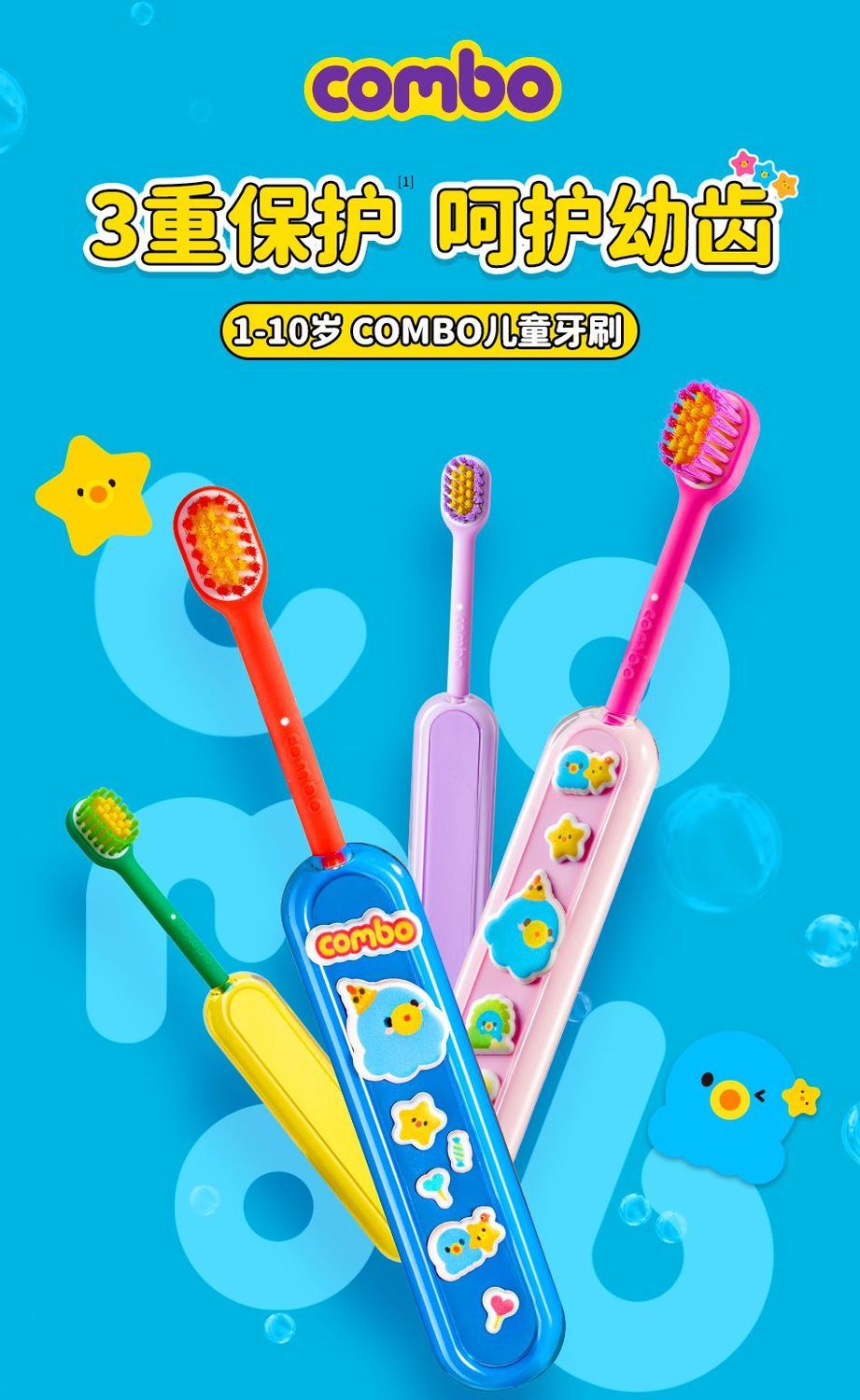 combo儿童软毛牙刷宝宝3-12岁训练护齿含氟