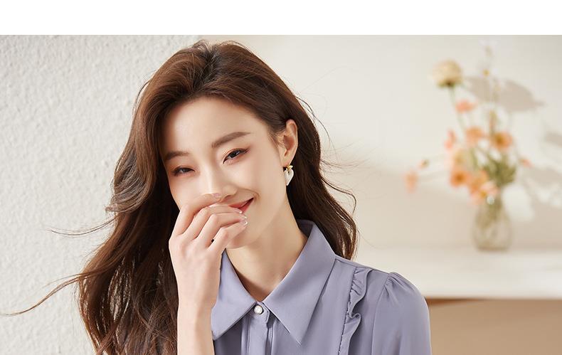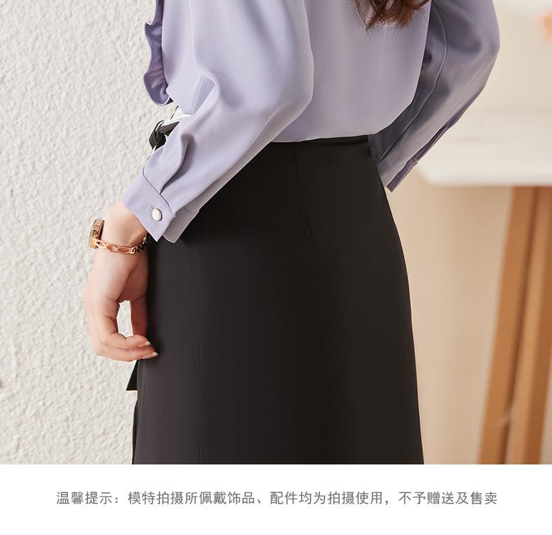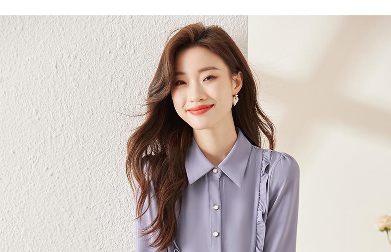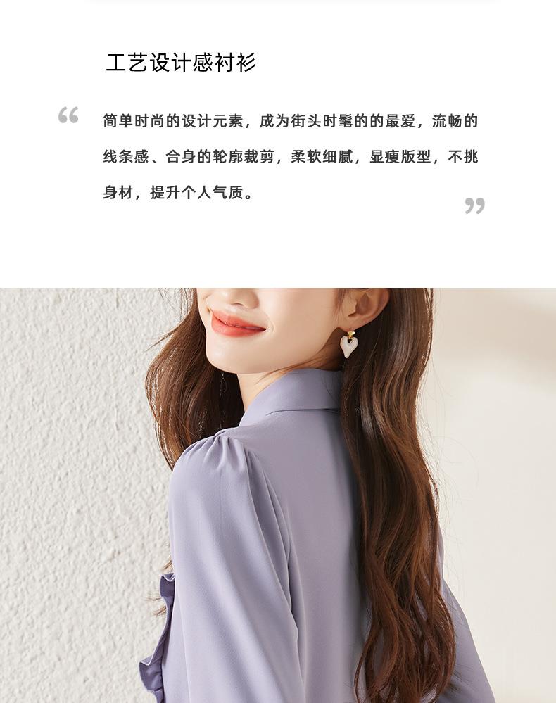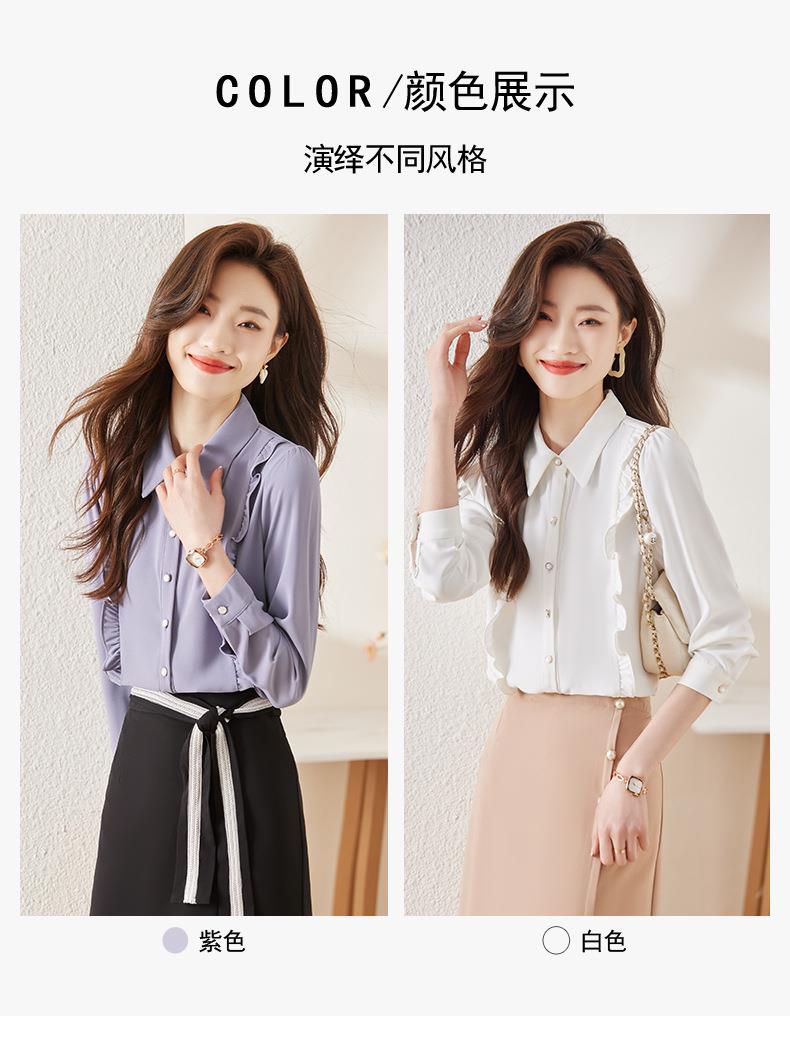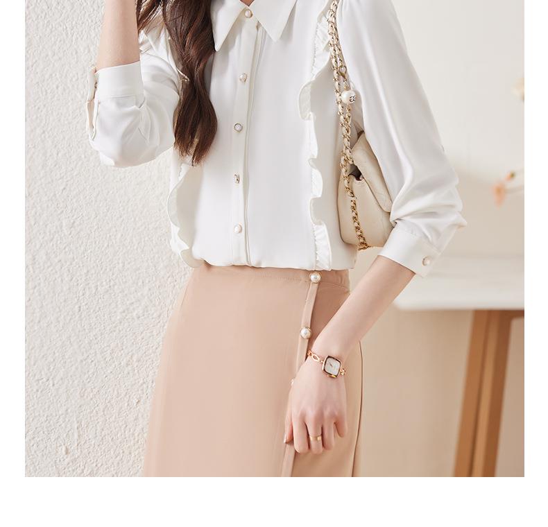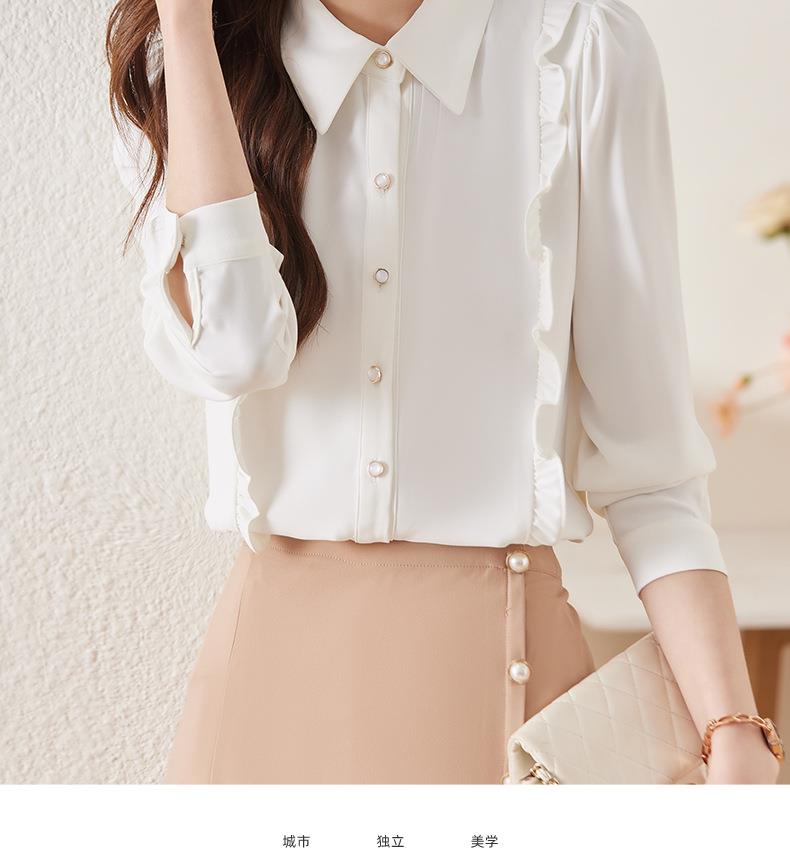 娜璐多 时尚减龄木耳边长袖衬衫女早秋2023百搭OL设计内搭打底通勤白衬衣