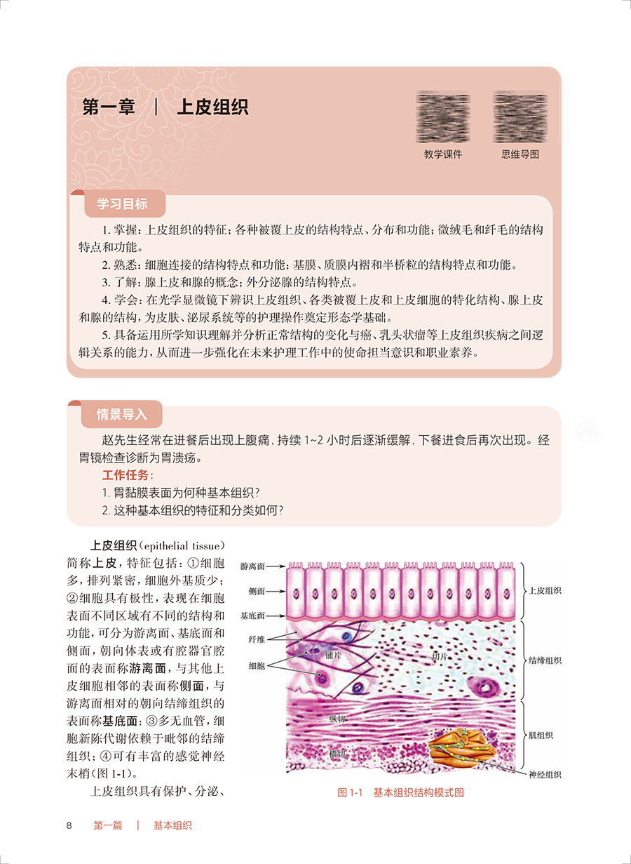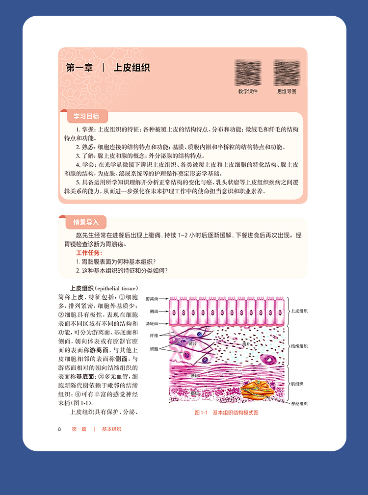 此为国家卫生健康委员会“十四五”高等职业教育专科护理类专业规划教材之一。本教材包括人体解剖学、组织学和胚胎学3部分内容,本教材既要通盘考虑《正常人体结构》内容的系统性与知识的完整性,又要兼顾学科分支的特点;既要考虑如何利于学生的学习与记忆,又要兼顾教师教学的方便。教材共设7篇(基本组织、运动系统、内脏学、脉管系统、感觉器官、神经系统和内分泌系统、人体胚胎发生),分为25章;每一章均设置学习目标、导入情景、知识拓展、思考题以及数字资源,以便学生更好地掌握知识要点。
