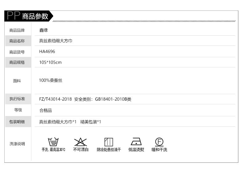 鑫缘 真丝双层素绉缎长巾 HA4692