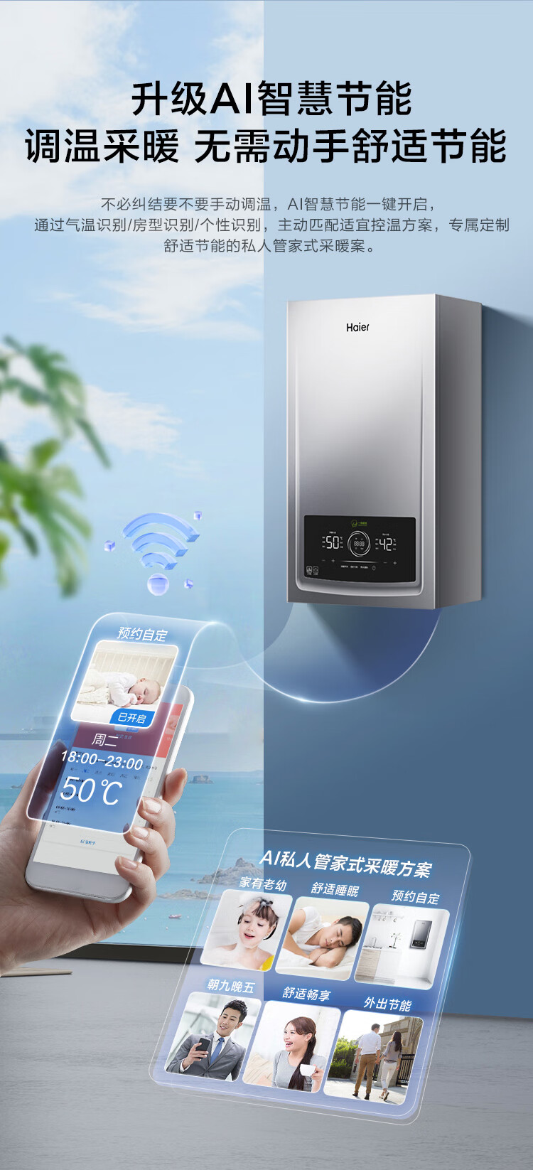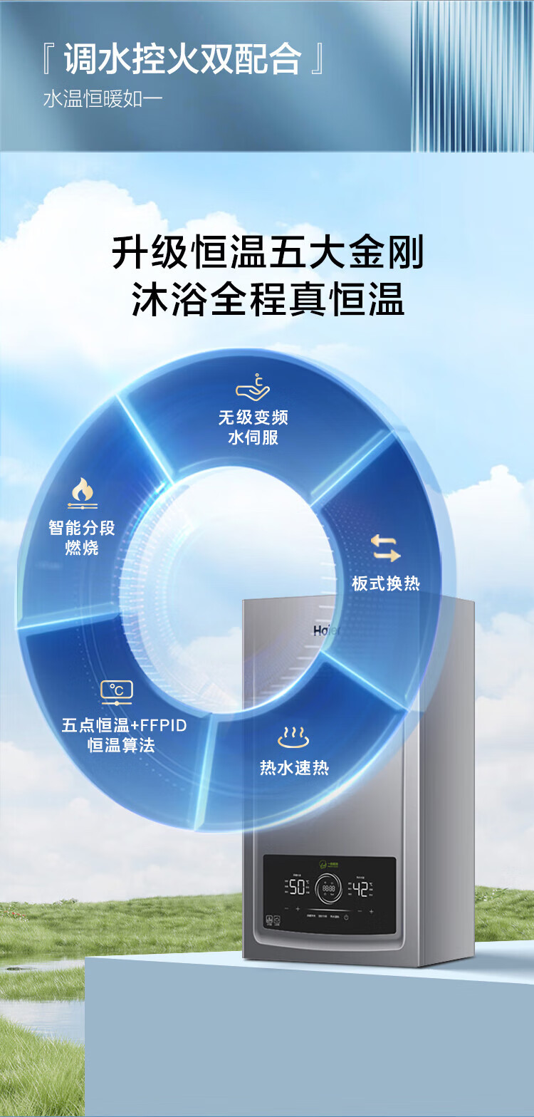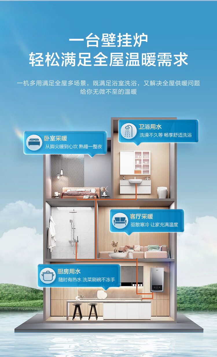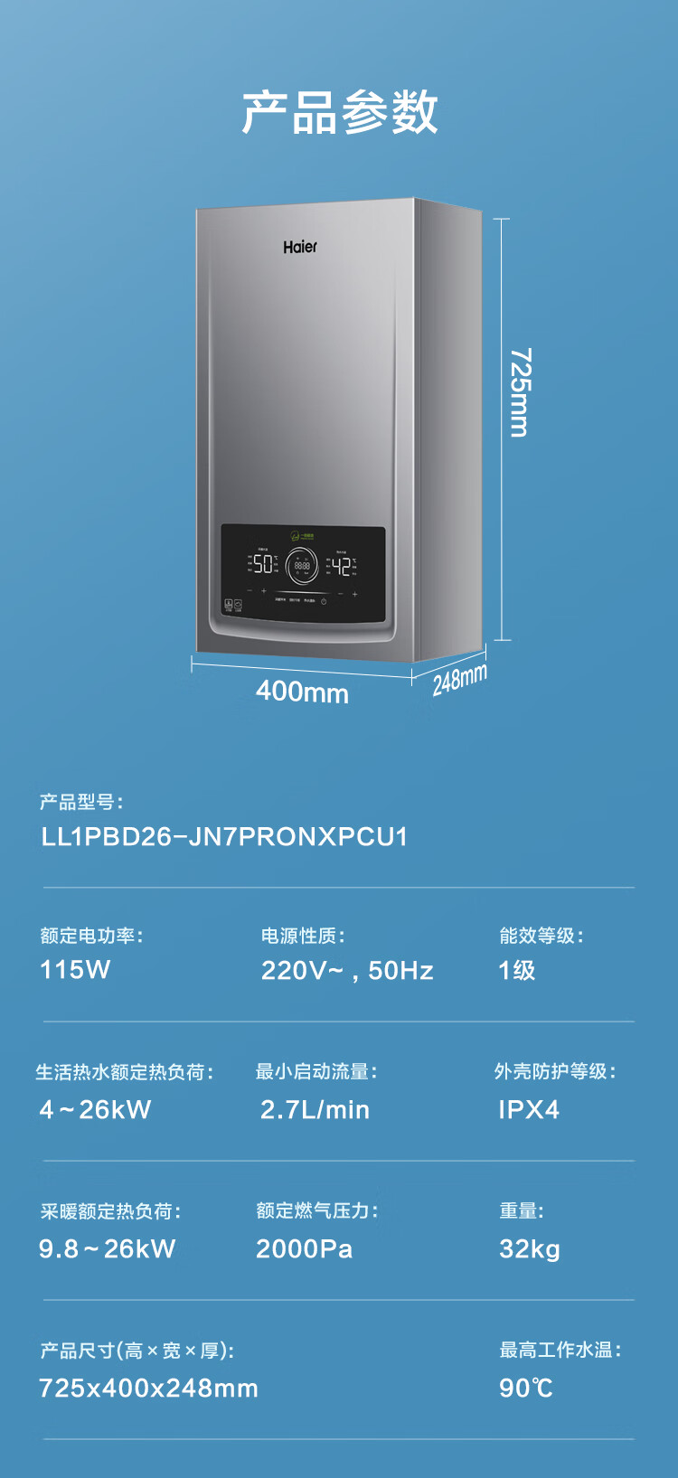 海尔(Haier)三变频超一级能效冷凝无级变频水伺服水气双调燃气壁挂炉天然气静音采暖炉热水器LL1PBD26-JN7PRO