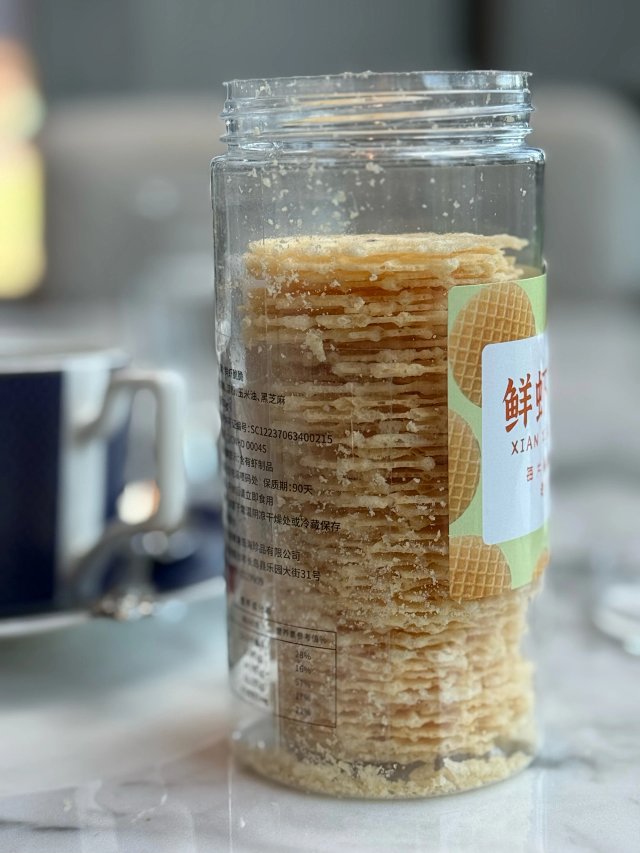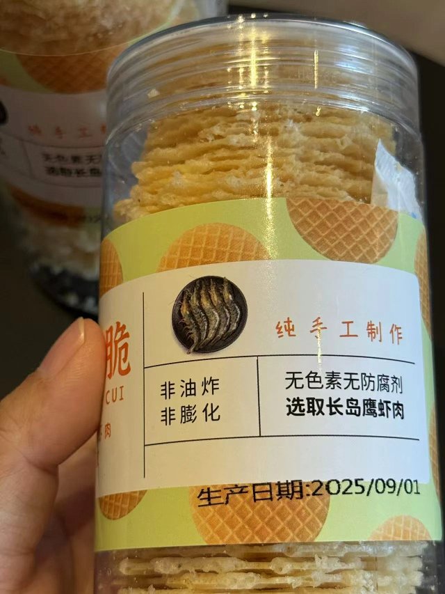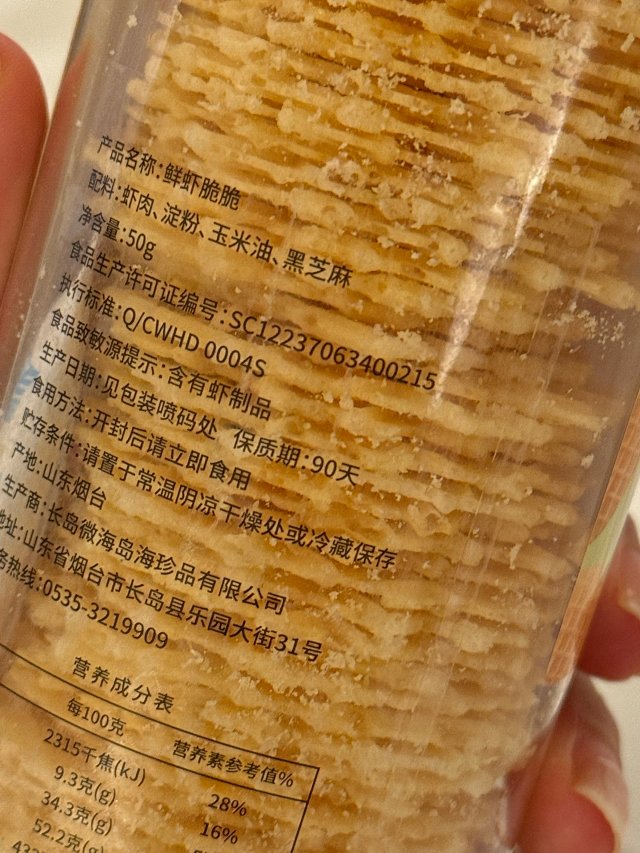 仅含:虾肉、淀粉、玉米油、芝麻。
