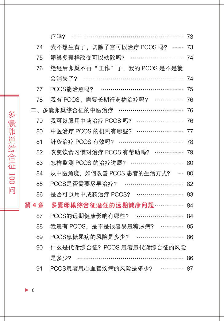 本书是一本由妇产科专家撰写的针对多囊卵巢综合征患病人群的科普书籍,书中罗列了多囊卵巢综合征患者关心的100个问题,从多囊卵巢综合征的临床特征、病因、遗传、诊断、检查、治疗及长期管理方面分层次进行解答,同时讲解了多囊卵巢综合征的中医治疗。本书科学、实用、严谨。年轻的妇产科医师、护士及非妇产科专业的医护人员,通过本书可清楚地了解这些问题所包含的专业知识,不仅有利于日常工作的开展,也有利于与患者及其家属的沟通,还能更好地为大众提供通俗易懂的专业咨询和卫生保健知识。