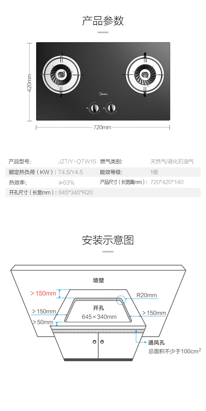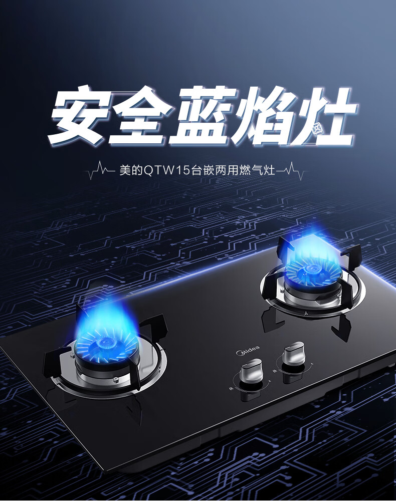 美的(Midea) 台嵌两用双眼灶 玻璃面板 4.5KW火力 JZT-QTW15(天然气)