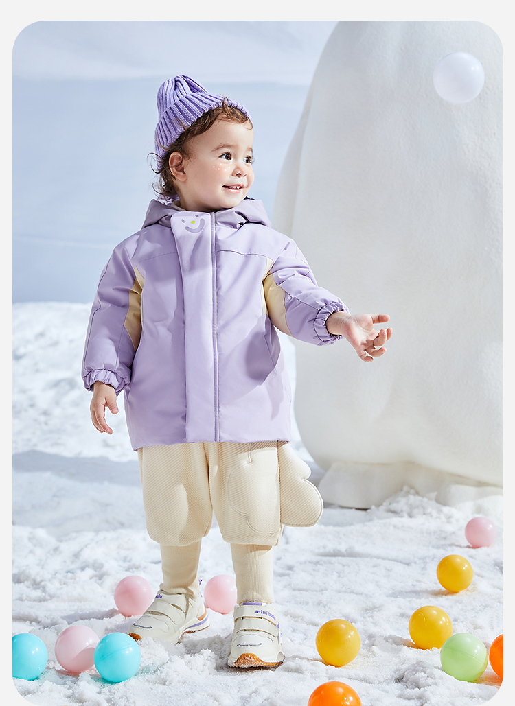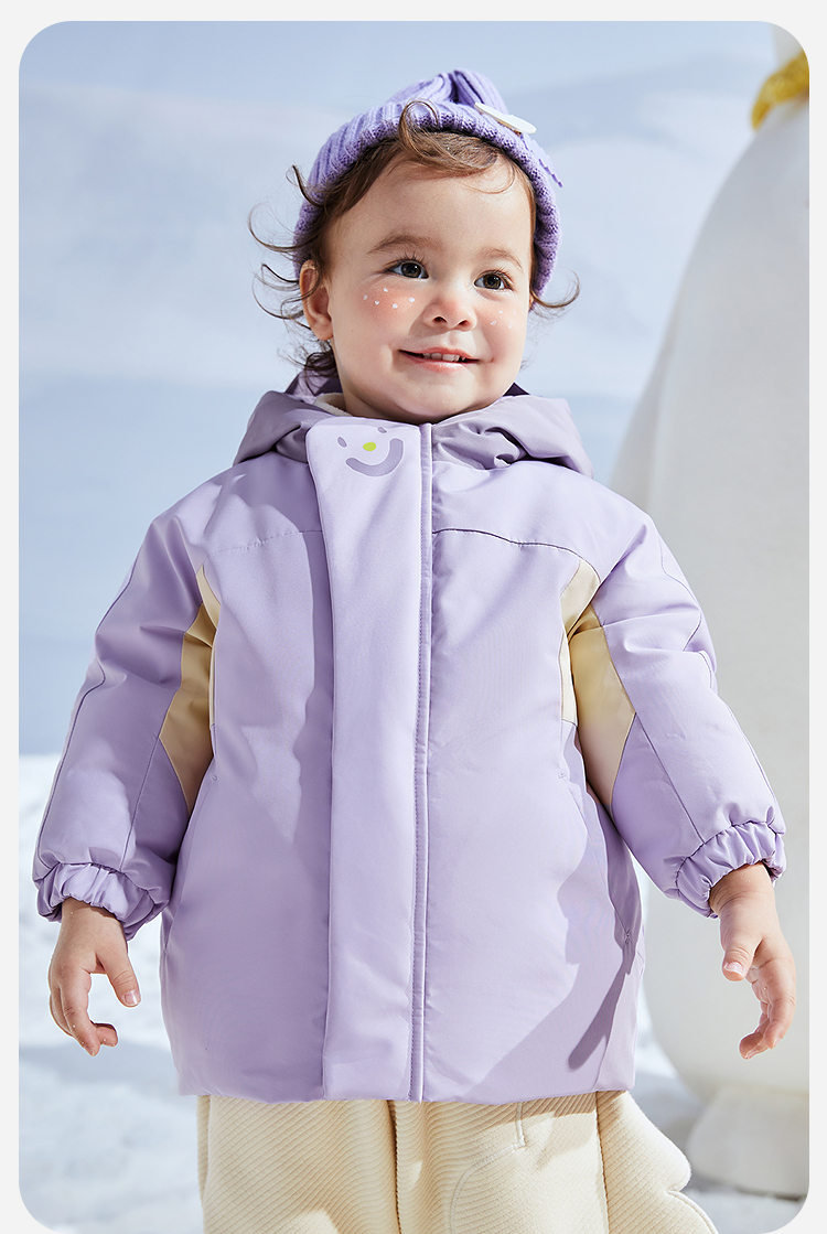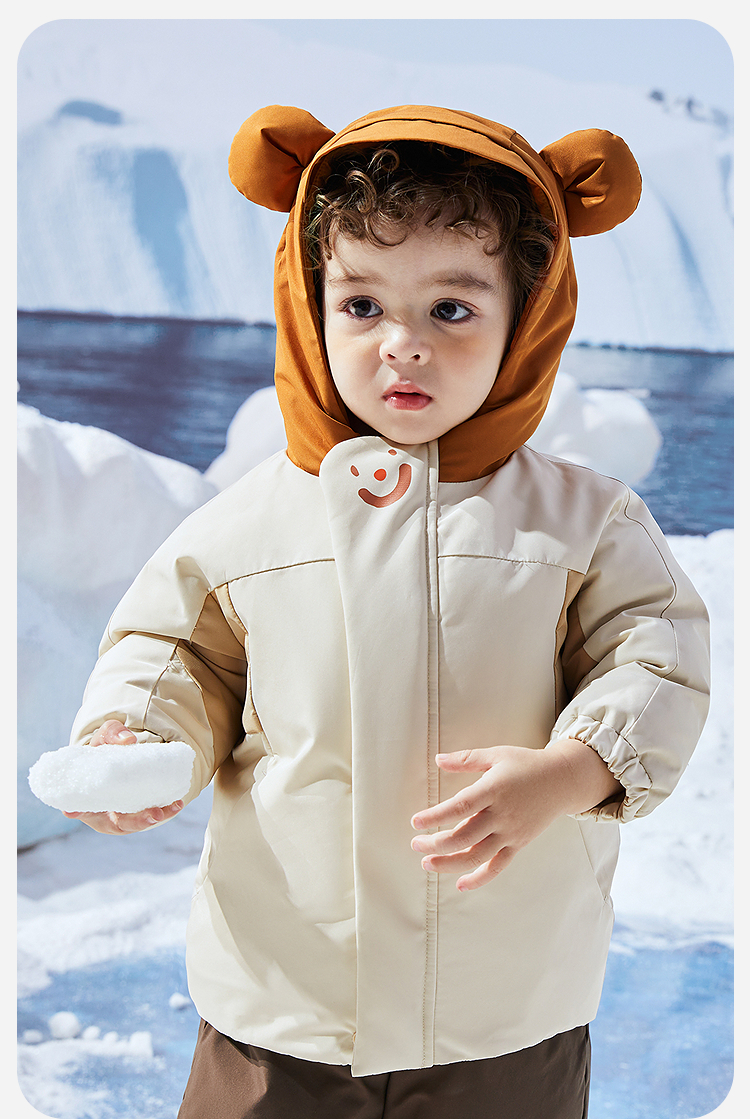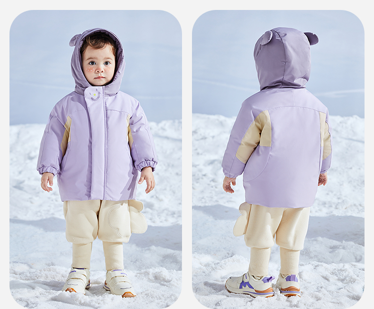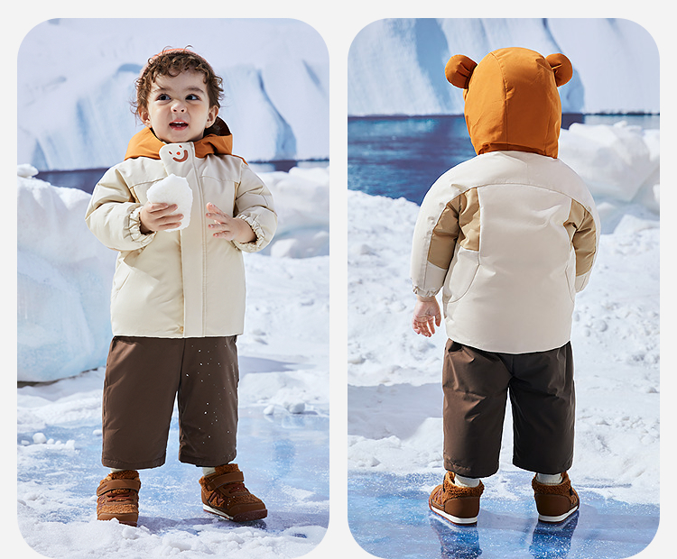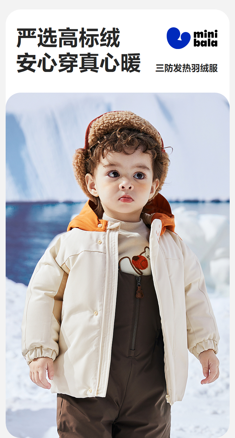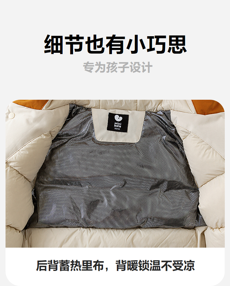 迷你巴拉三防发热男女童防风雪拒油污后背蓄热里布连帽羽绒服冬新