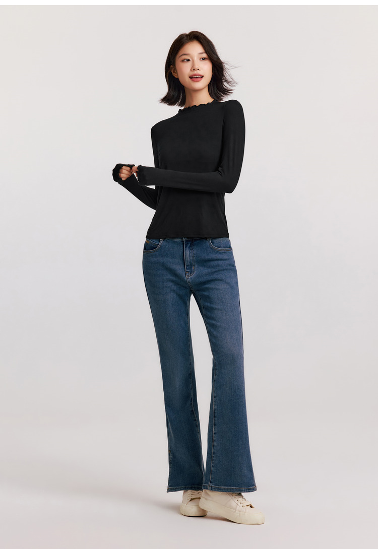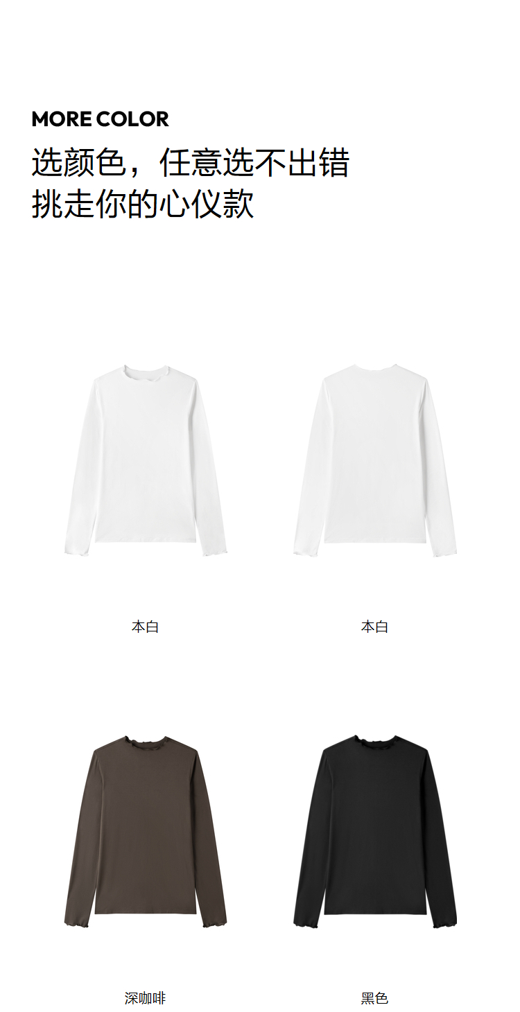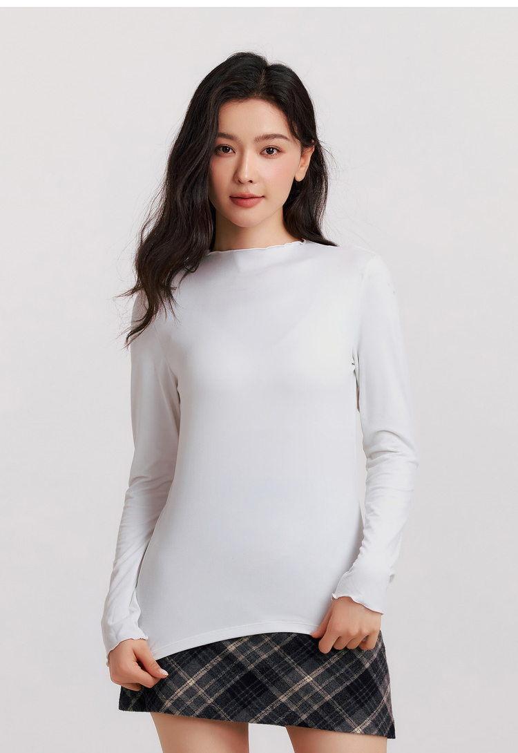 森马打底衫女发热抑菌保暖内衣修身纯色百搭上衣荷叶边内搭甜美
