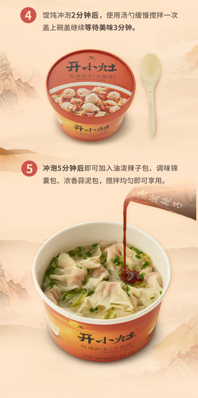 开小灶 鸡汤小馄饨/红油抄手 78g/碗