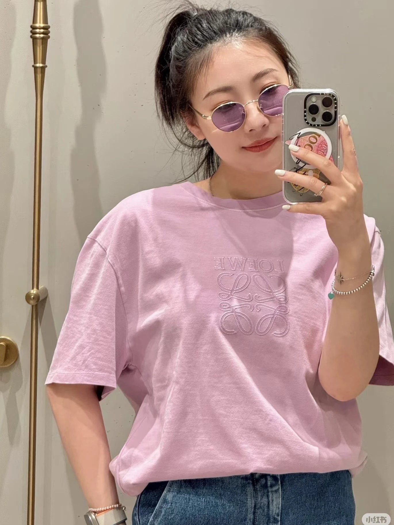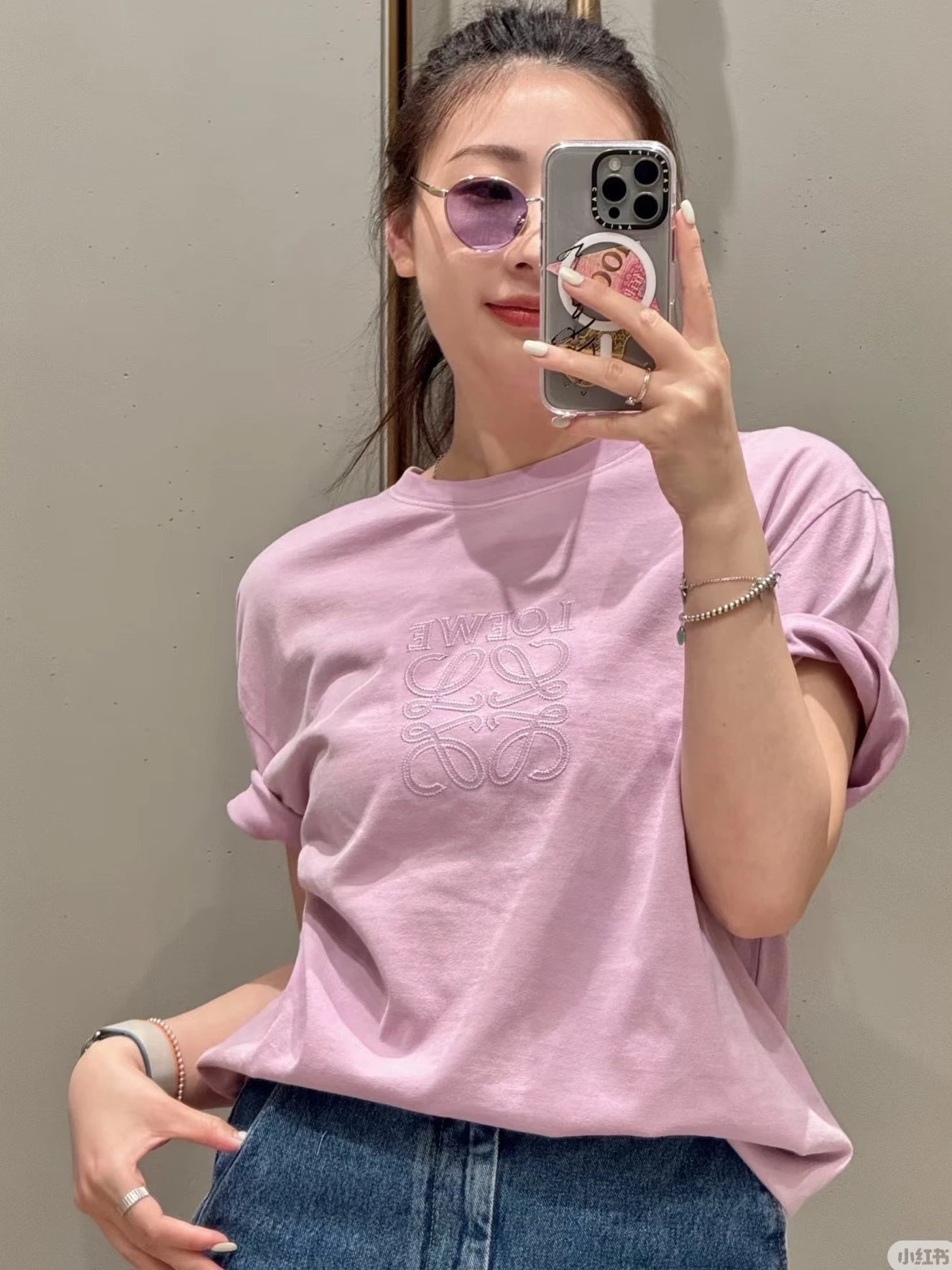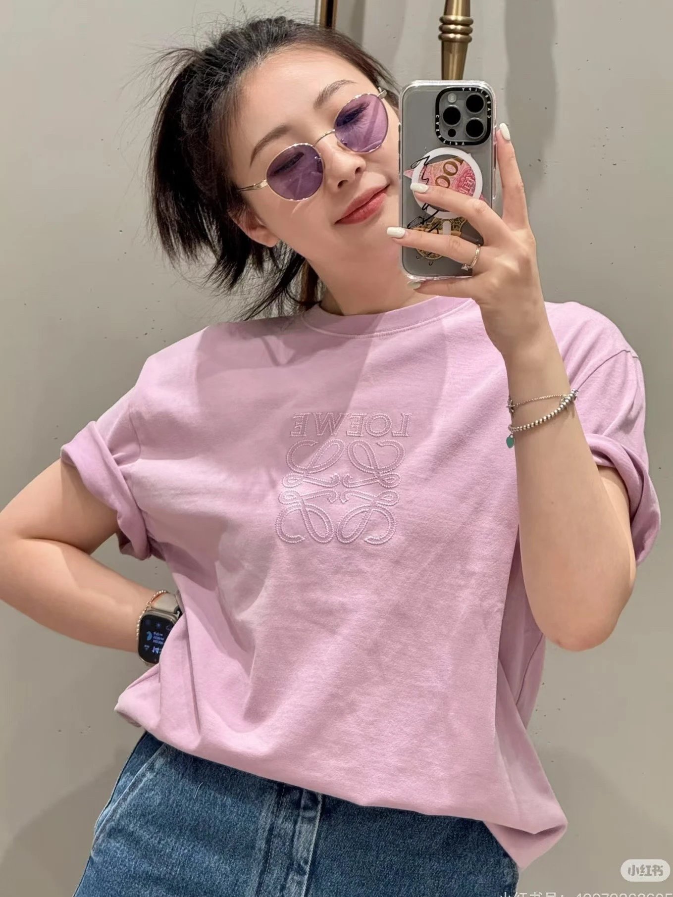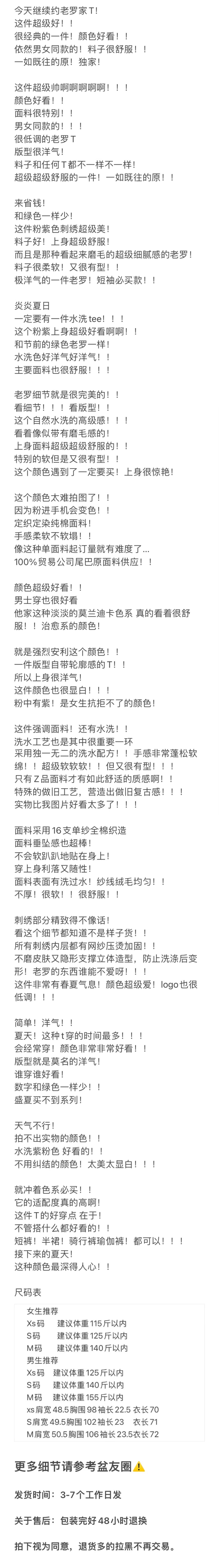 重磅渠道 老罗粉紫短袖 宽松版型 男女同款 做旧水洗!
