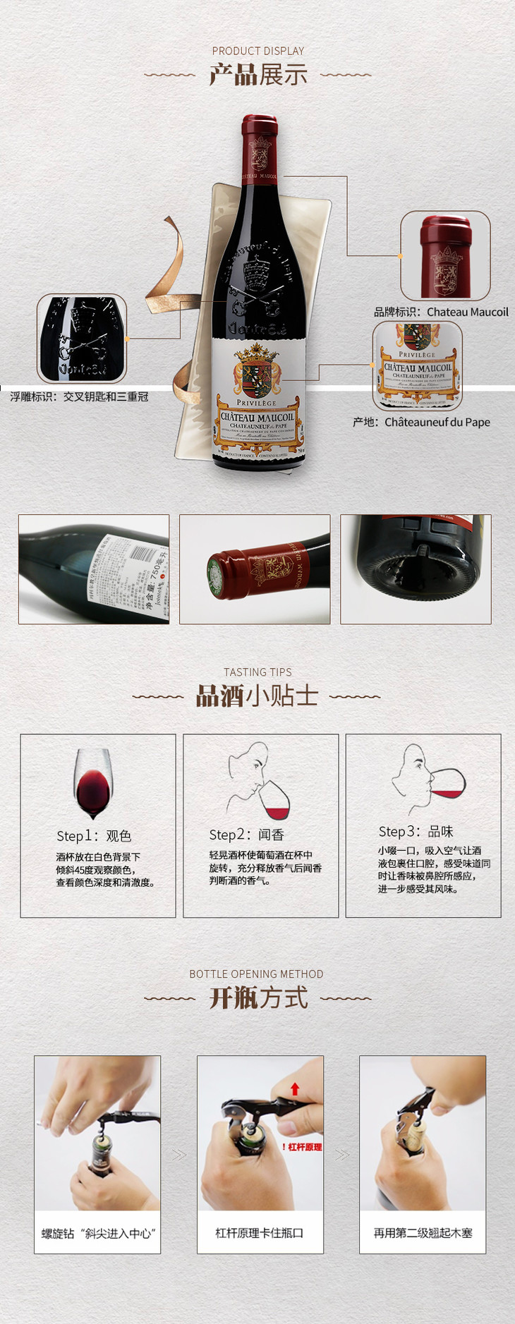 玛科尔教皇新堡甄选红葡萄酒 Chateau Maucoil Chateauneuf du Pape Privilege