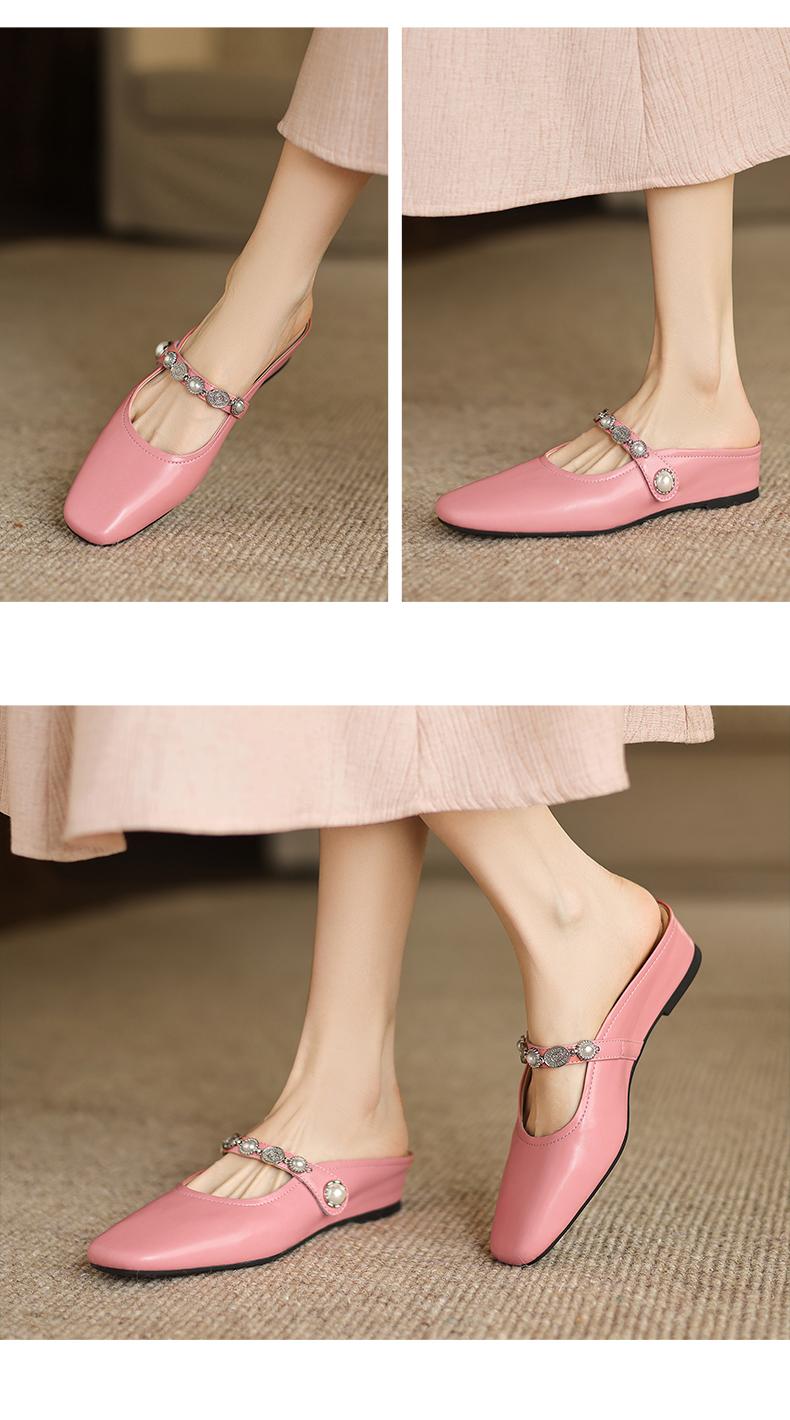 银色包头拖配裙子夏季外穿气质真皮穆勒半拖百搭4CM 商品图3