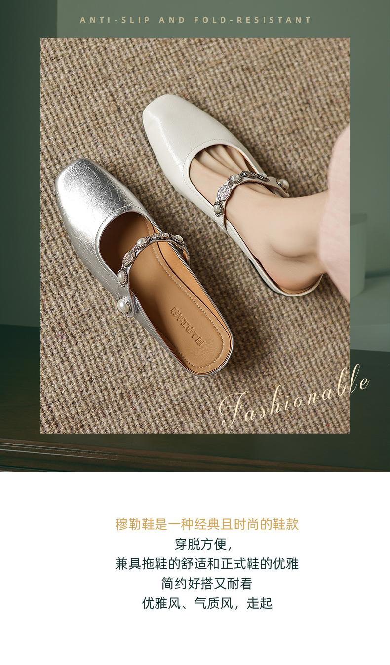 银色包头拖配裙子夏季外穿气质真皮穆勒半拖百搭4CM 商品图2