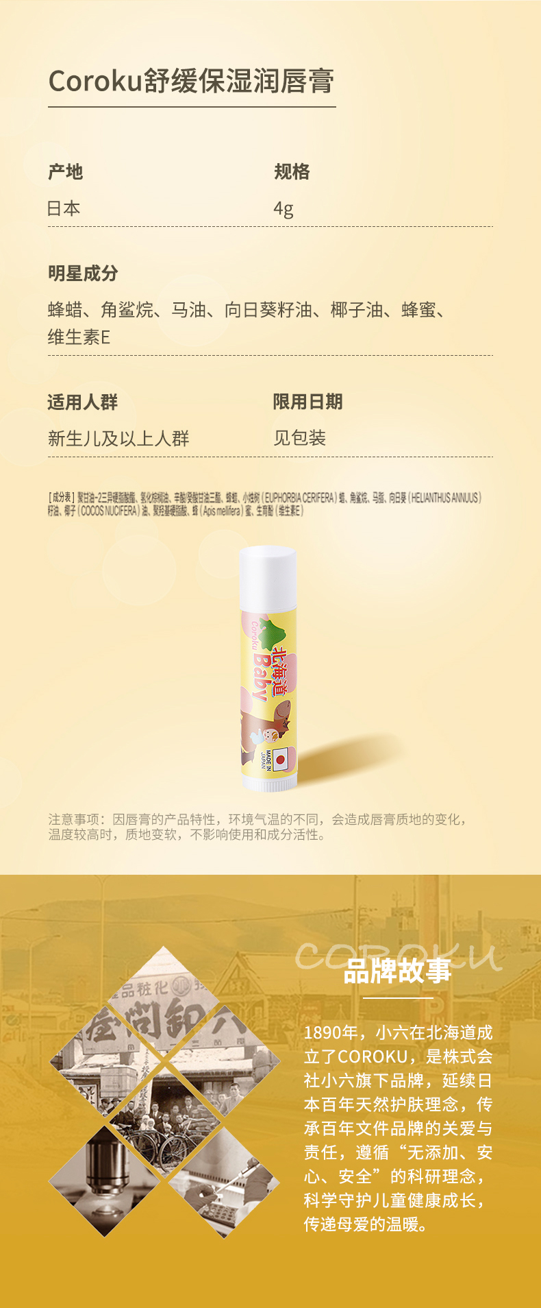 北海道小六宝宝舒缓保湿润唇膏/4g (包邮直发)