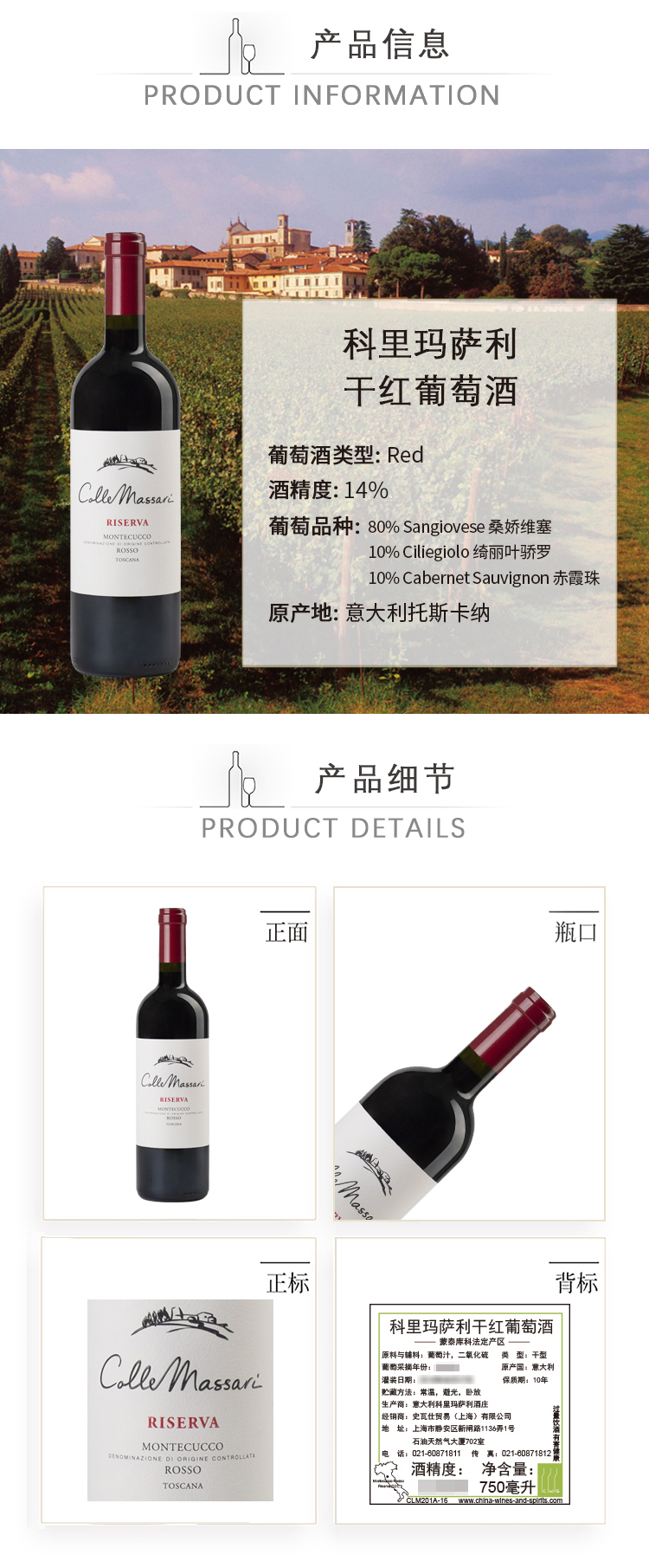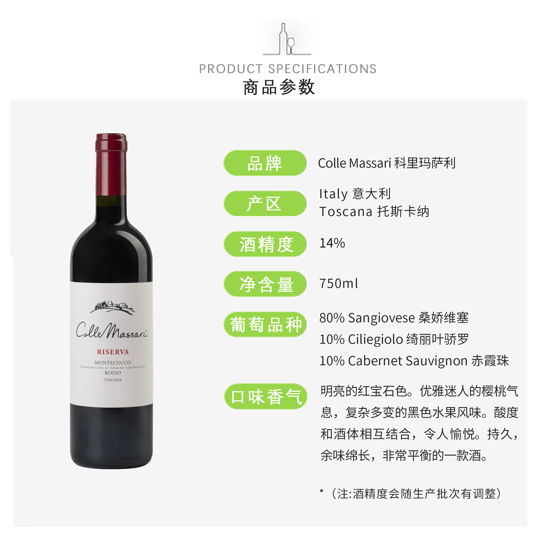 【8折】Colle Massari Montecucco Rosso Riserva 科里玛萨利干红葡萄酒
