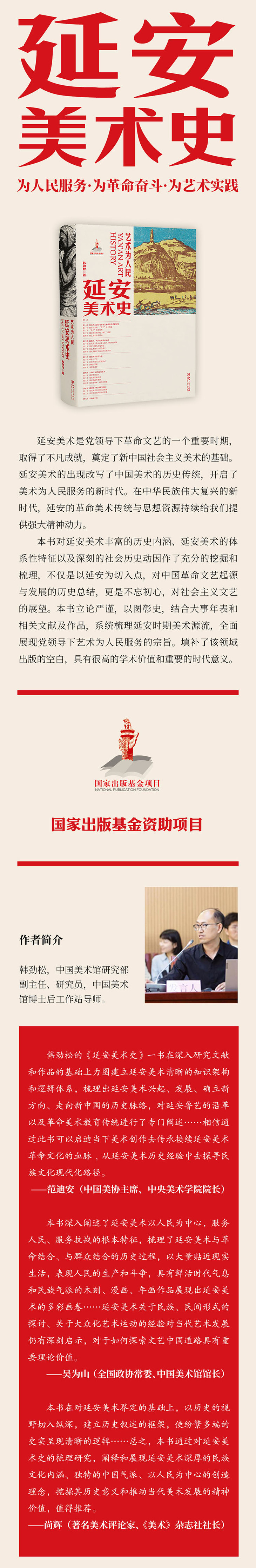 本书对延安美术丰富的历史内涵、延安美术的体系性特征以及深刻的社会历史动因作了充分的挖掘和梳理,不仅是以延安为切入点,对中国革命文艺起源与发展的历史总结,更是不忘初心,对社会主义文艺的展望。本书立论严谨,以图彰史,结合大事年表和相关文献及作品,系统梳理延安时期美术源流,全面展现党领导下艺术为人民服务的宗旨。填补了该领域出版的空白,具有很高的学术价值和重要的时代意义。