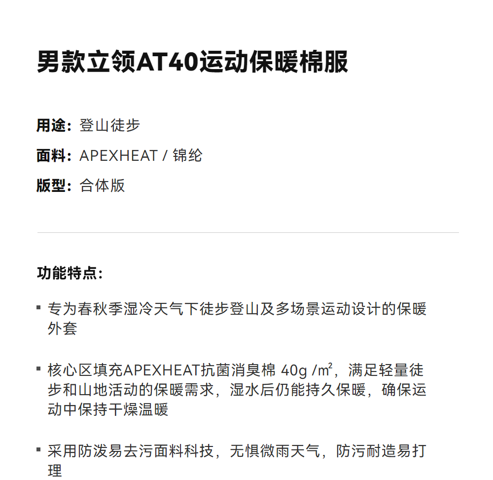 KAILAS凯乐石 男款立领AT40运动保暖棉服 KG2530106