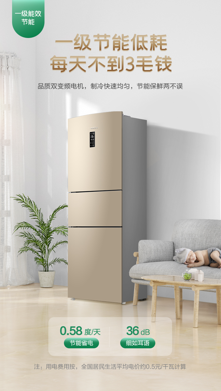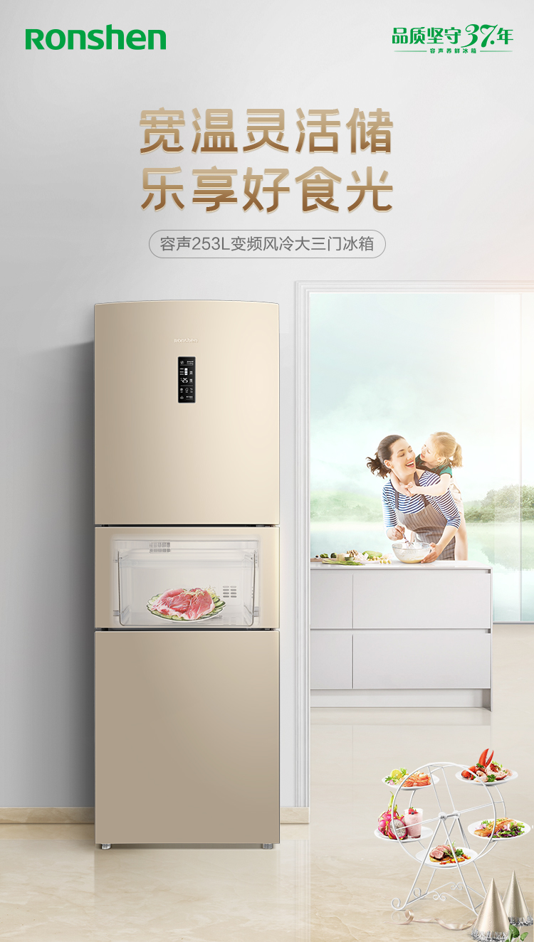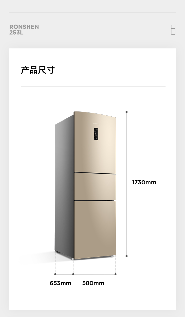 【下单前请先联系客服】容声(Ronshen)253升BCD-253WD16NPA变频一级能效三门小冰箱家用小型风冷无霜中门宽幅变温