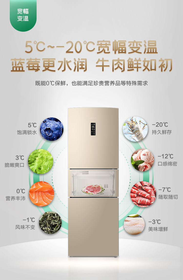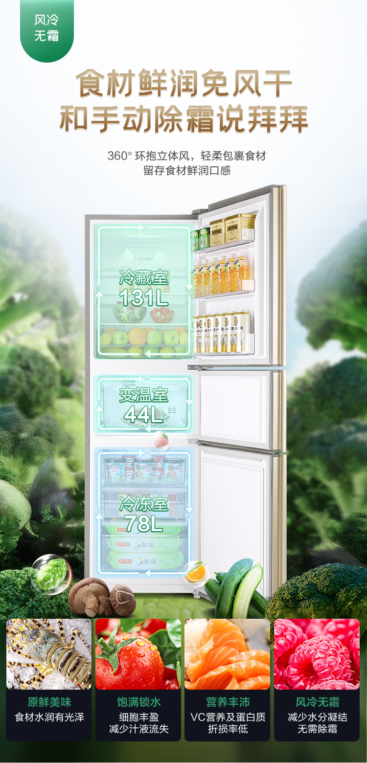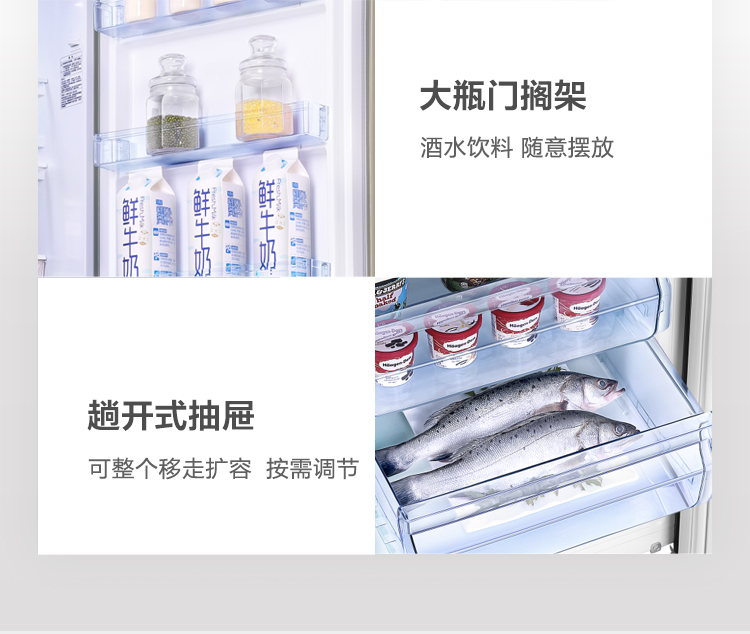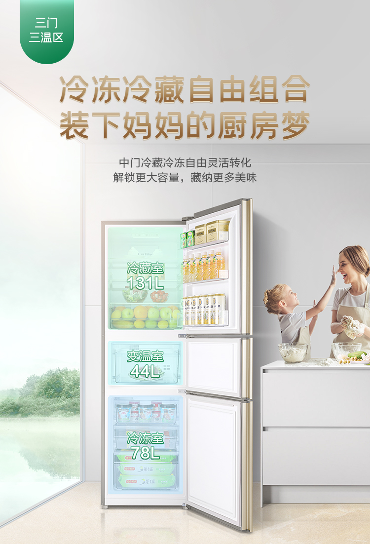 【下单前请先联系客服】容声(Ronshen)253升BCD-253WD16NPA变频一级能效三门小冰箱家用小型风冷无霜中门宽幅变温