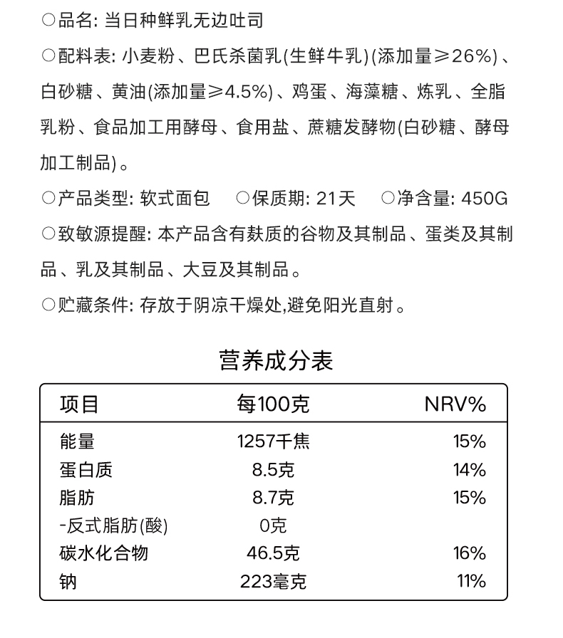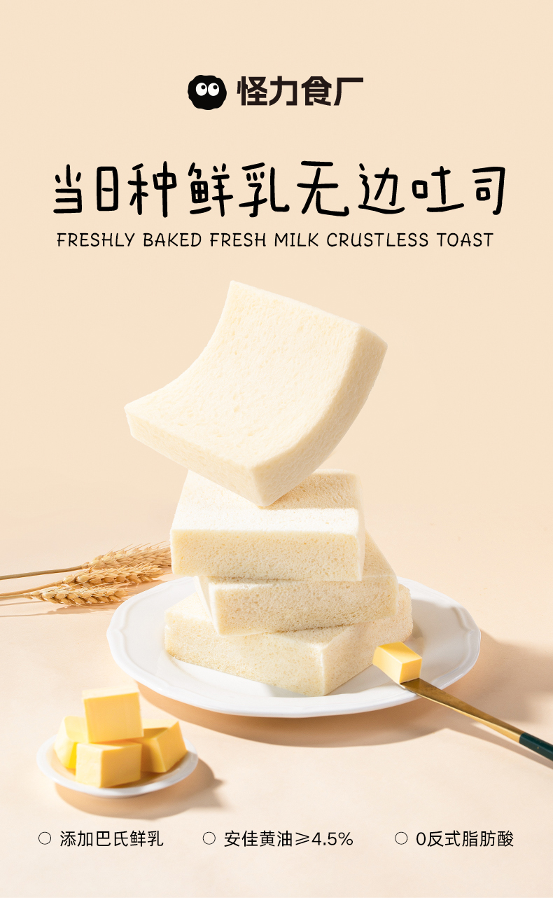 怪力食厂 当日种鲜乳无边吐司450g/箱