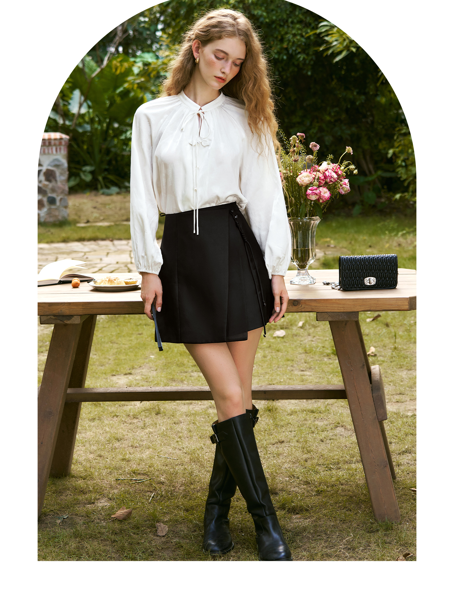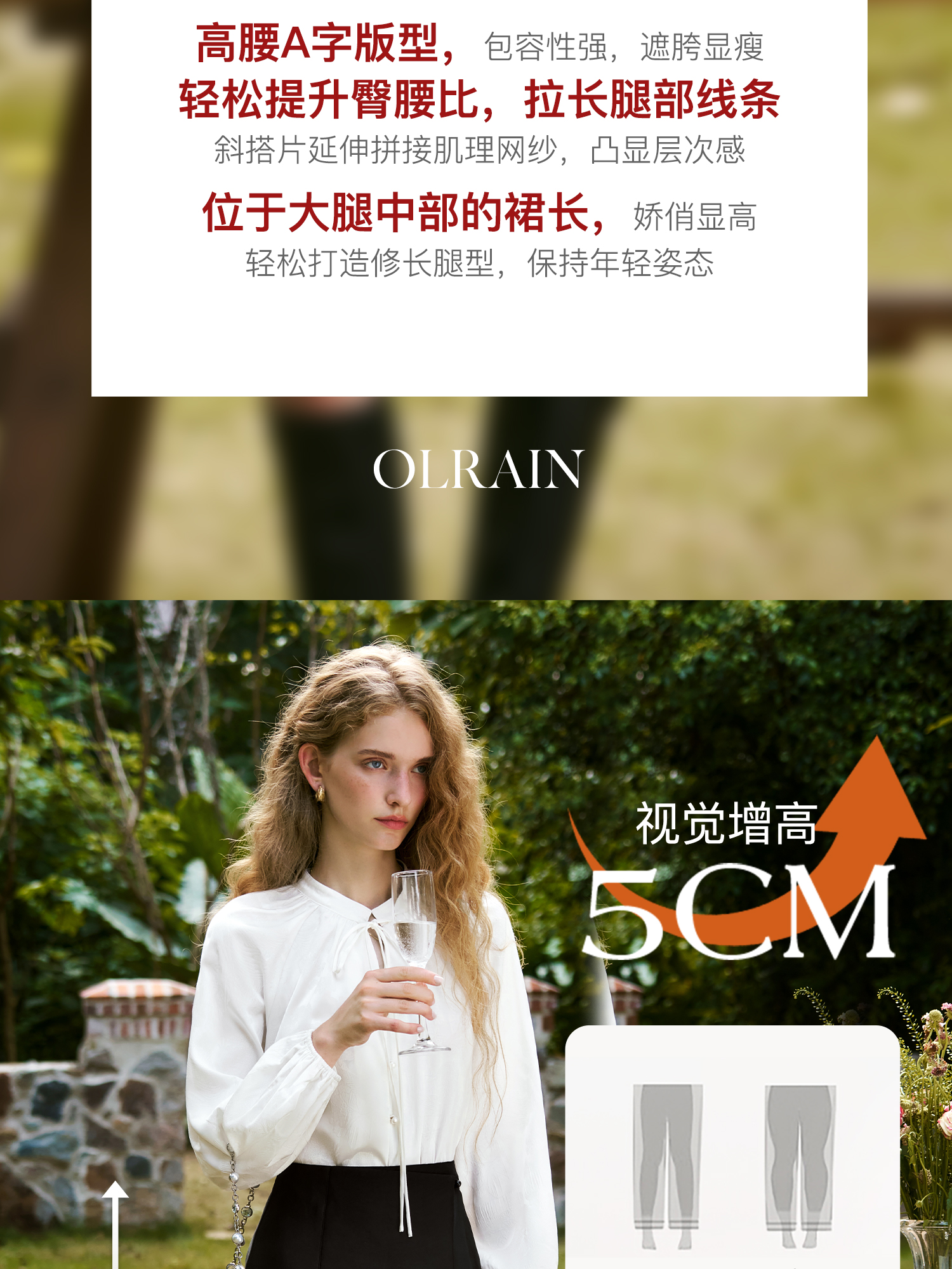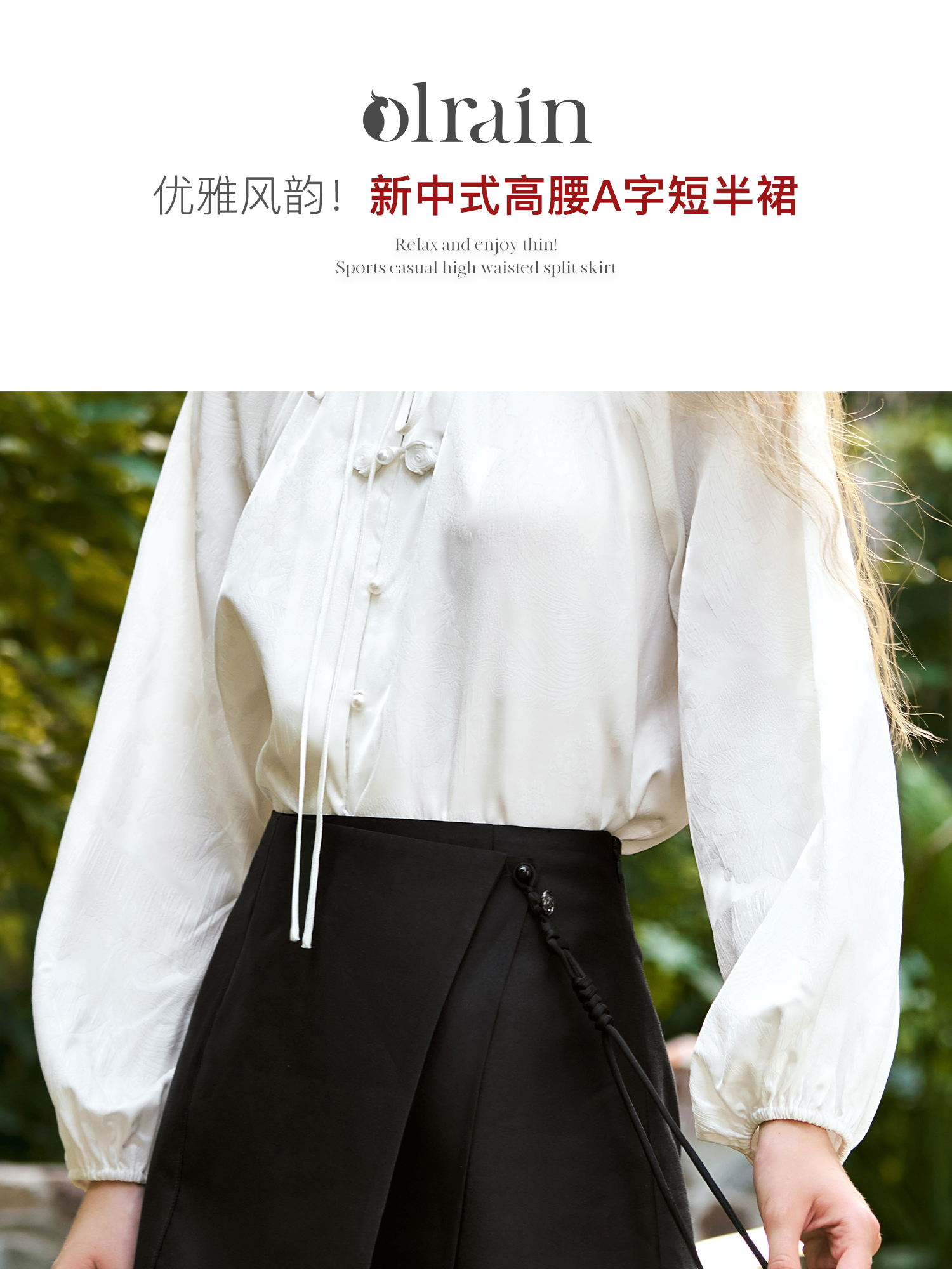 OLrain欧芮儿新中式半身裙女秋季2024年新款高腰遮胯防走光a字裙