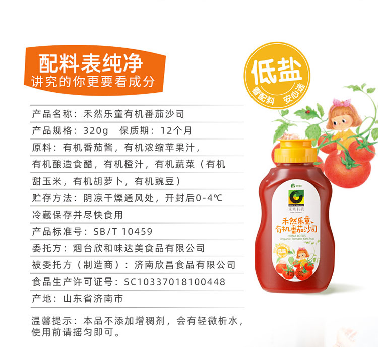 丨有机丨禾然乐童有机番茄沙司 专为乐童研发;酸甜清新柔和;可点蘸,炒菜,做汤,调制西式酱汁等