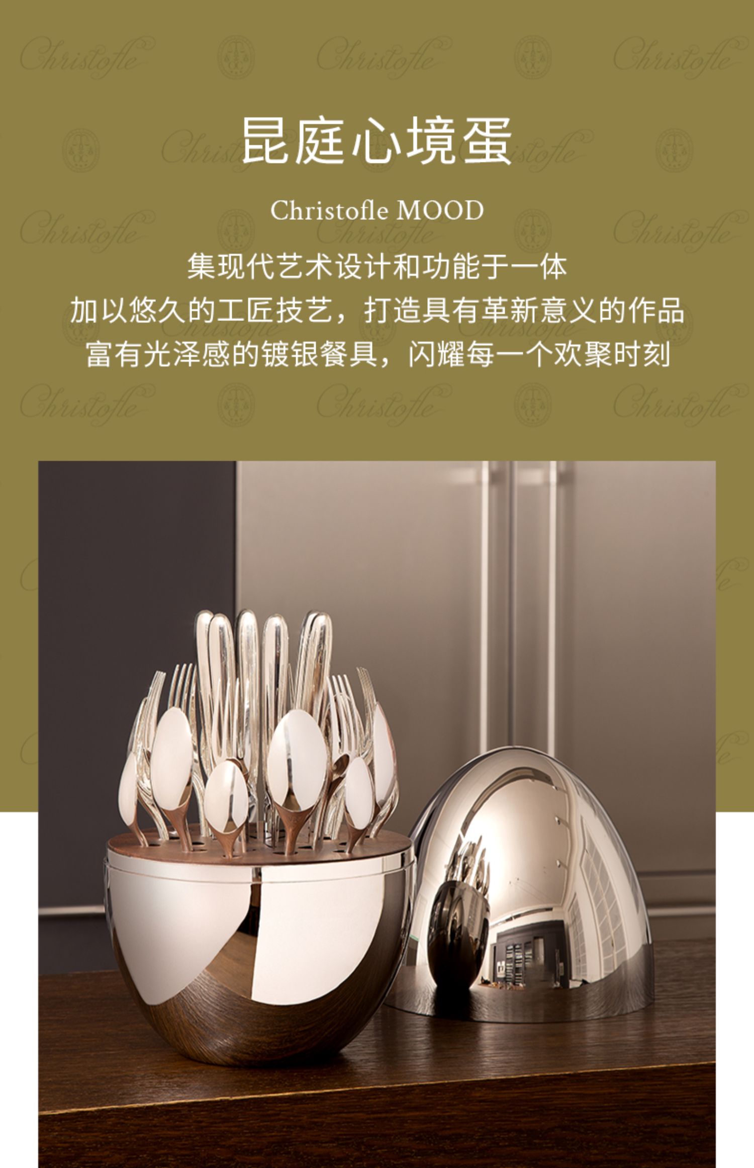 CHRISTOFLE MOOD昆庭心境蛋镀银24件西餐正餐餐具刀叉勺