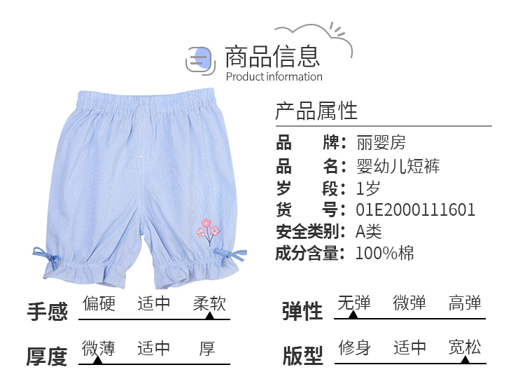 丽婴房-童衣类(夏)E1短裤\裤裙浅蓝 商品图2