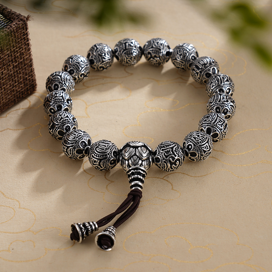 子佩集S999银【梦幻成真】手串【YH08201002-1】纯银仿古12mm手链2409
