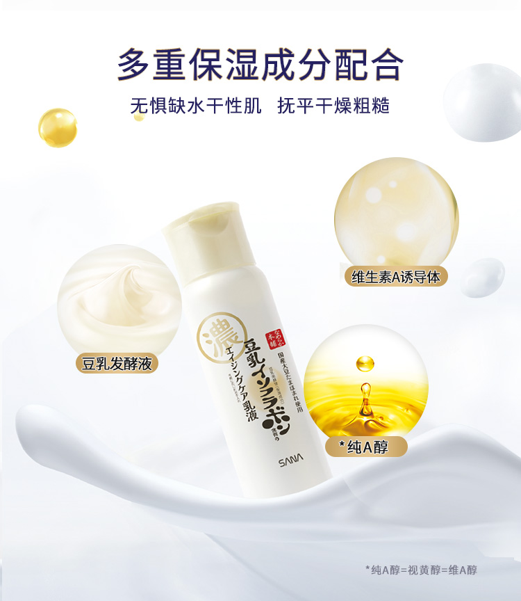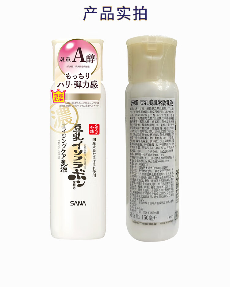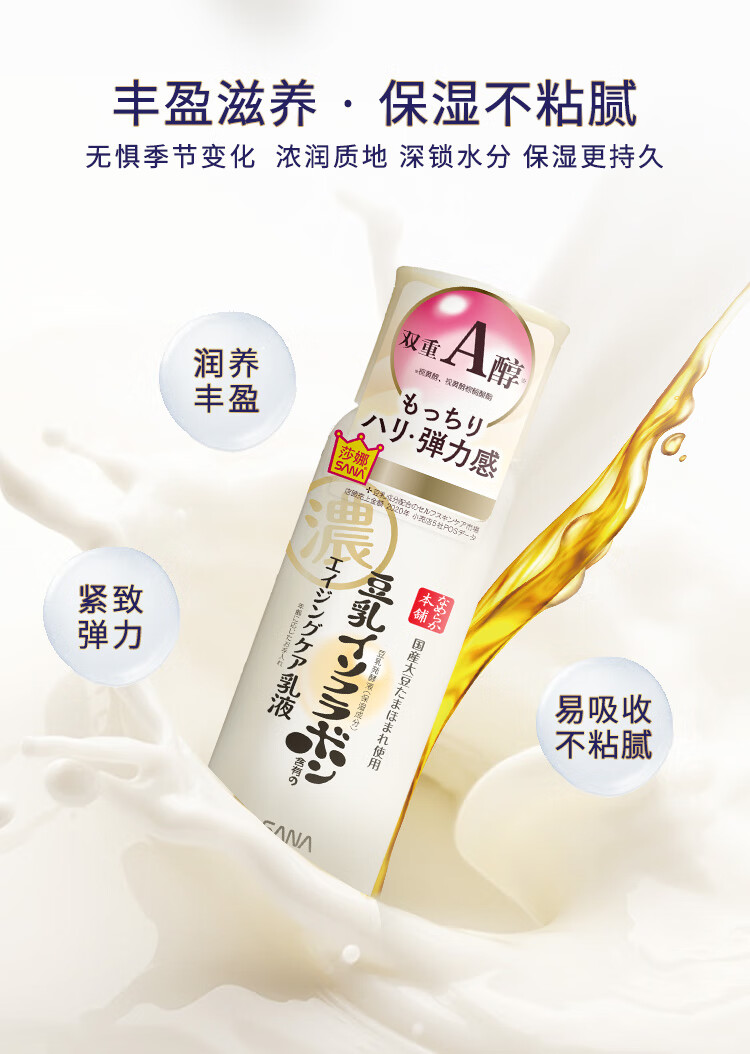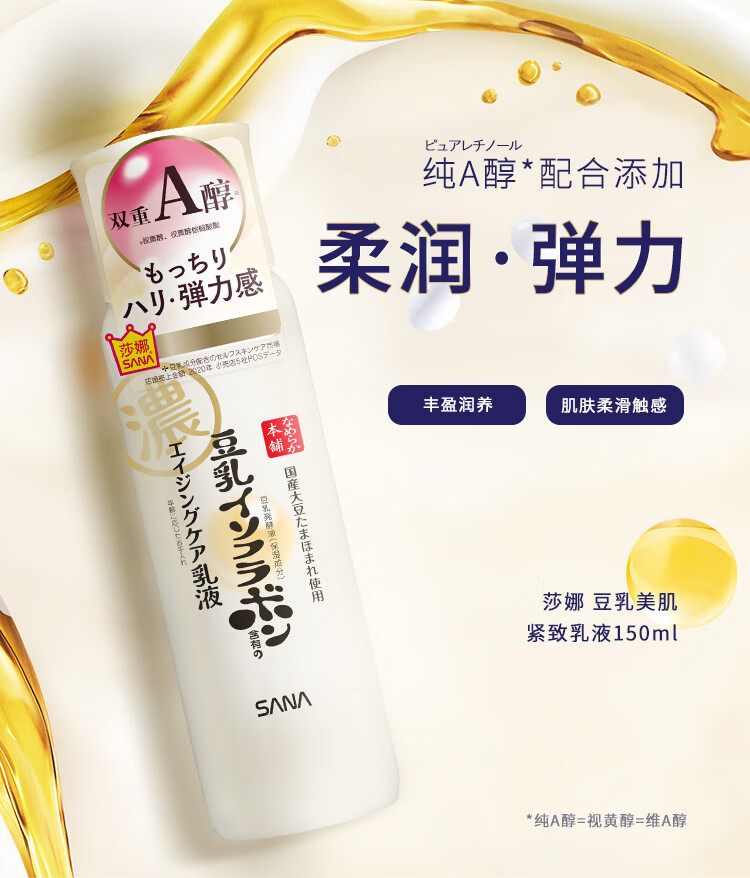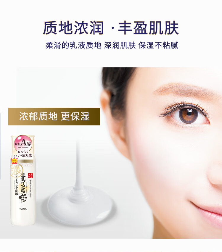 莎娜(SANA)日本豆乳美肌紧致乳液维a视黄醇精华淡化细纹女高保湿护肤品150ml